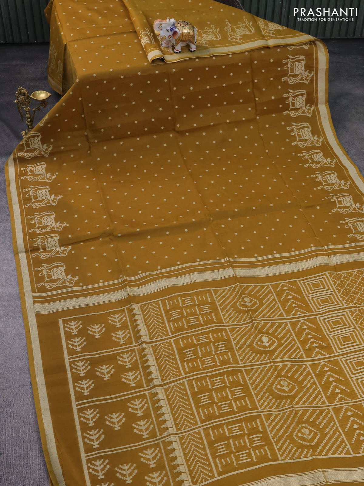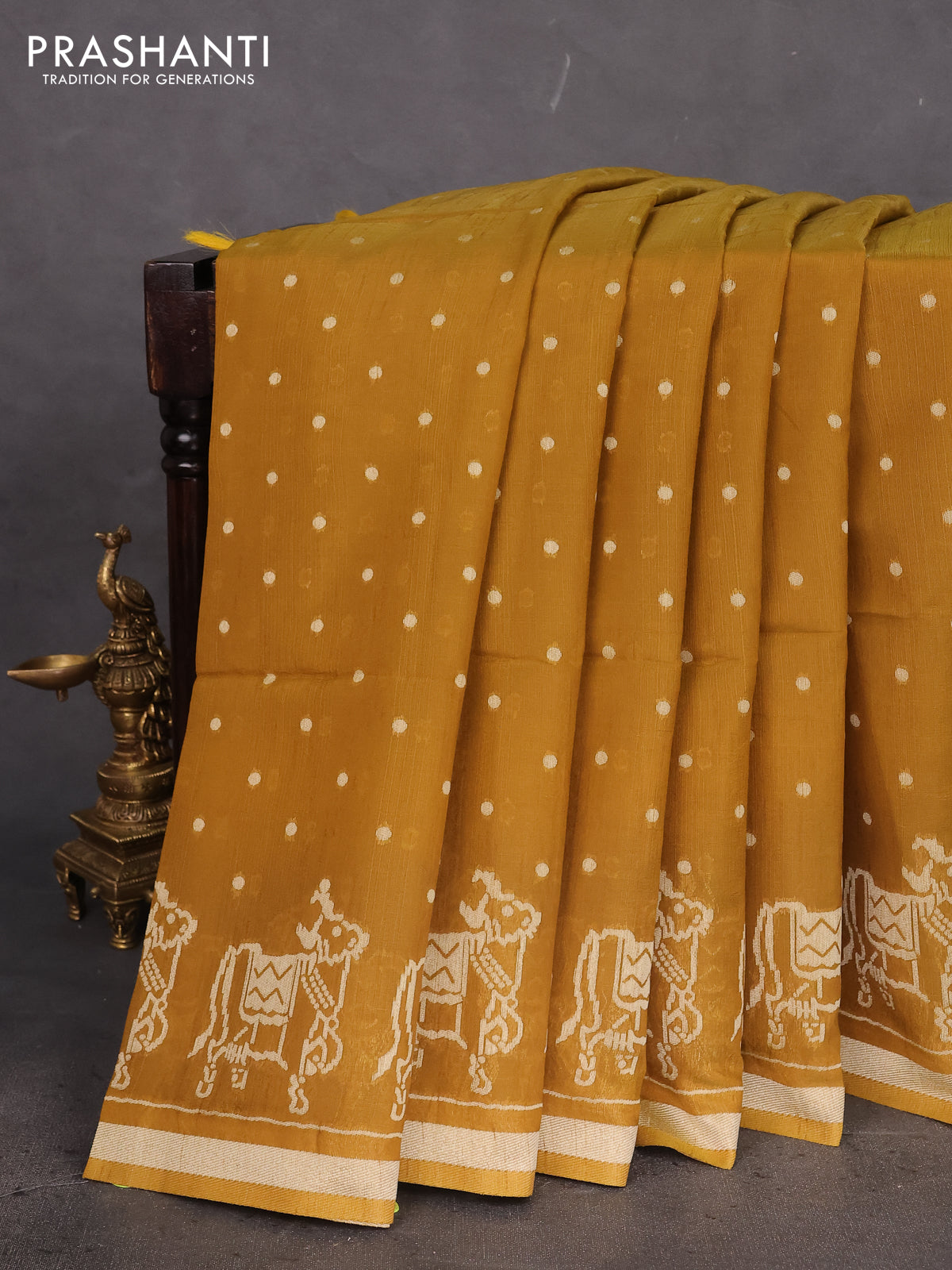 Semi tussar saree dark mustard with allover polka dot weaves and patola weaving pallu