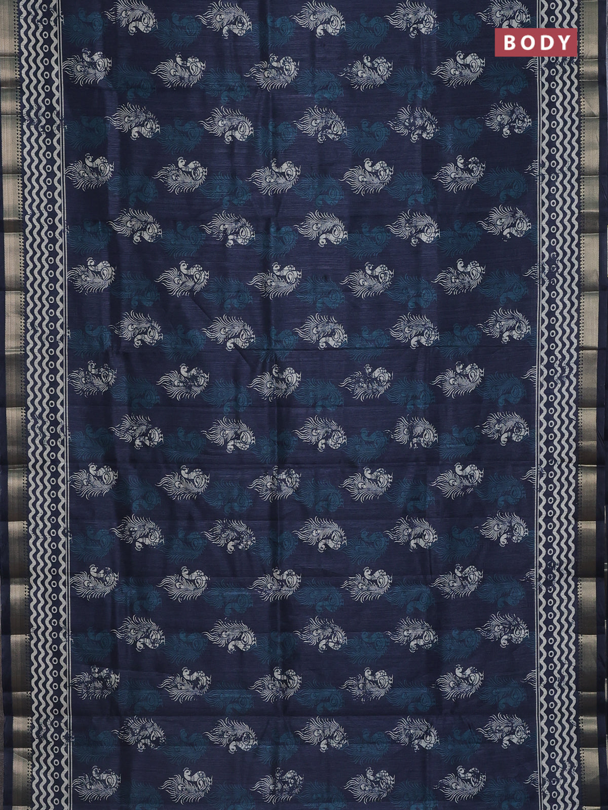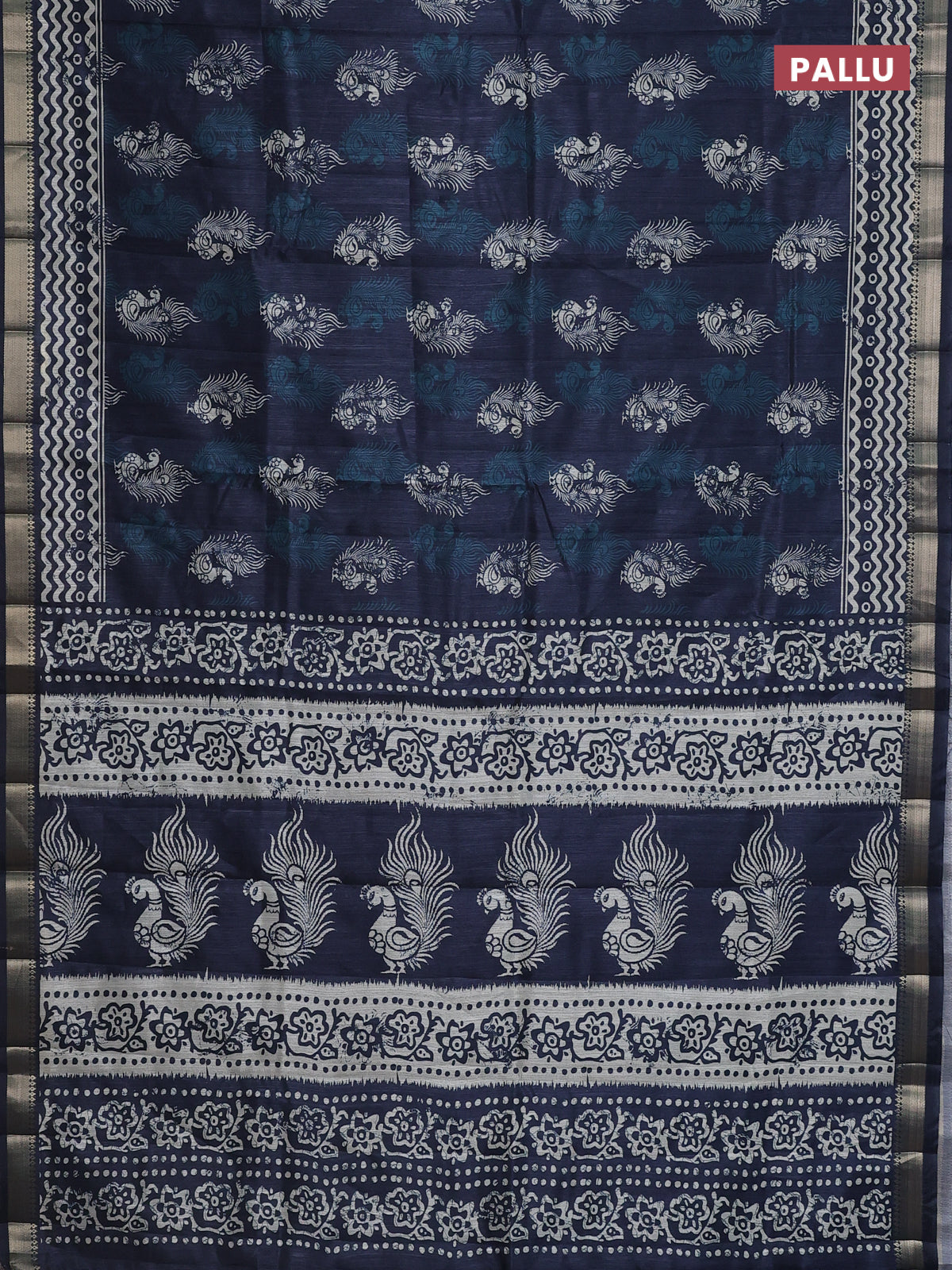 Semi tussar saree dark peacock blue with annam butta prints and zari woven border