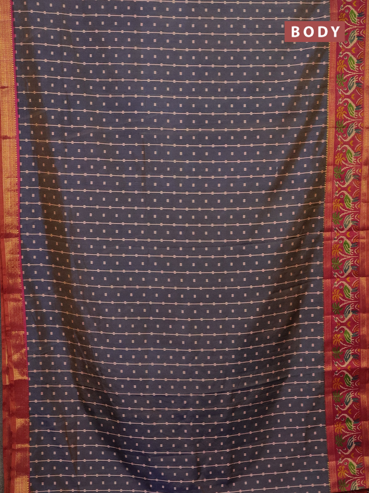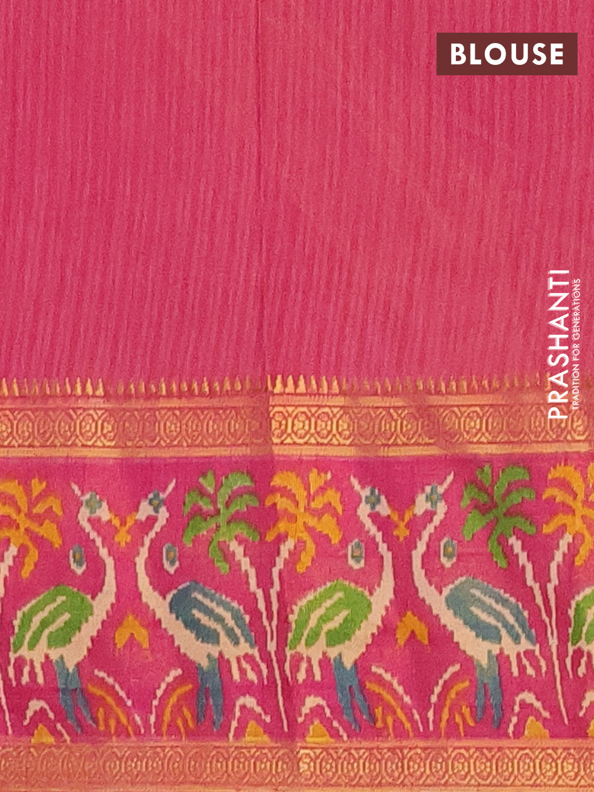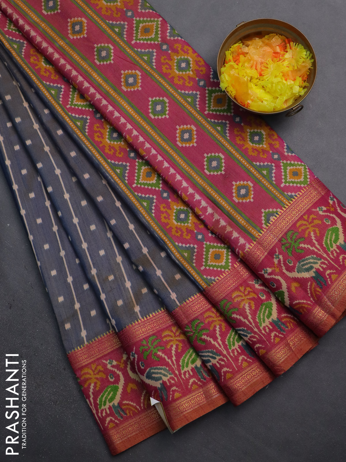 Semi tussar saree dual shade of bluish grey and pink with allover ikat prints and zari woven ikat border
