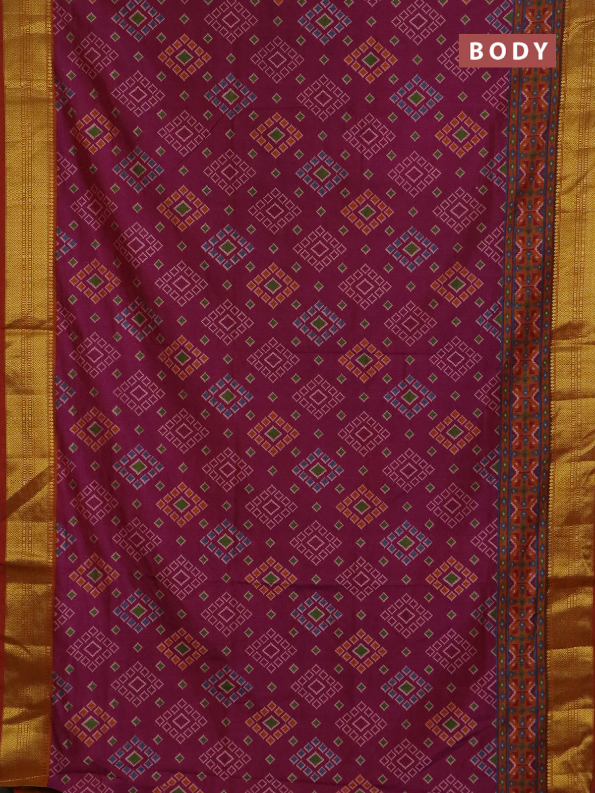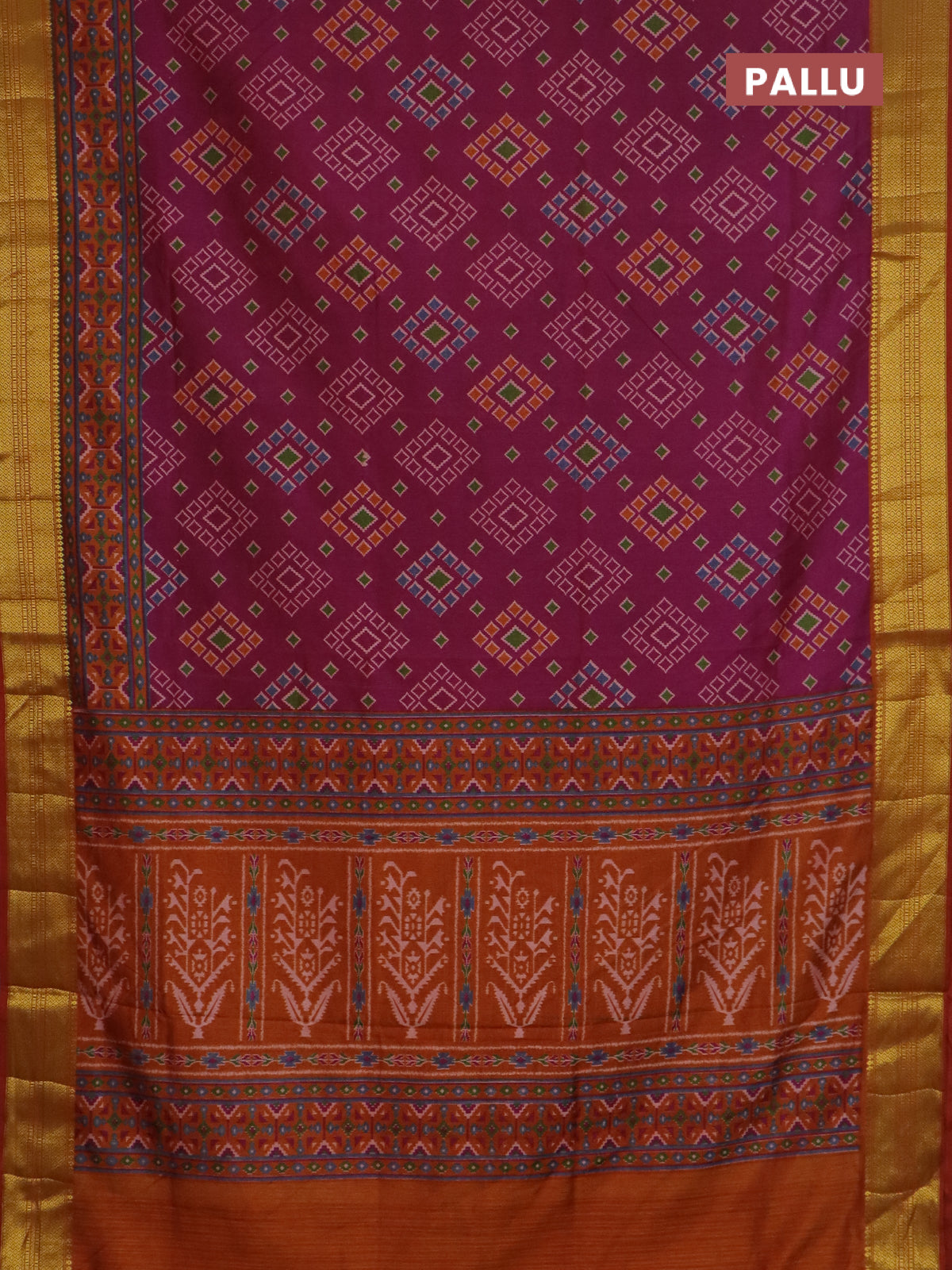 Semi tussar saree dual shade of purple and rust shade with allover ikat prints and zari woven border