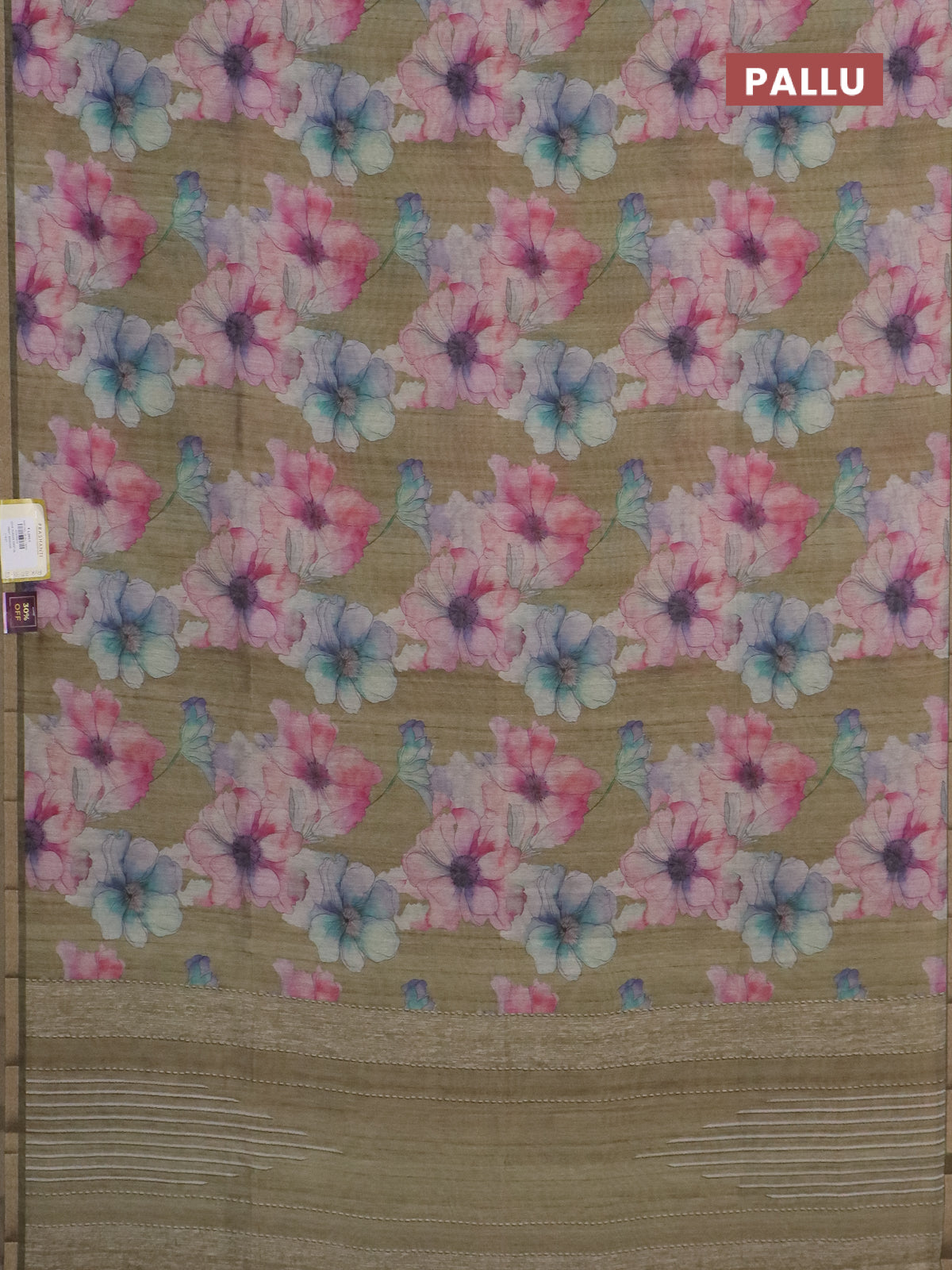 Semi tussar saree elaichi green and green with allover floral prints and small zari woven border