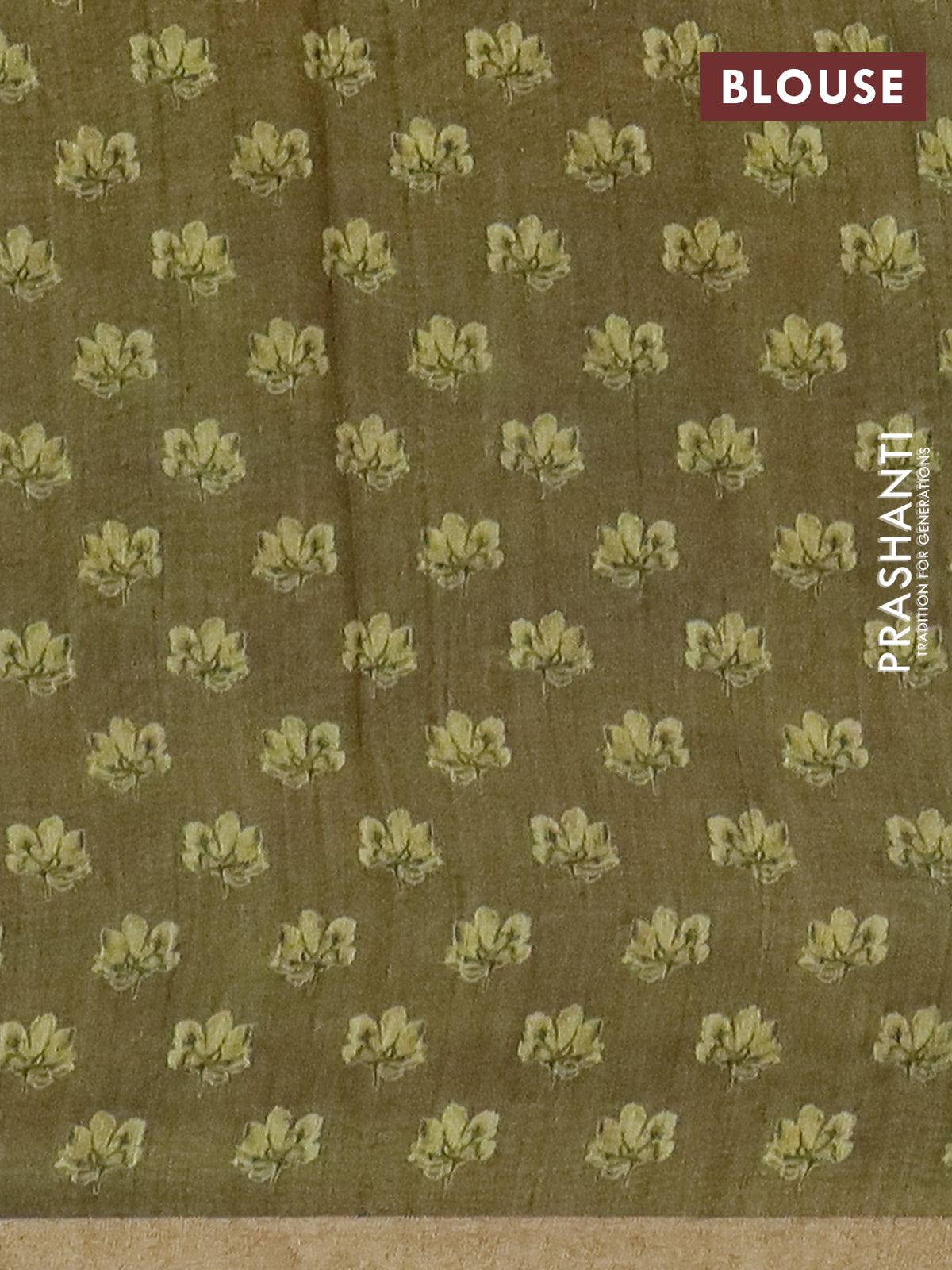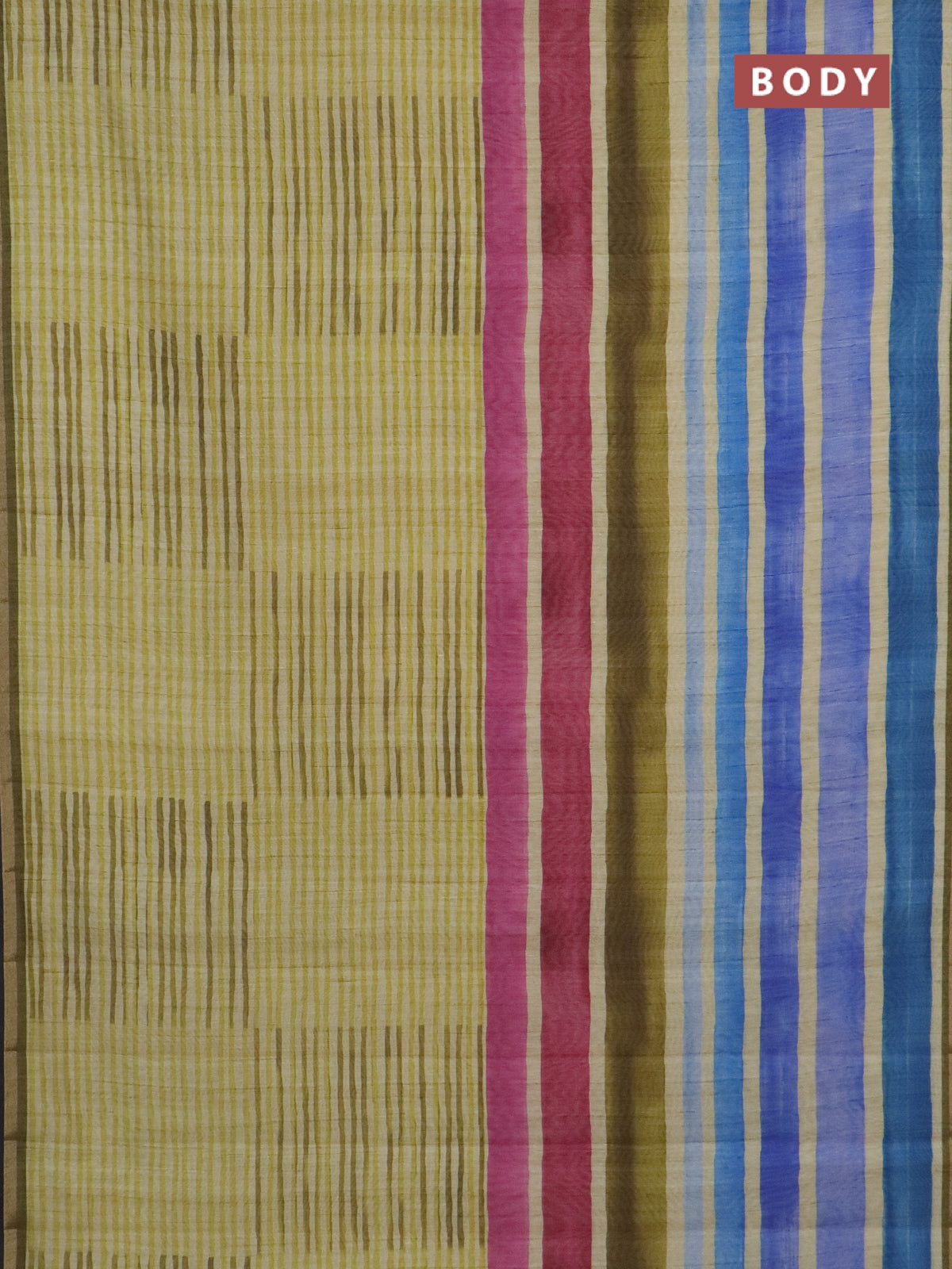Semi tussar saree elaichi green pastel lavender and mehendi green with allover prints and small zari woven border