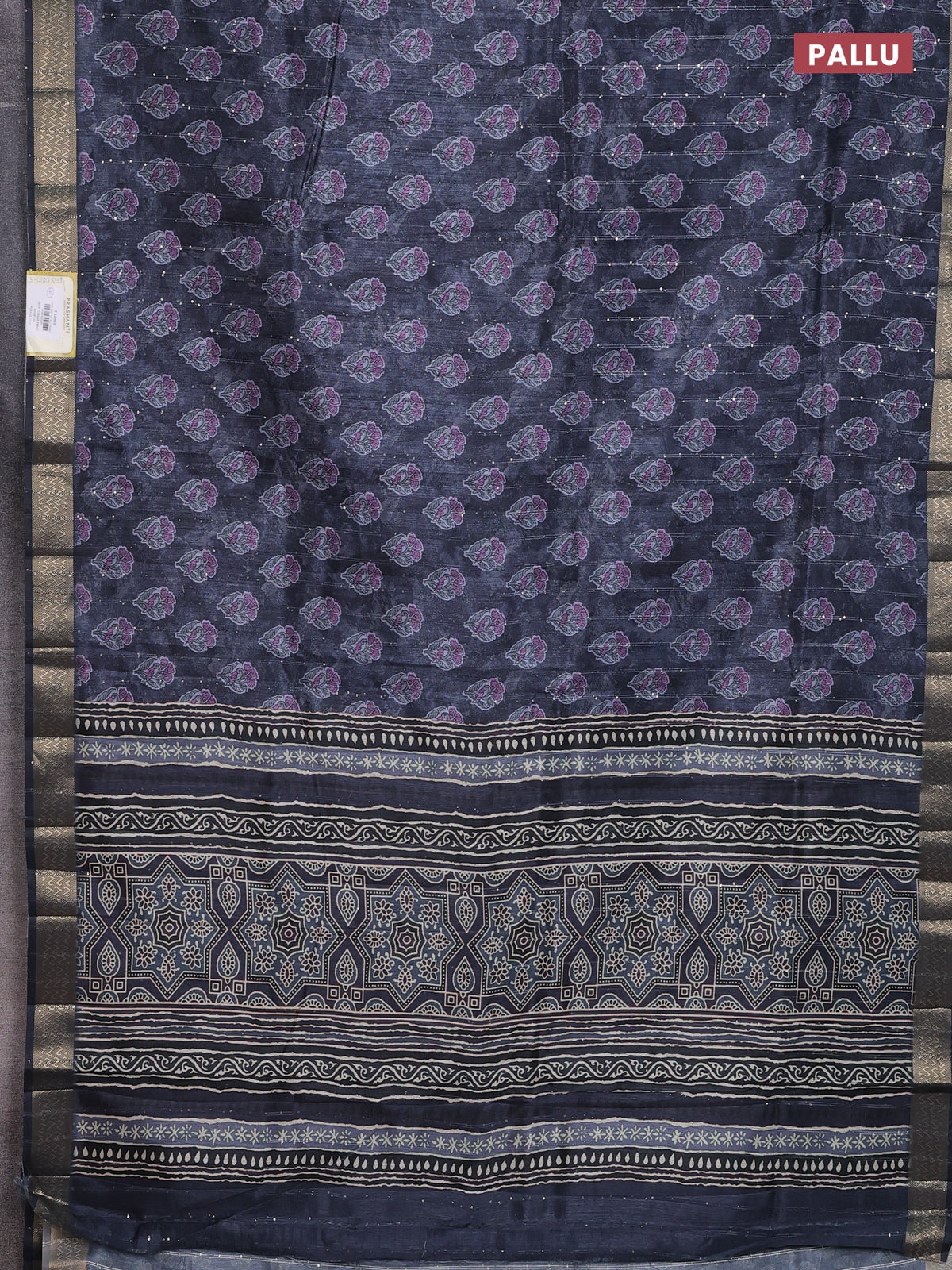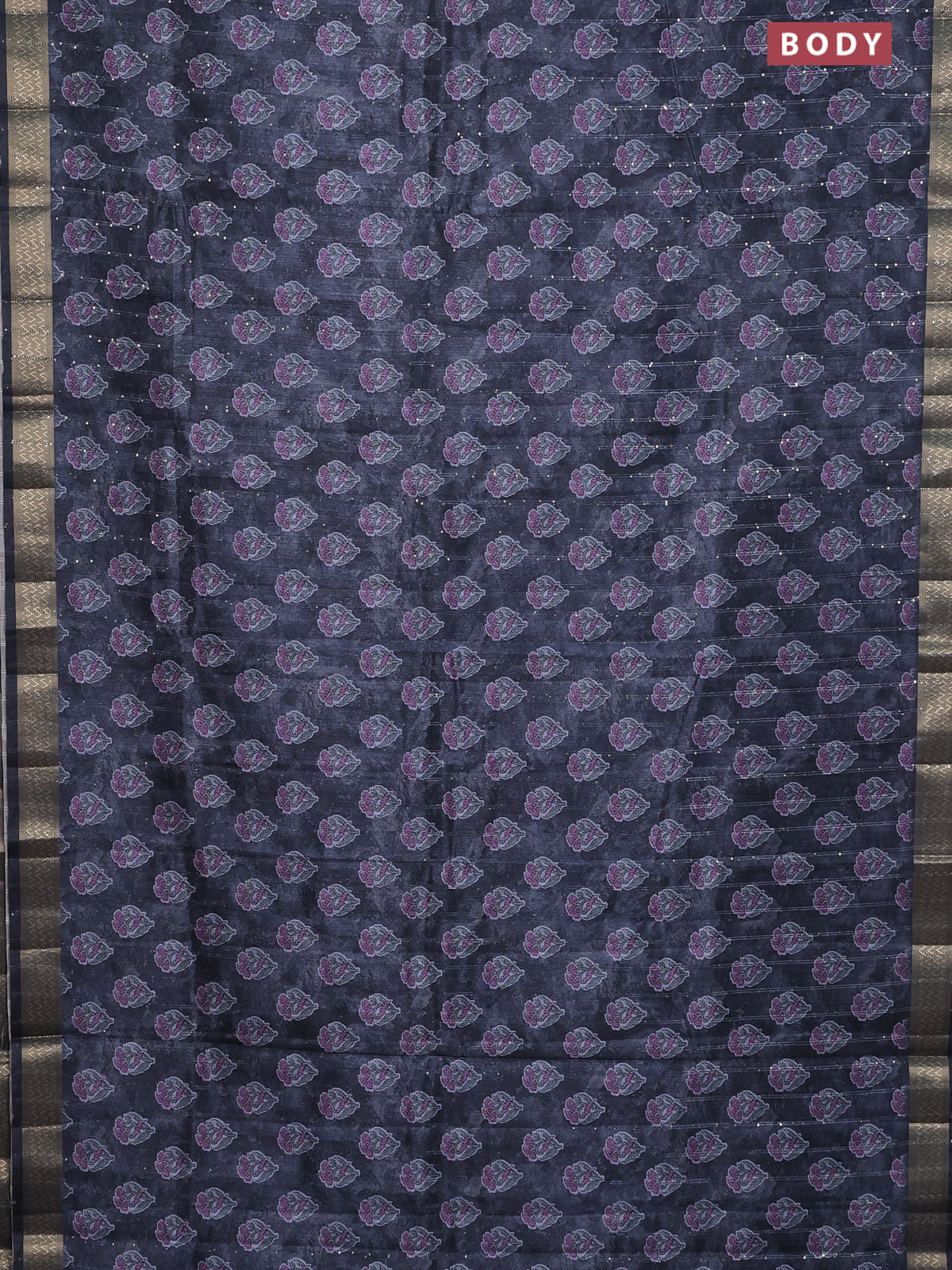 Semi tussar saree elephant grey with floral butta prints & sequin work and zari woven border