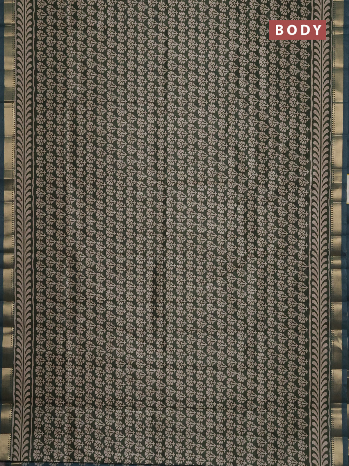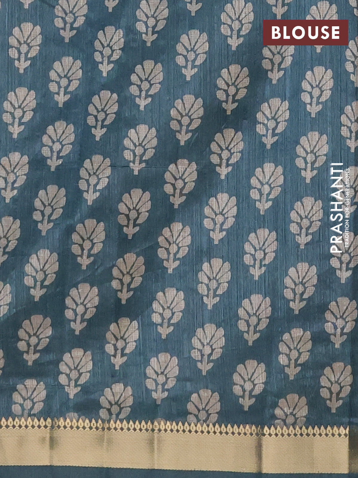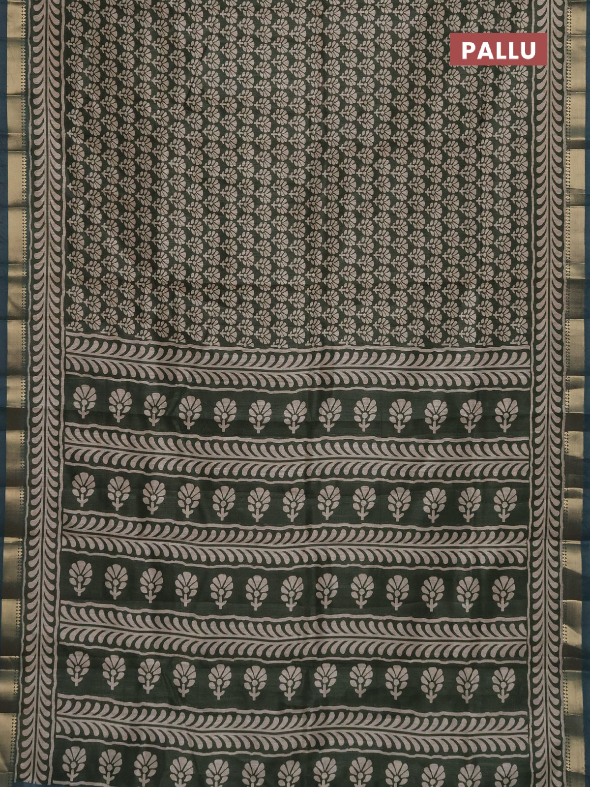 Semi tussar saree green and blue shade with floral butta prints and zari woven border