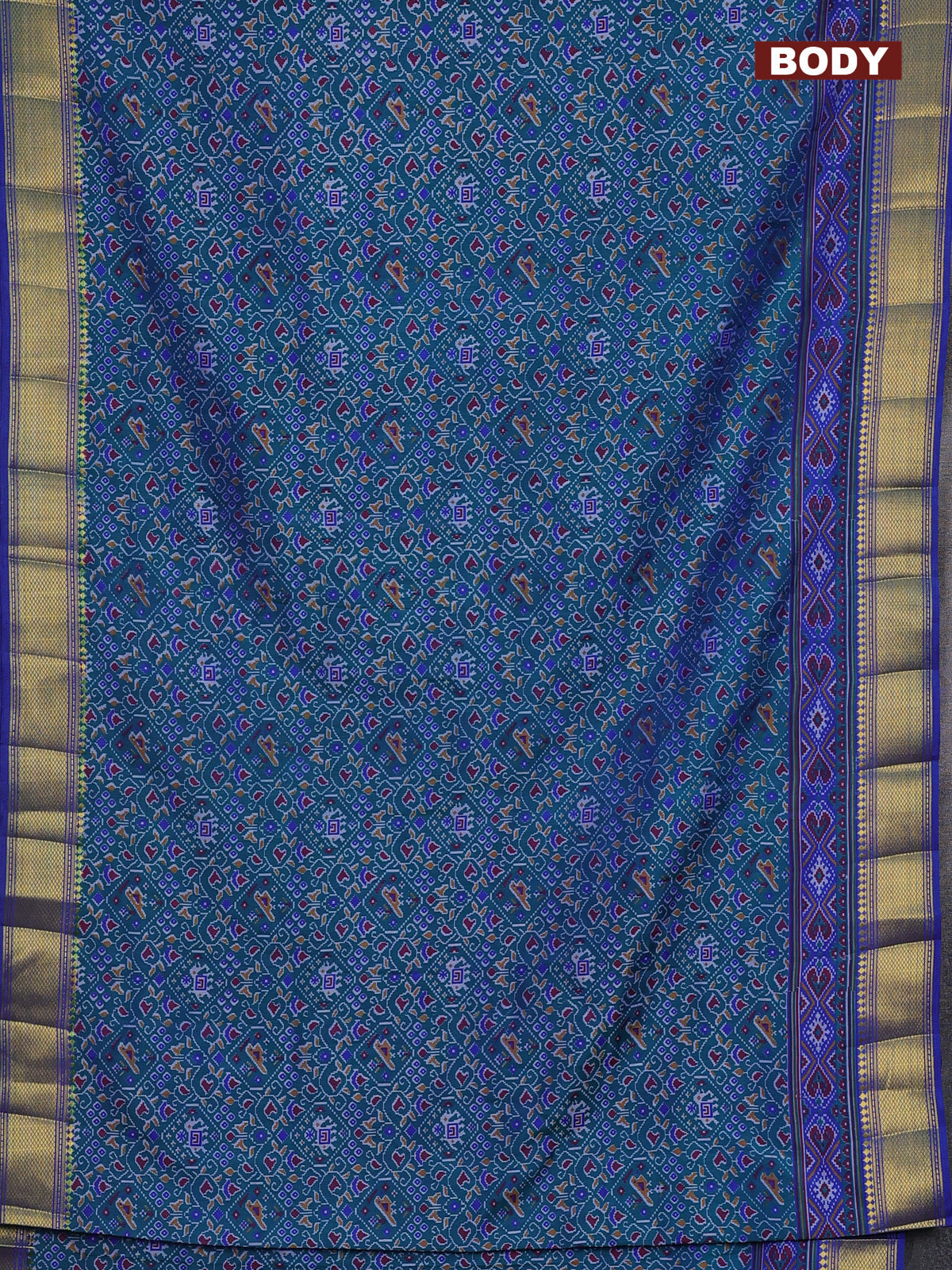 Semi tussar saree green and blue with allover ikat prints and zari woven border