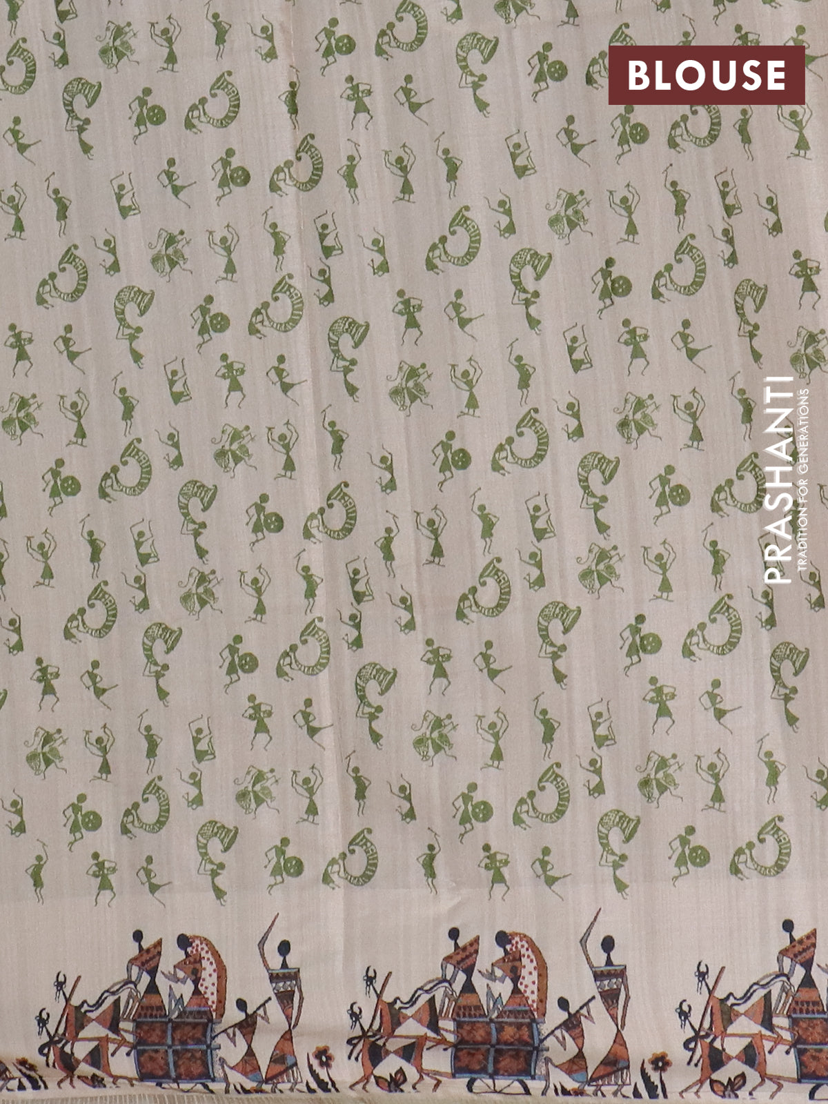 Semi tussar saree green and cream with allover kalamkari prints and zari woven border