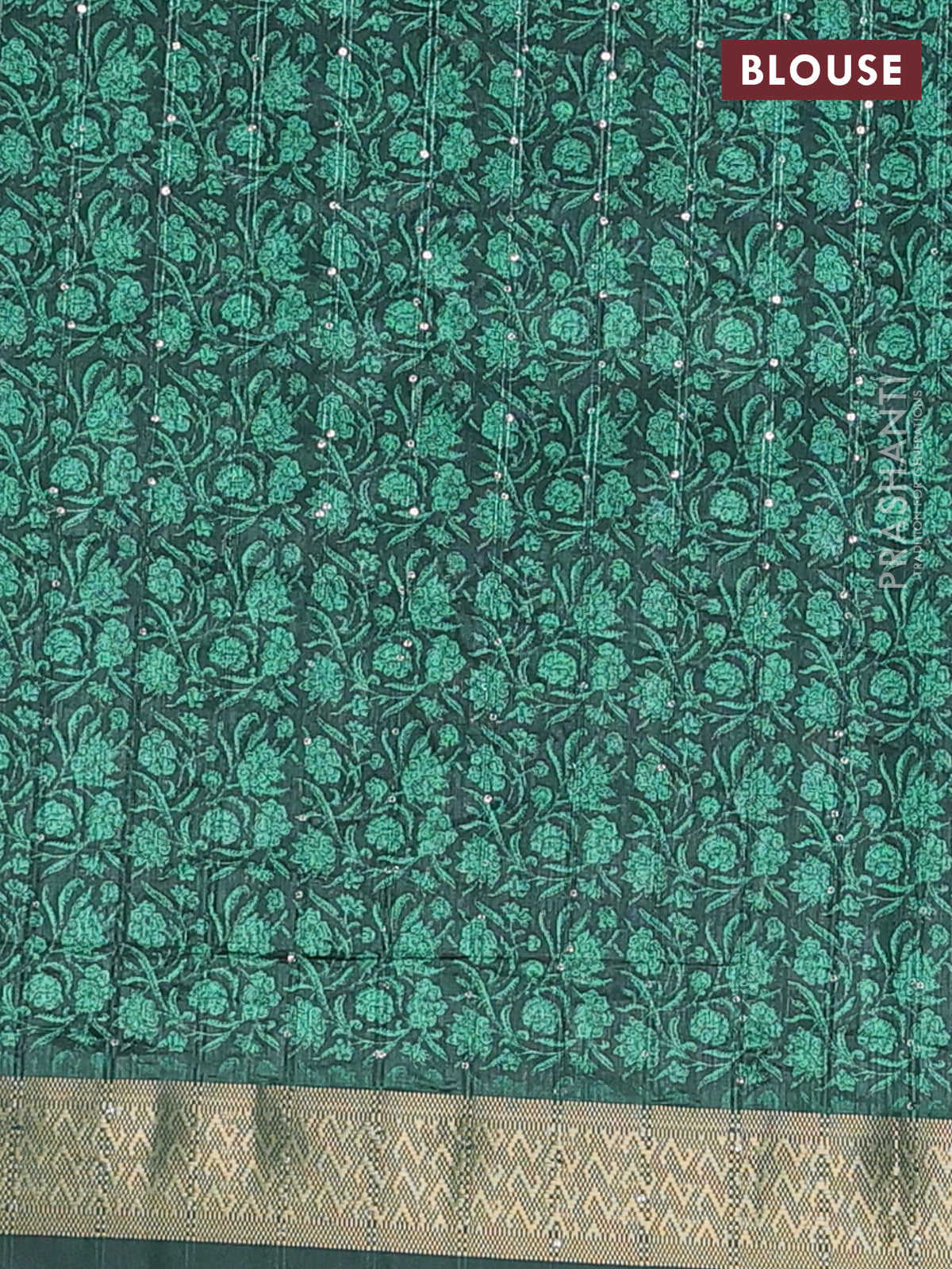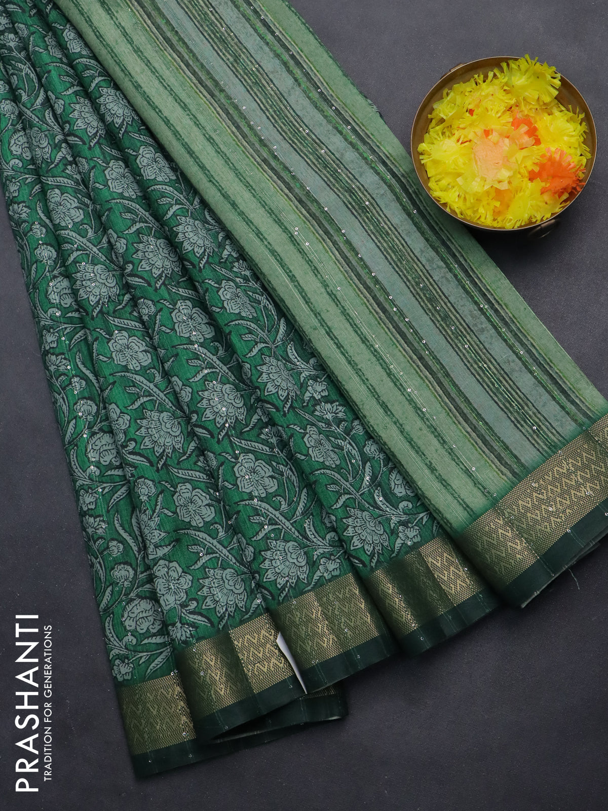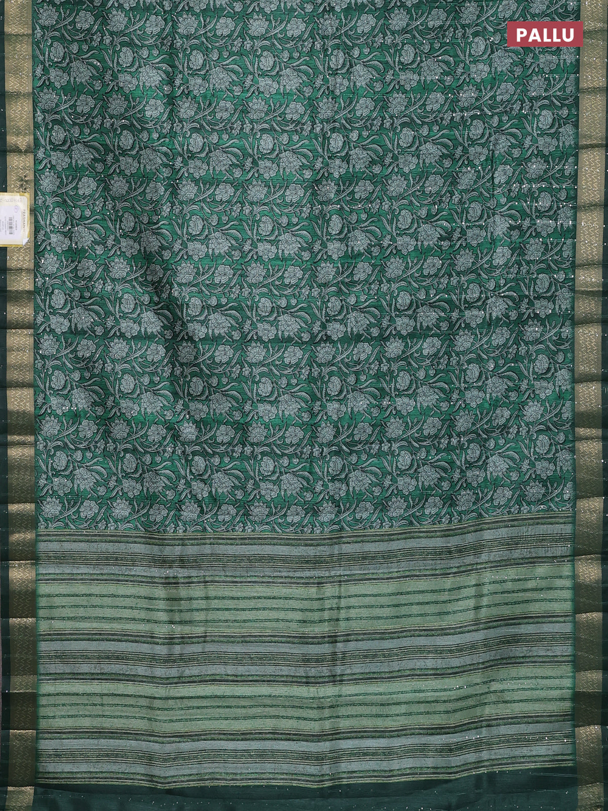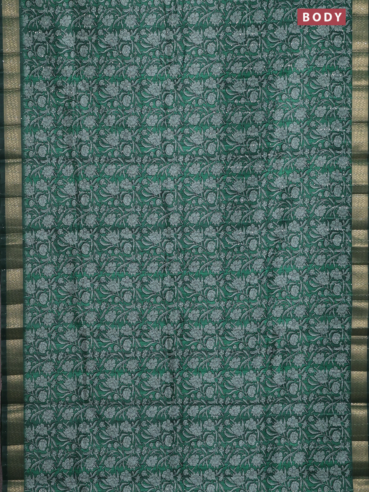 Semi tussar saree green with allover kalamkari prints & sequin work and zari woven border