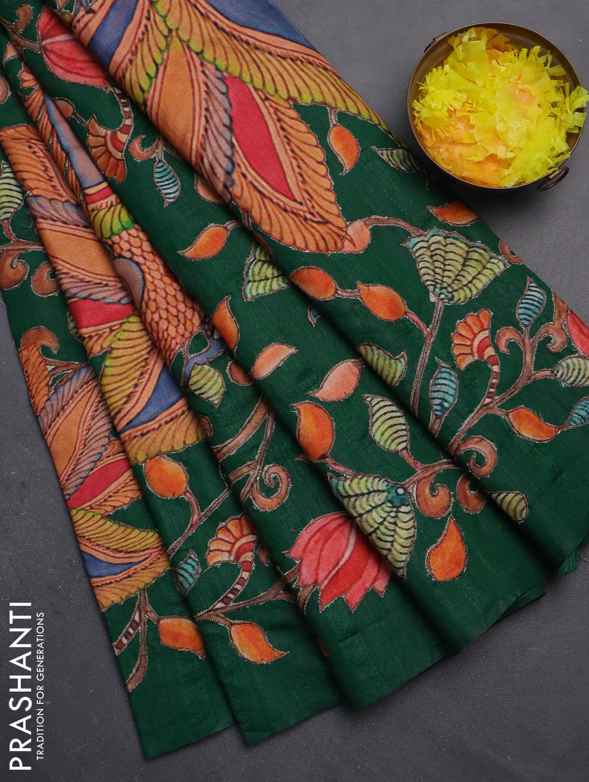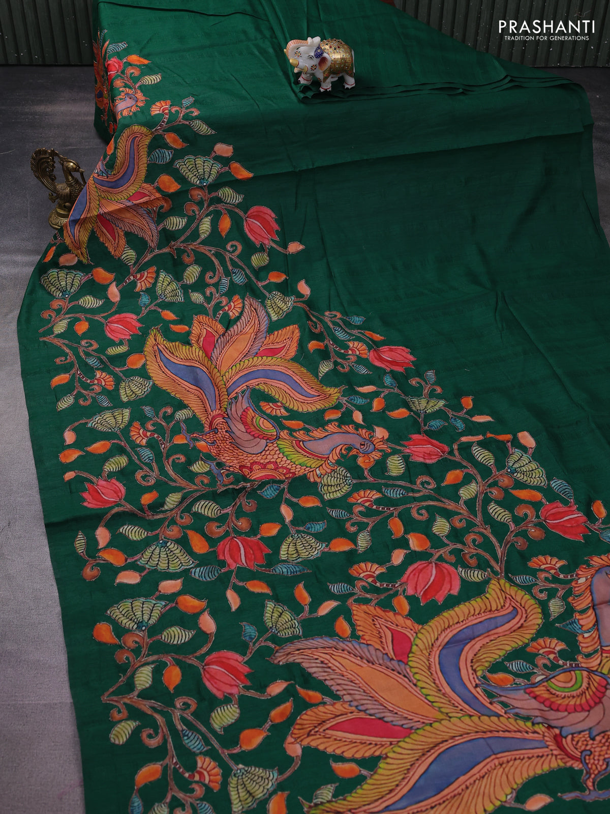Semi tussar saree green with kalamkari applique work