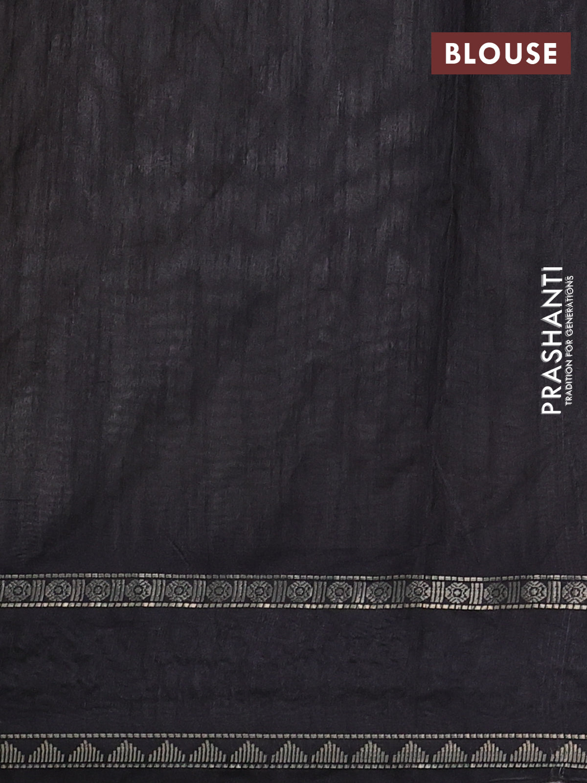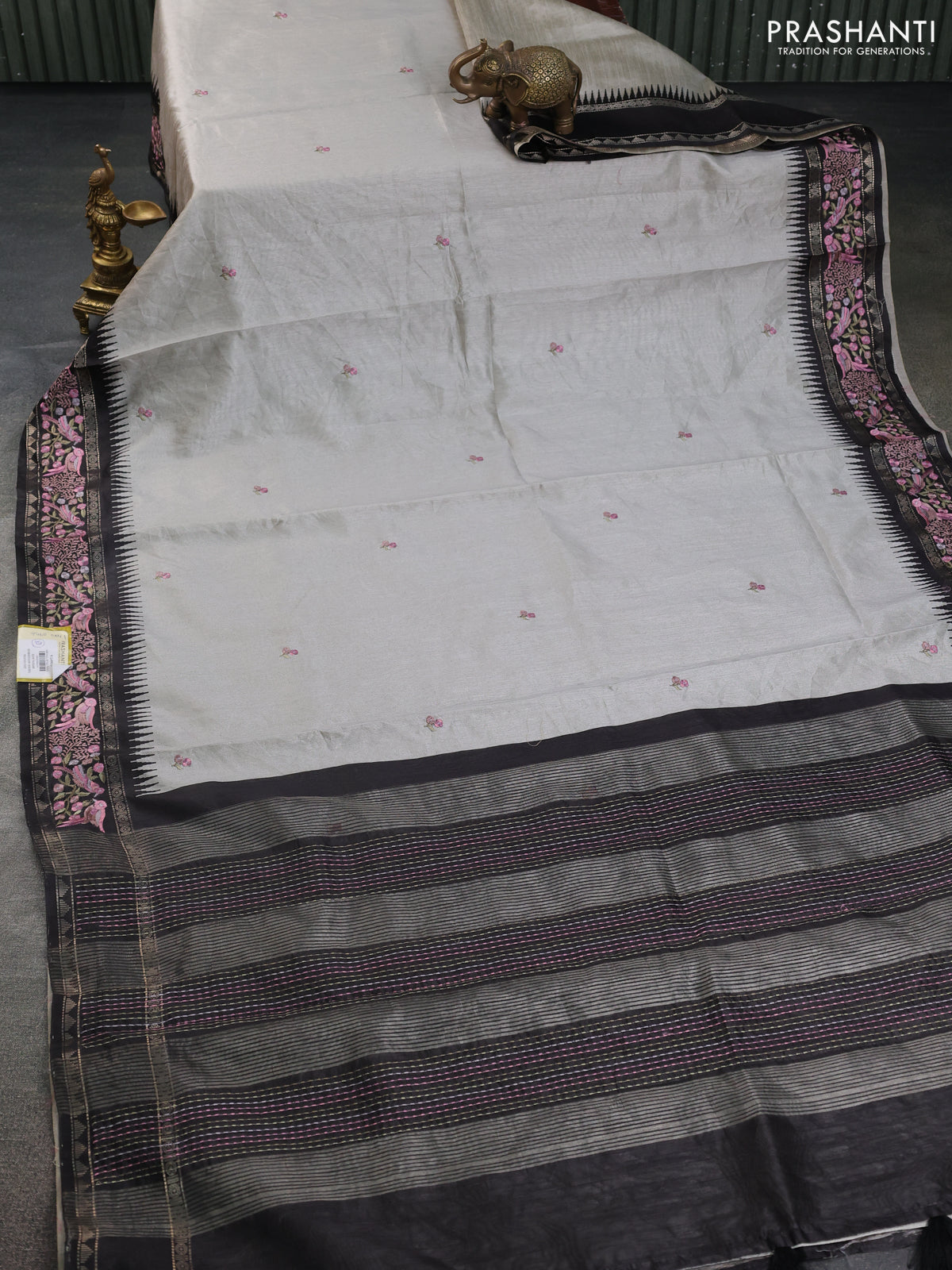 Semi tussar saree grey and black with embroidery work buttas and temple design embroidery border