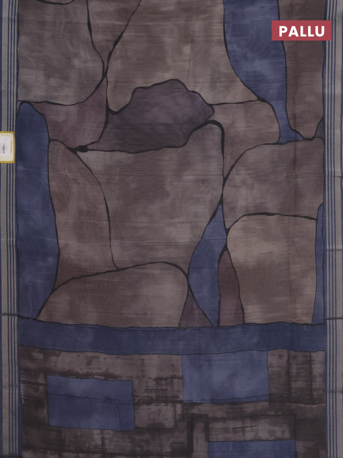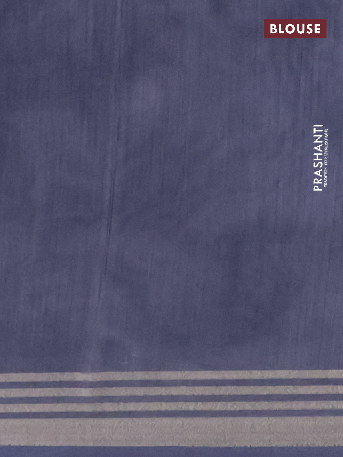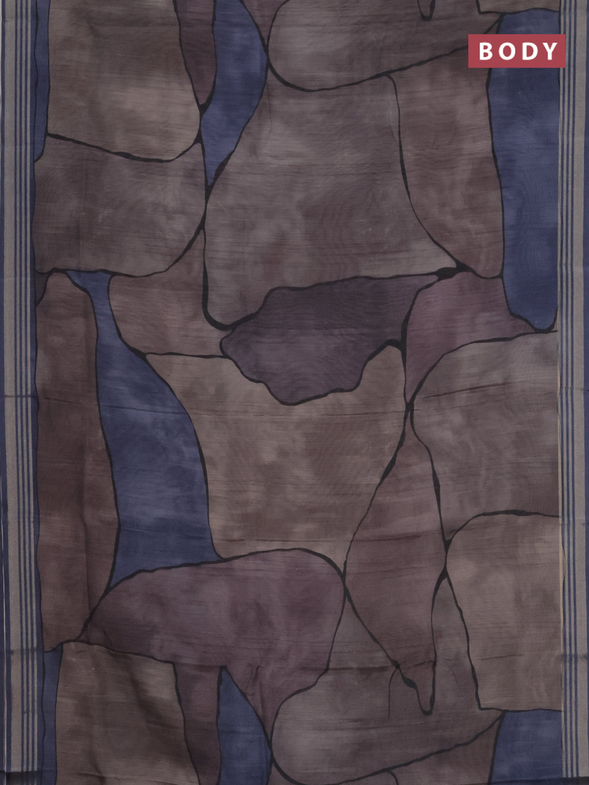 Semi tussar saree grey and blue shade with allover prints and zari woven border