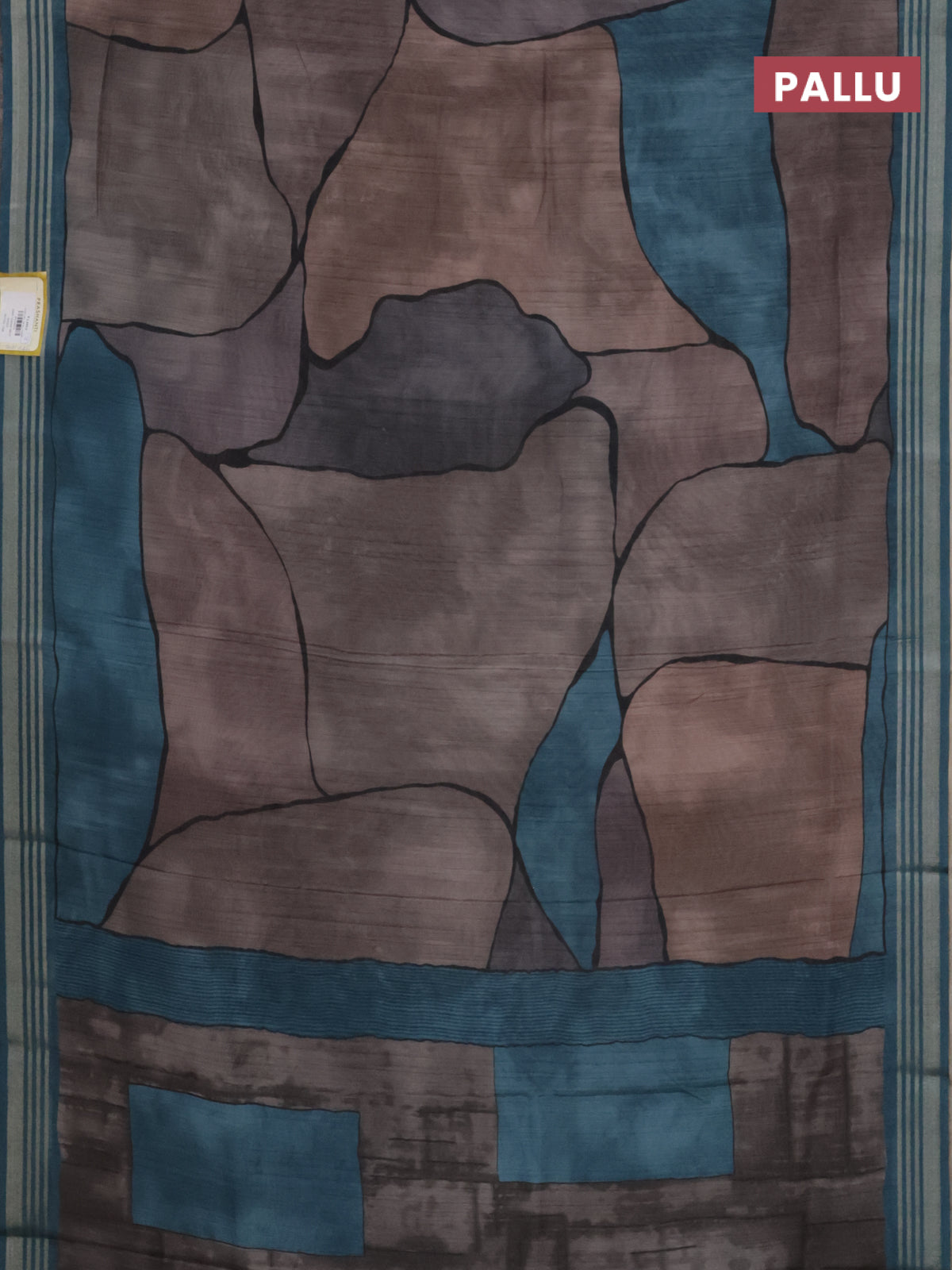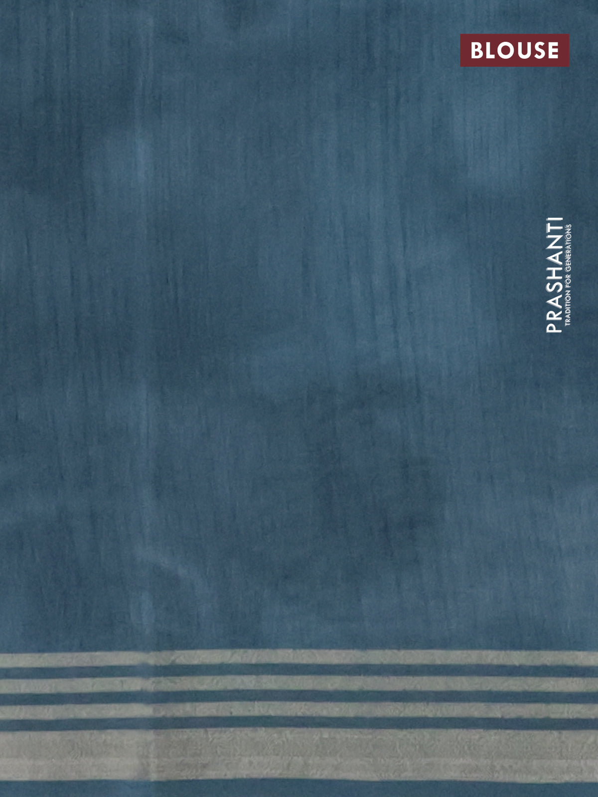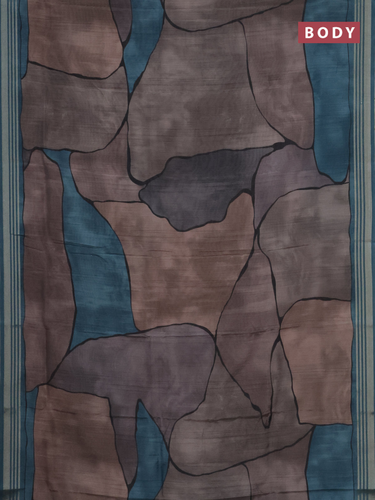 Semi tussar saree grey and teal blue with allover prints and zari woven border