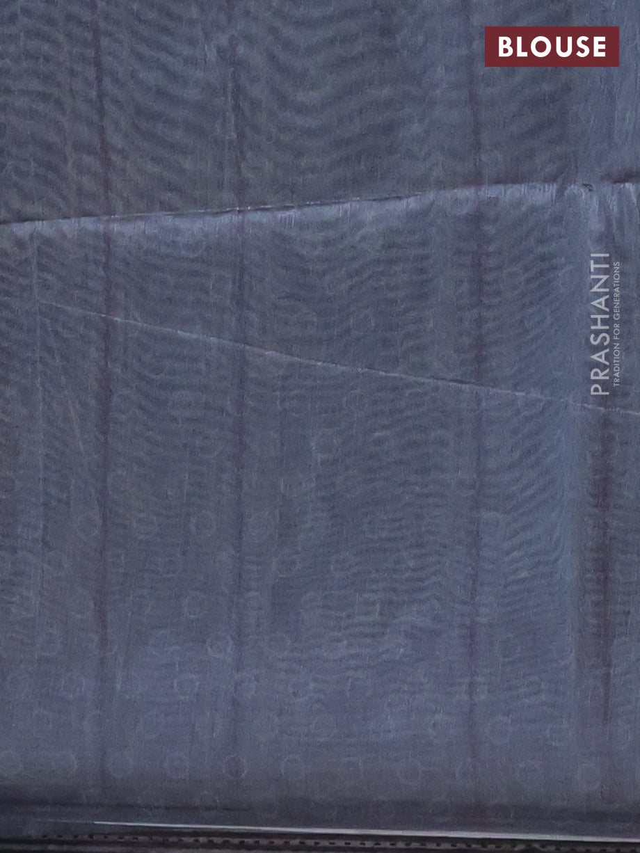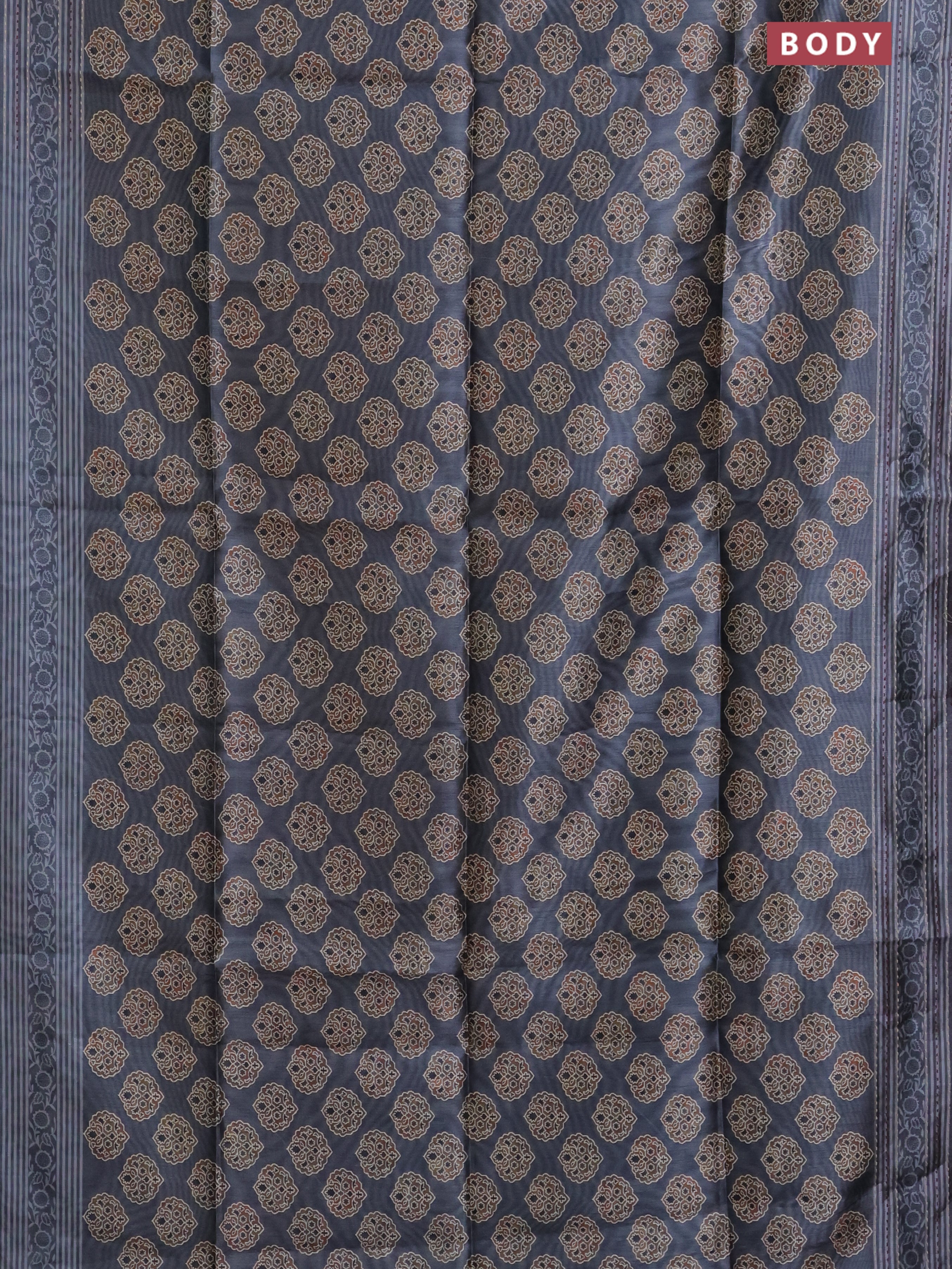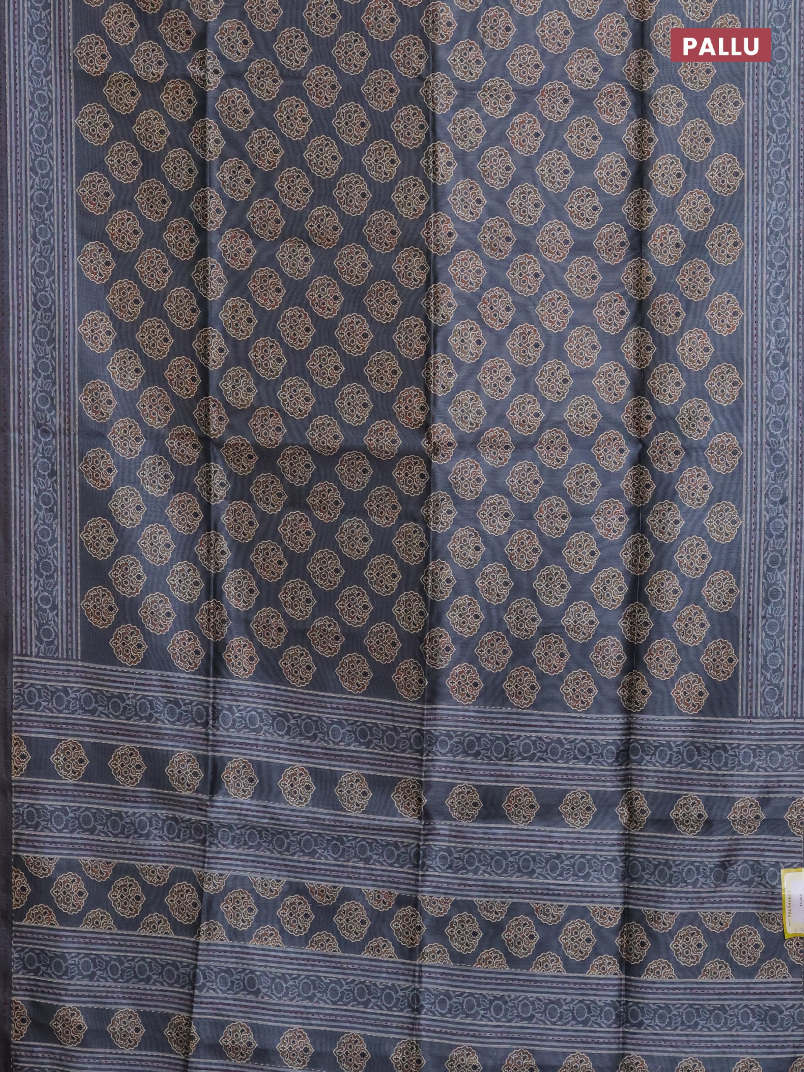 Semi tussar saree grey with allover ajrakh butta prints and katha stitch work pallu & border