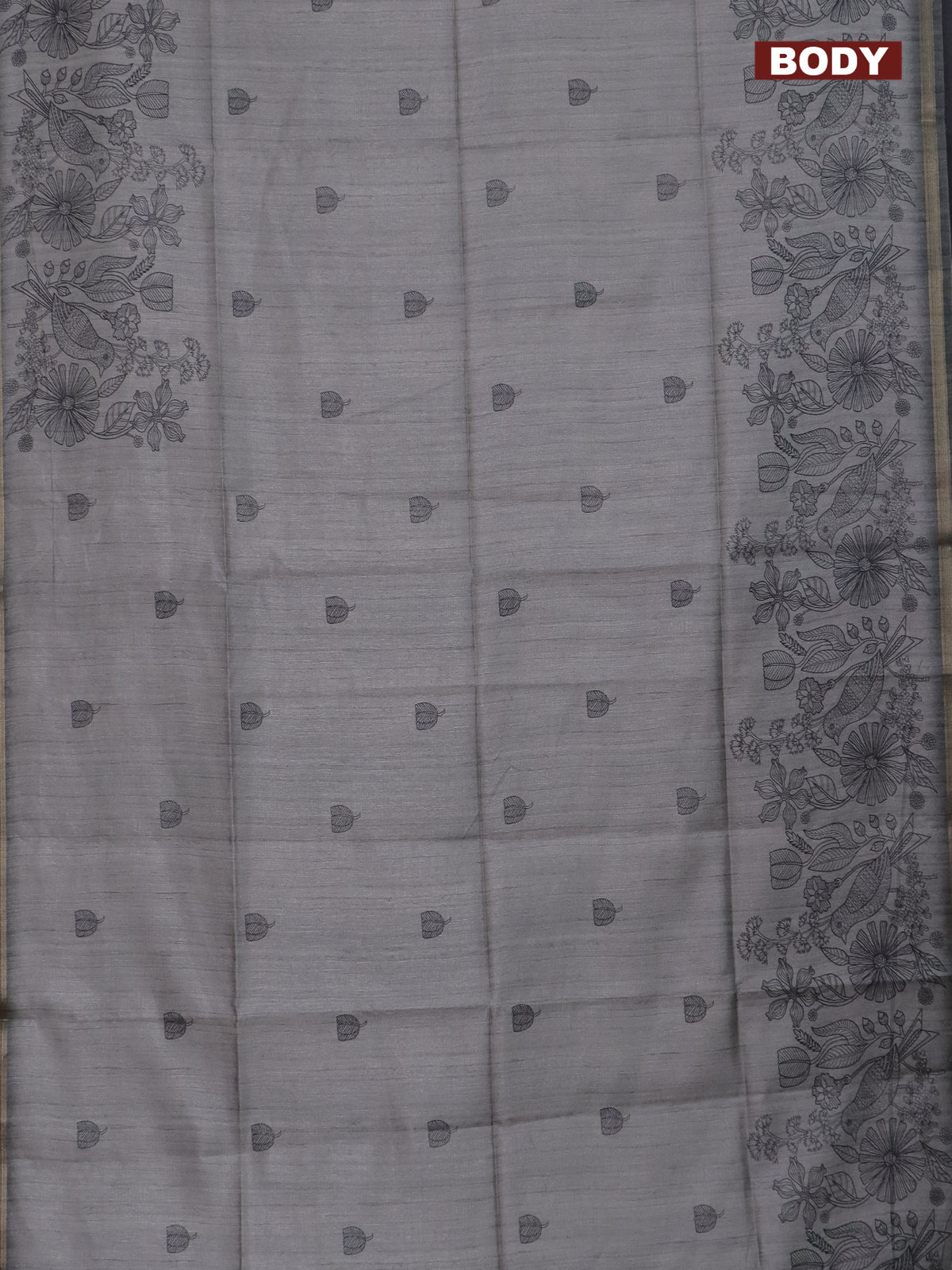 Semi tussar saree grey with allover butta prints and long printed border