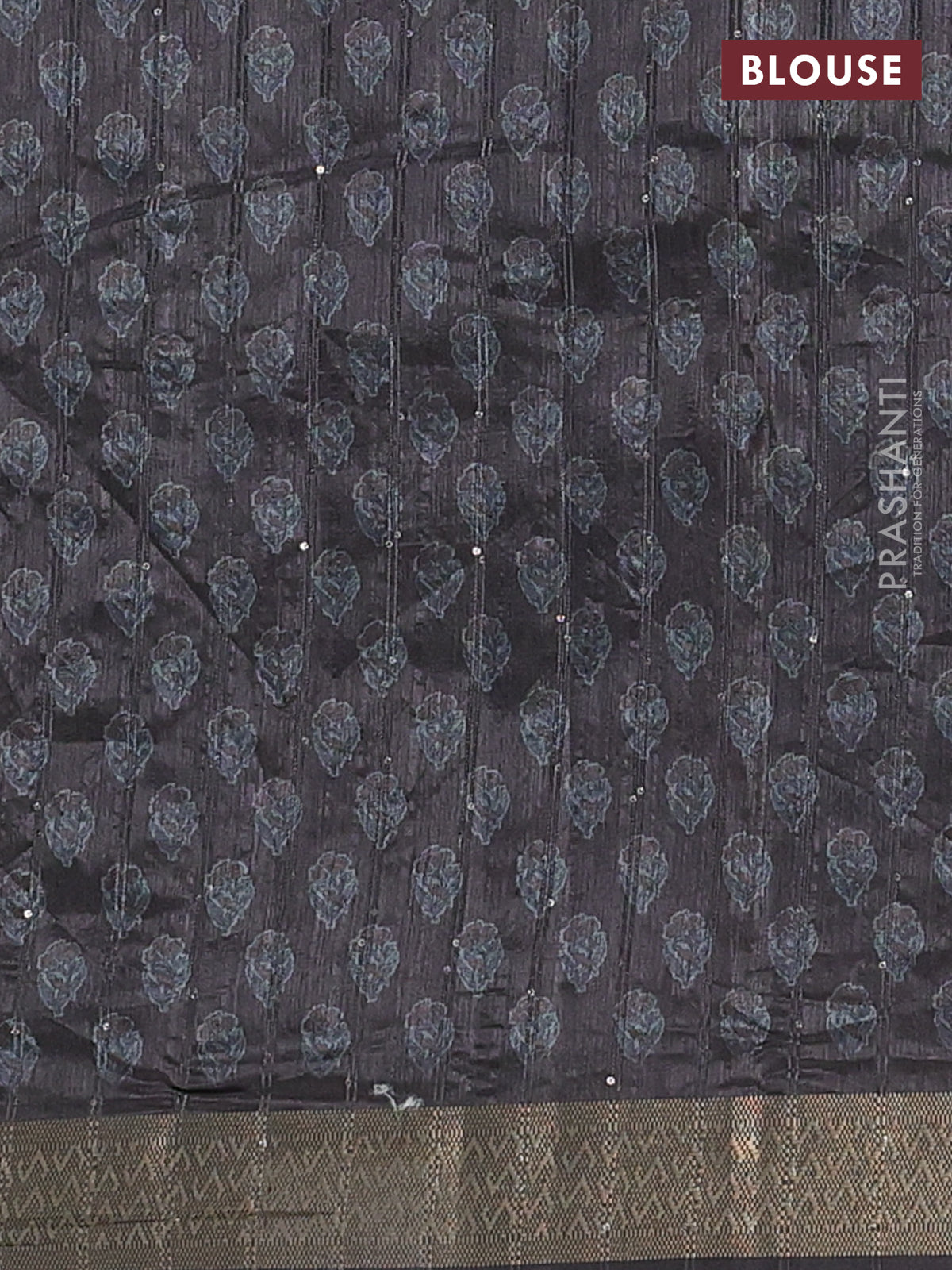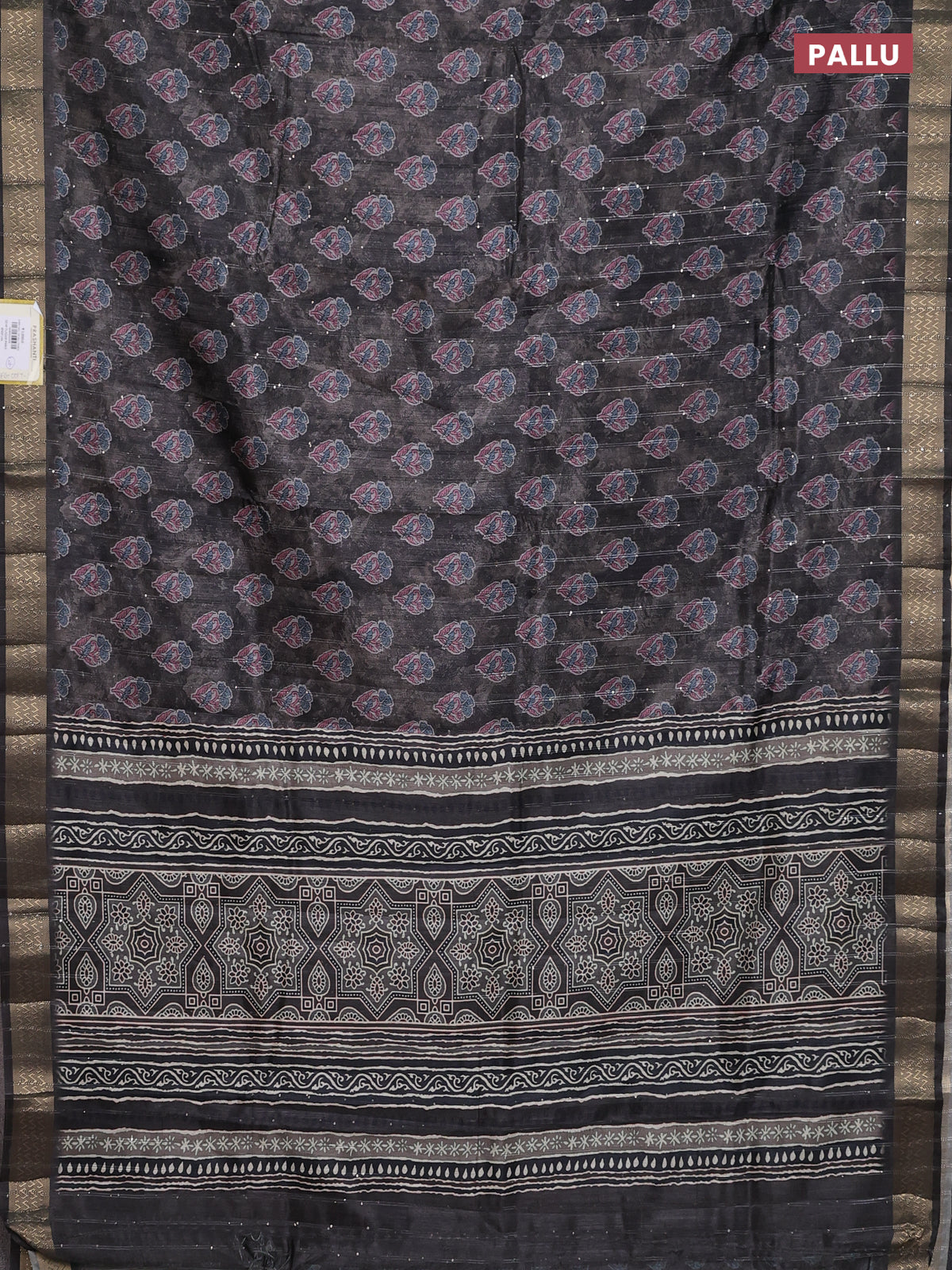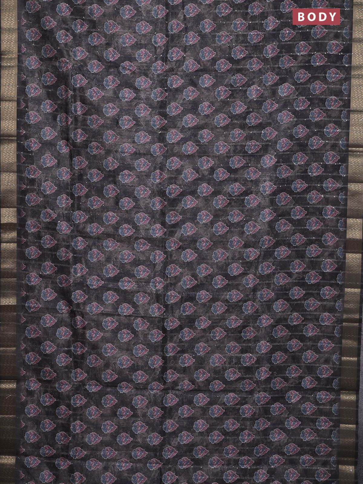 Semi tussar saree grey with floral butta prints & sequin work and zari woven border