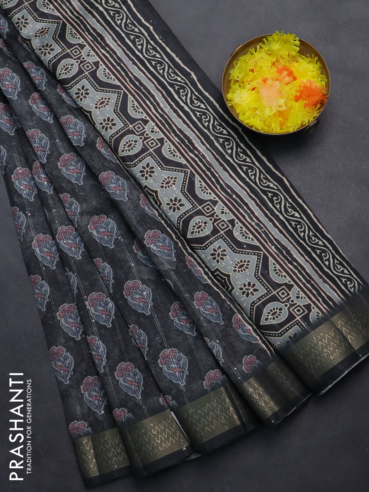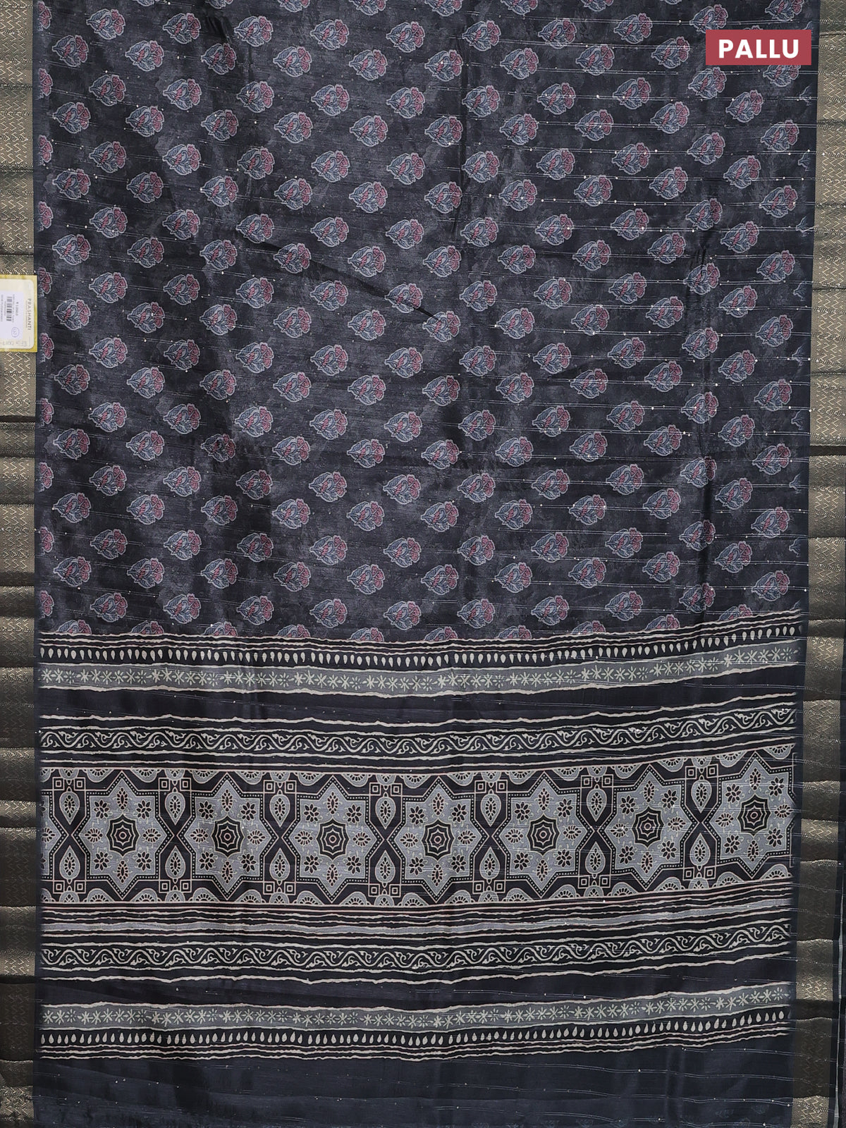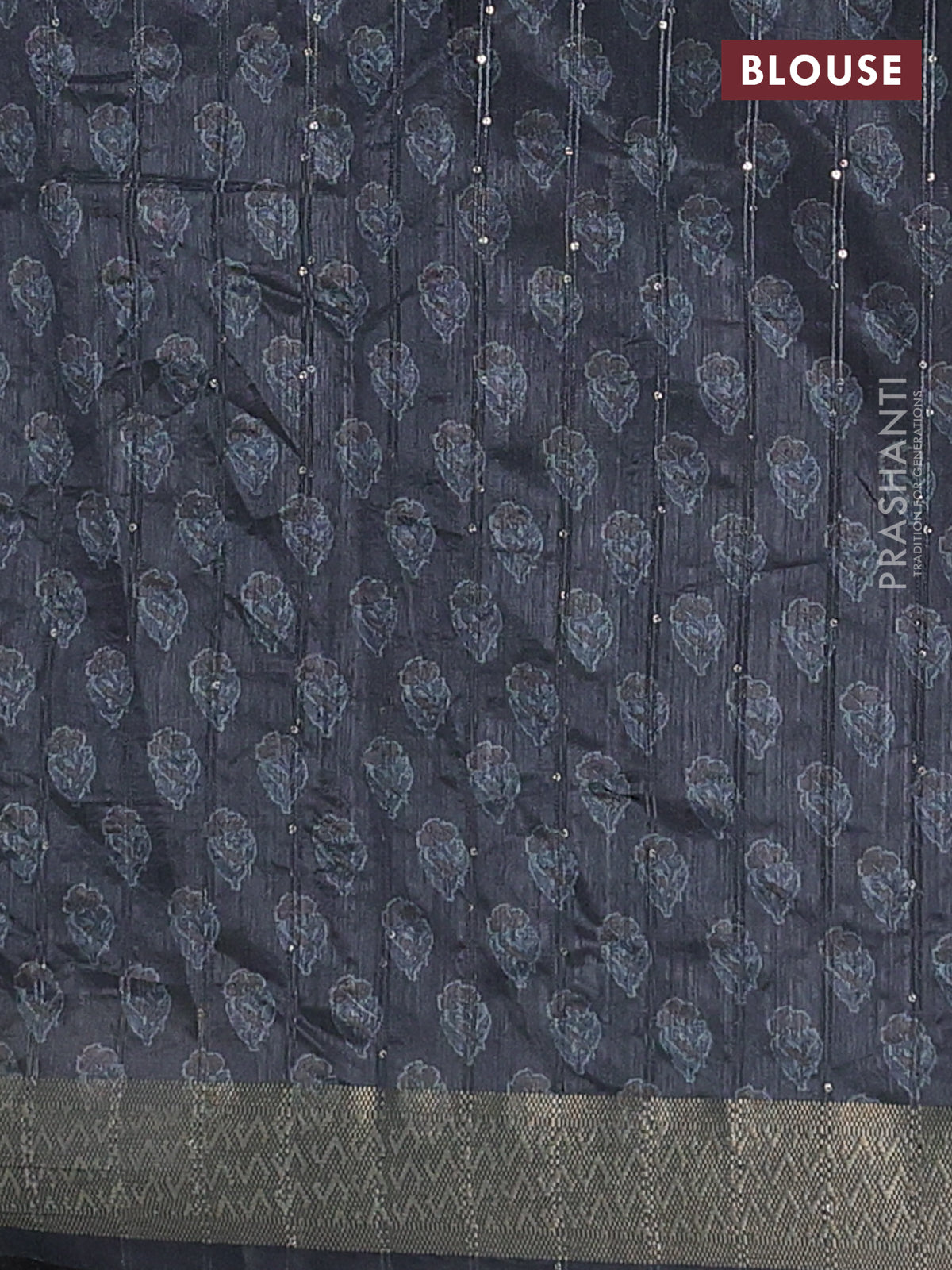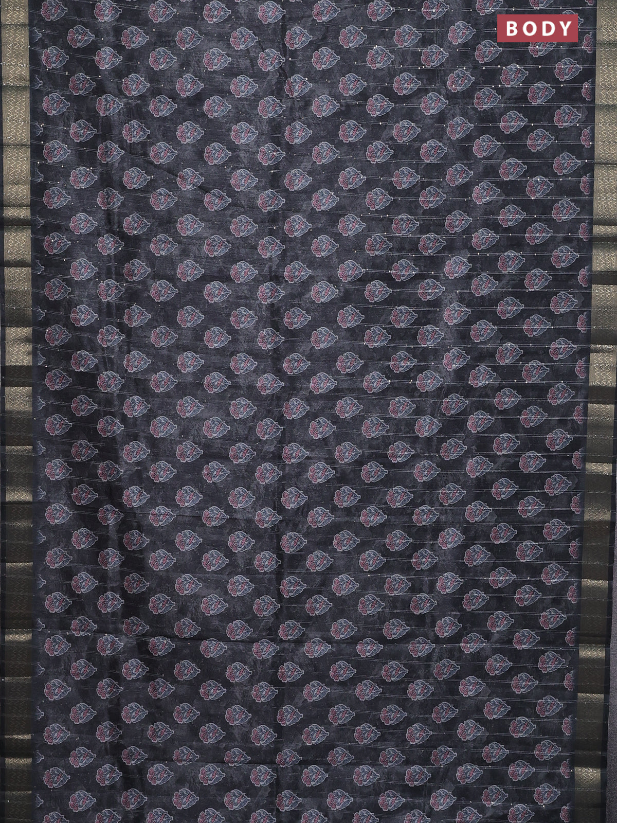 Semi tussar saree grey with floral butta prints & sequin work and zari woven border