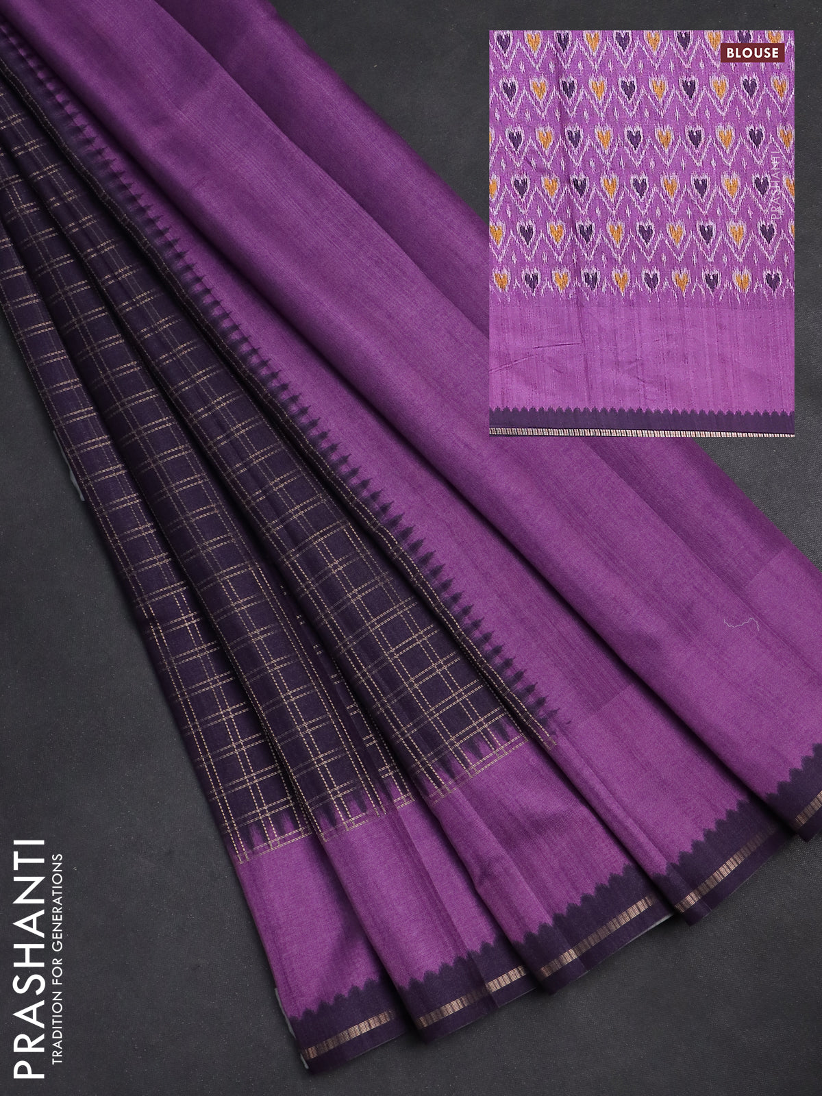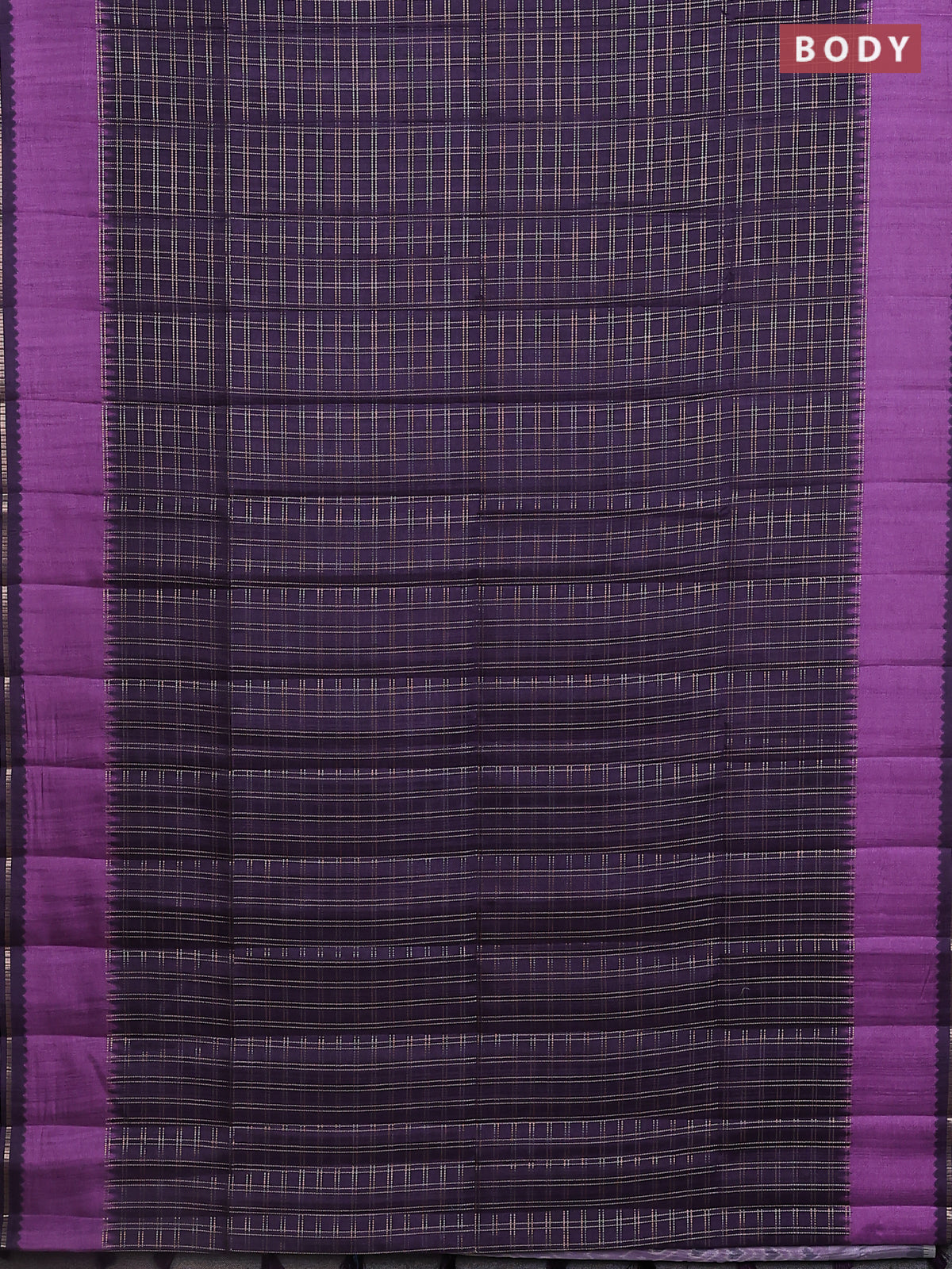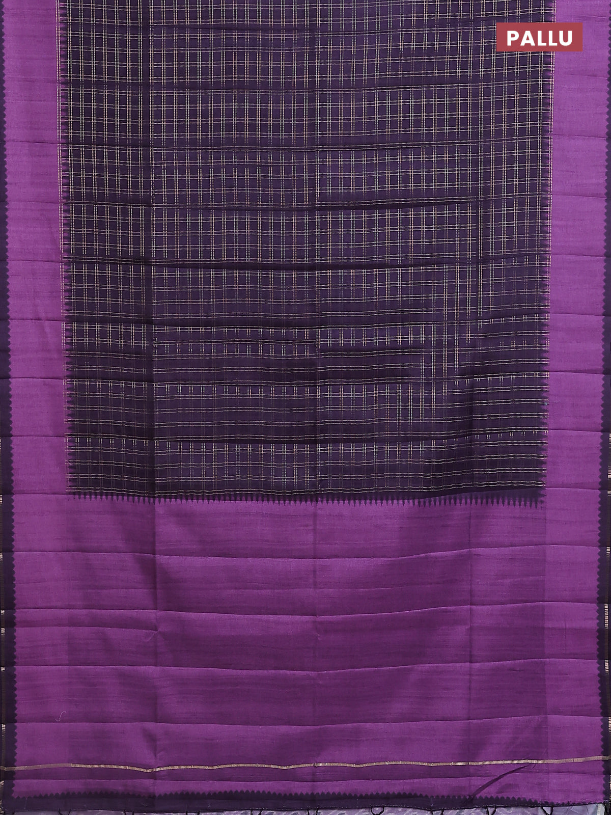 Semi tussar saree jamun shade and purple with allover zari checked pattern and rettapet zari woven border