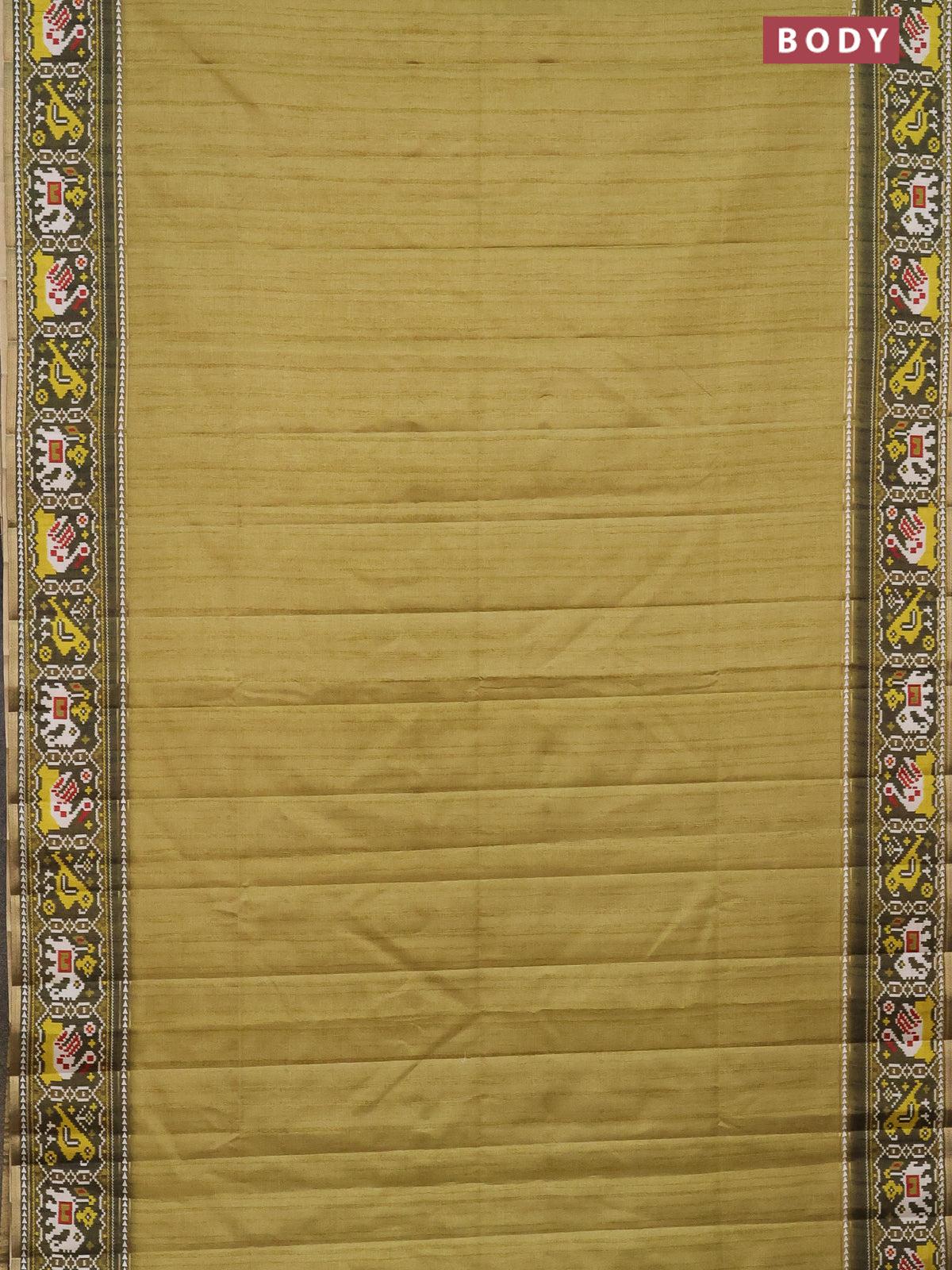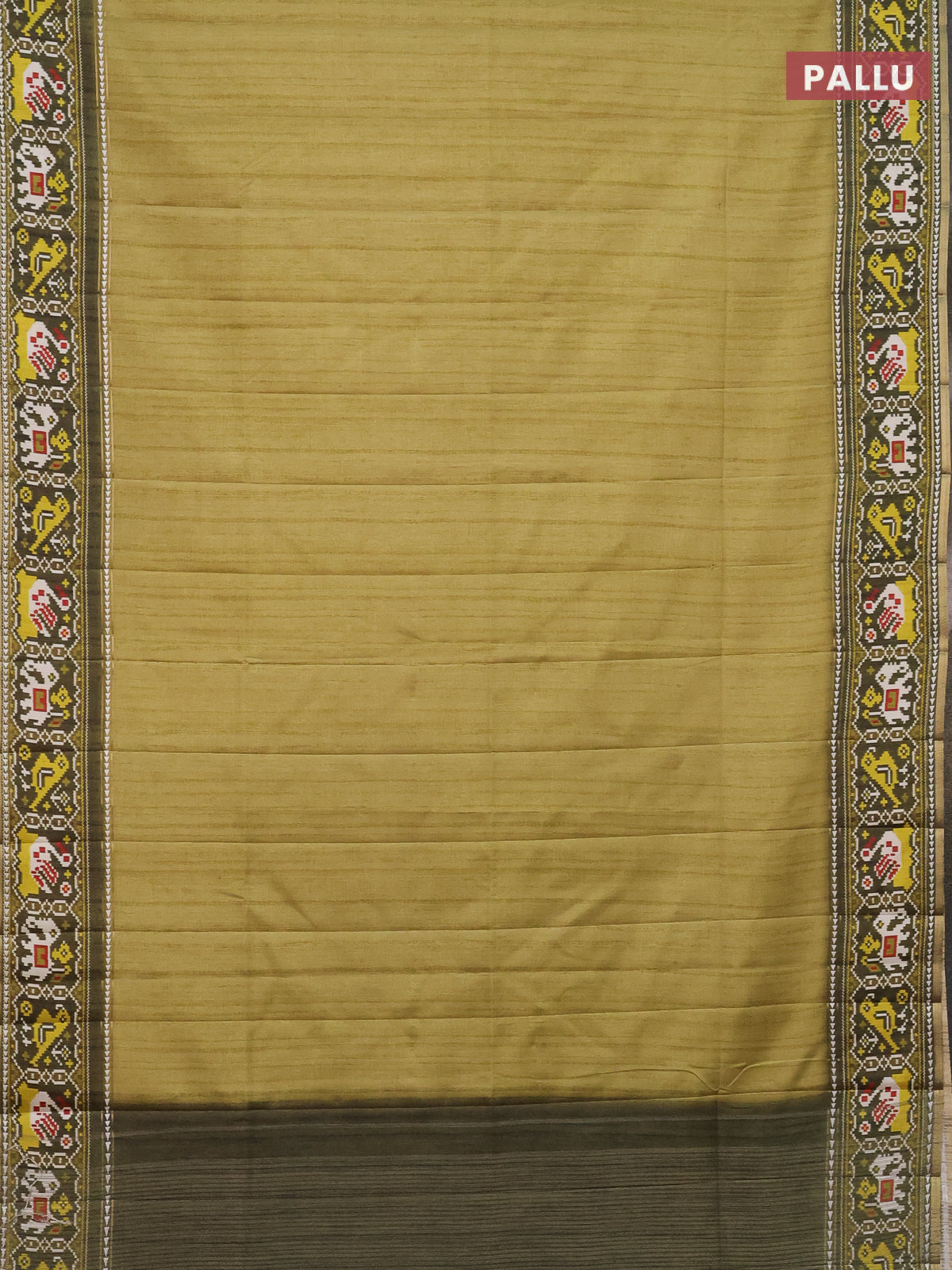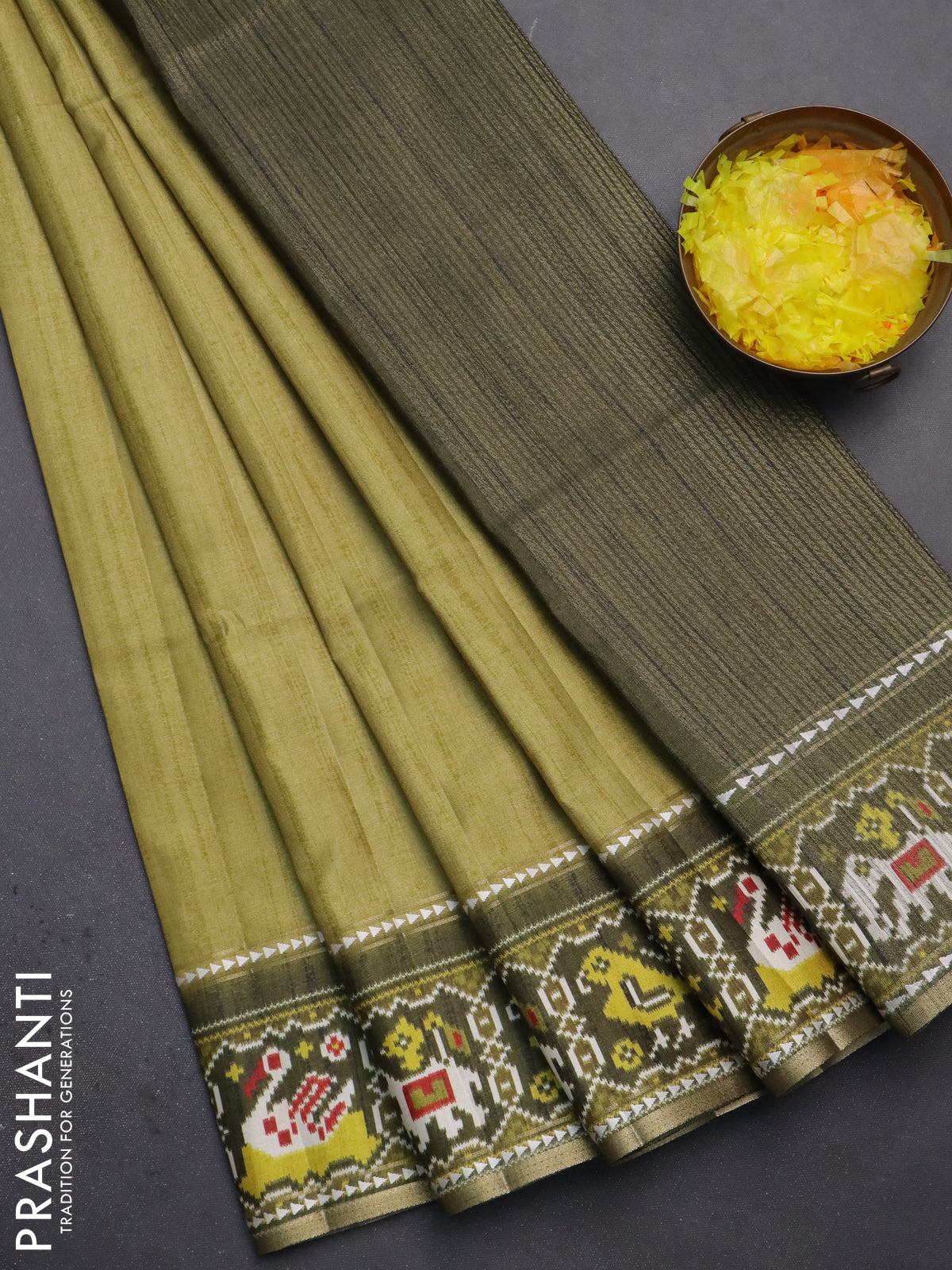 Semi tussar saree light green and sap green with plain body and patola printed border