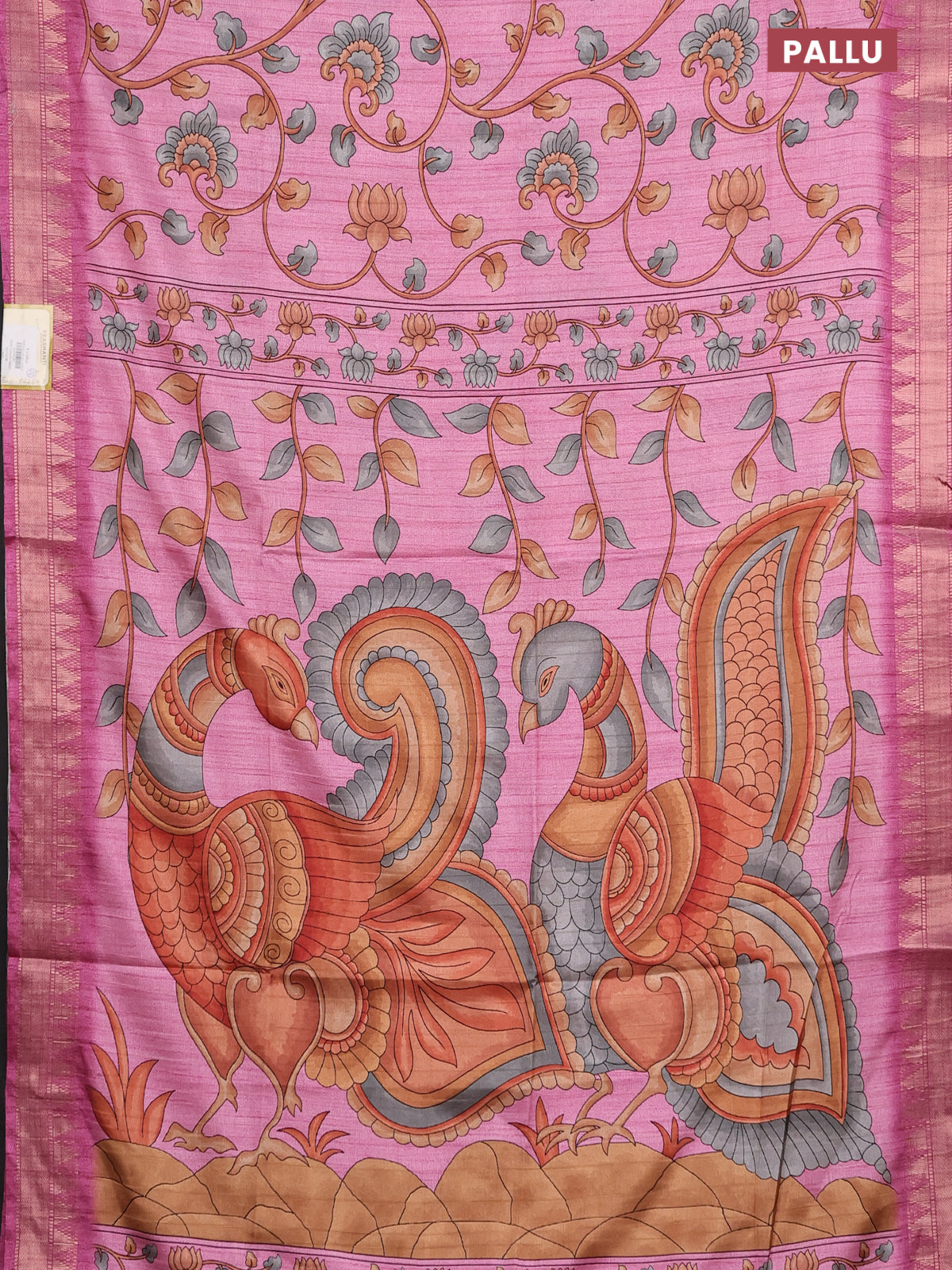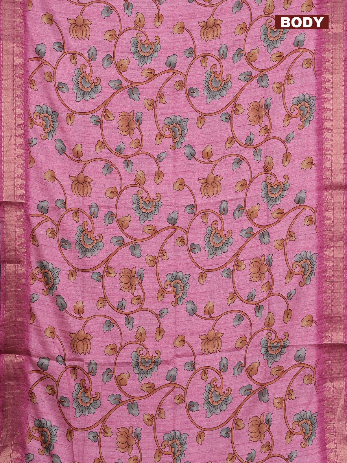 Semi tussar saree light pink with allover floral prints and zari woven border