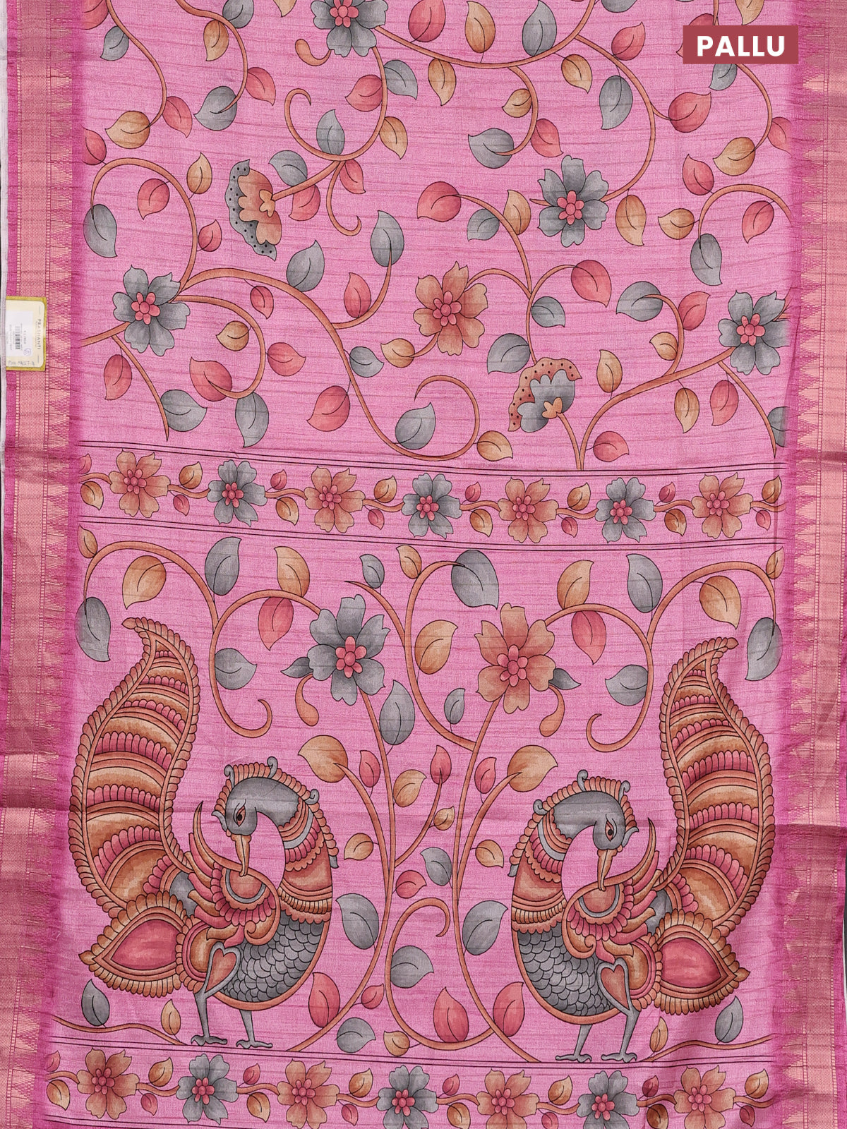 Semi tussar saree light pink with allover floral prints and zari woven border