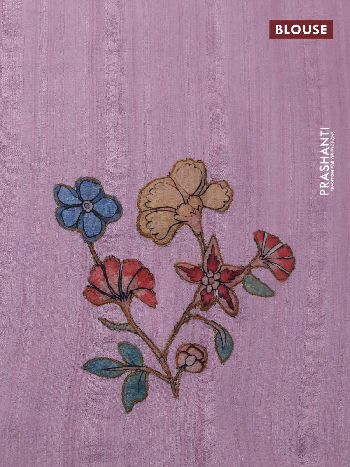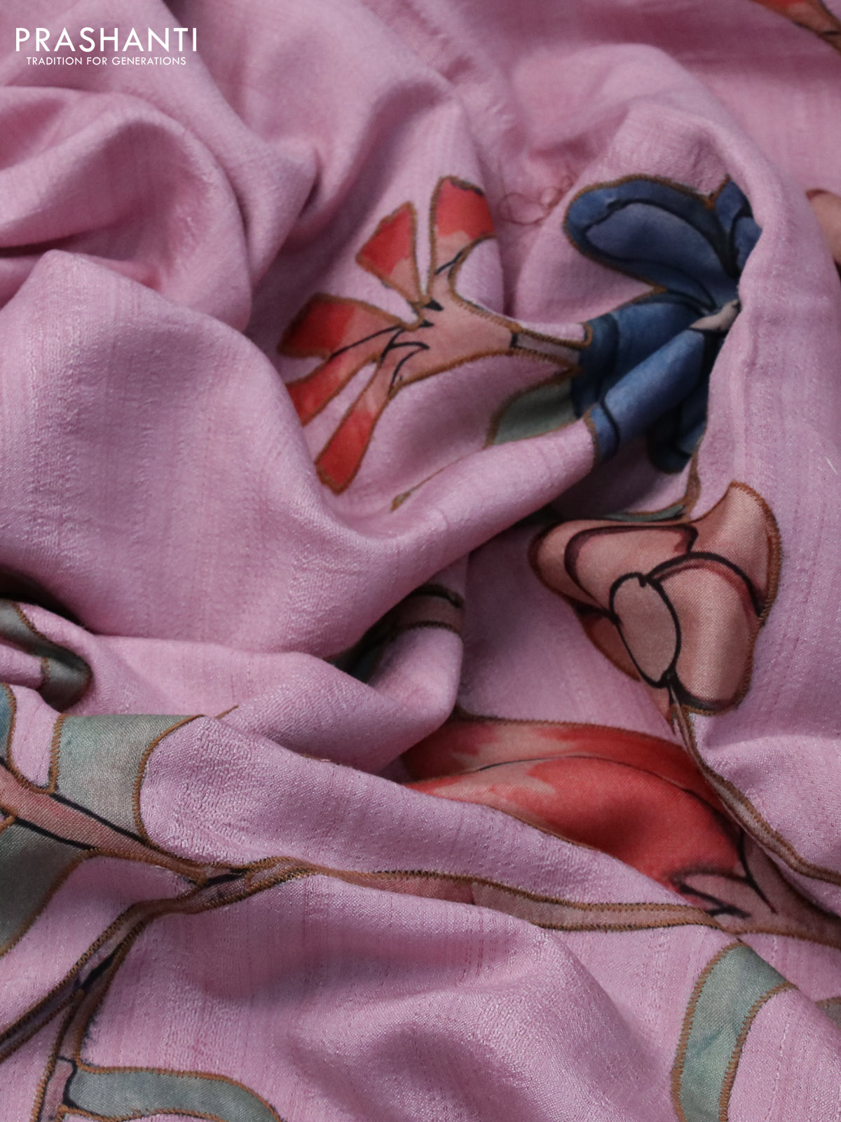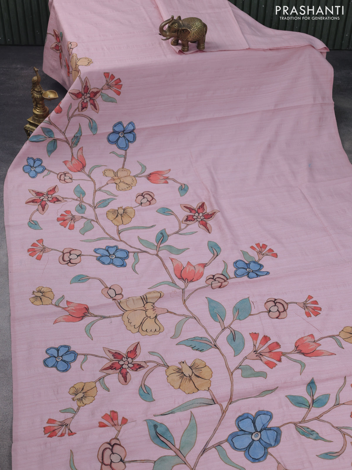 Semi tussar saree light pink with allover kalamkari applique work in borderless style