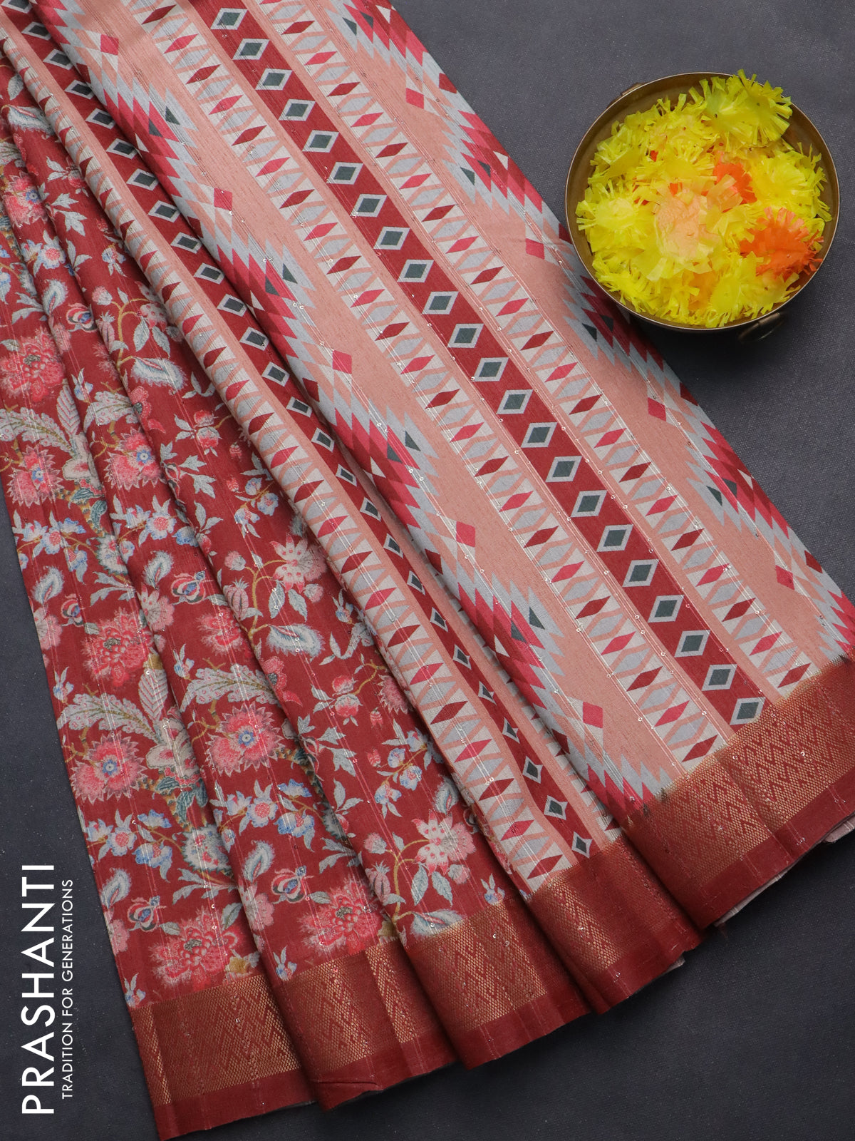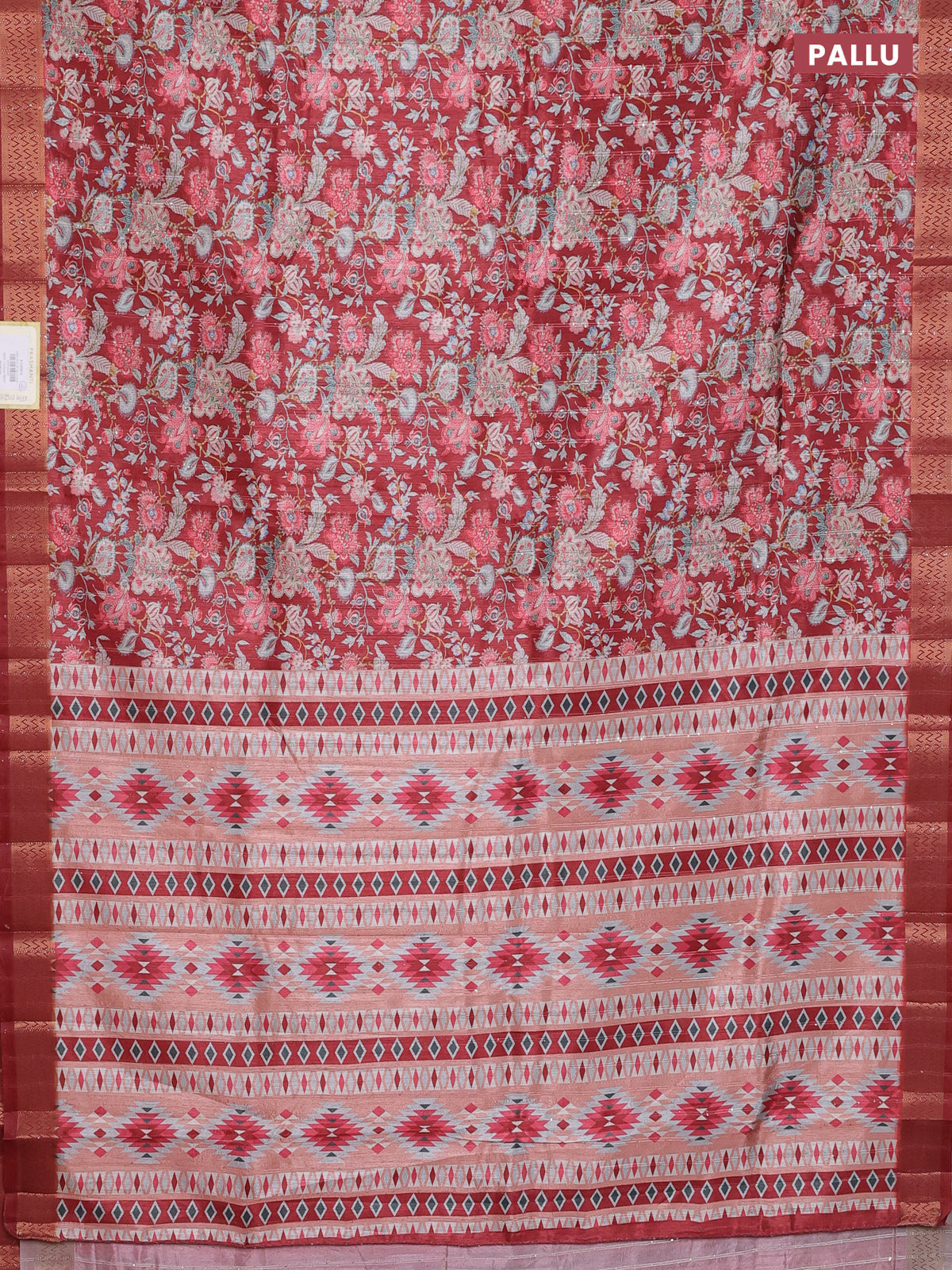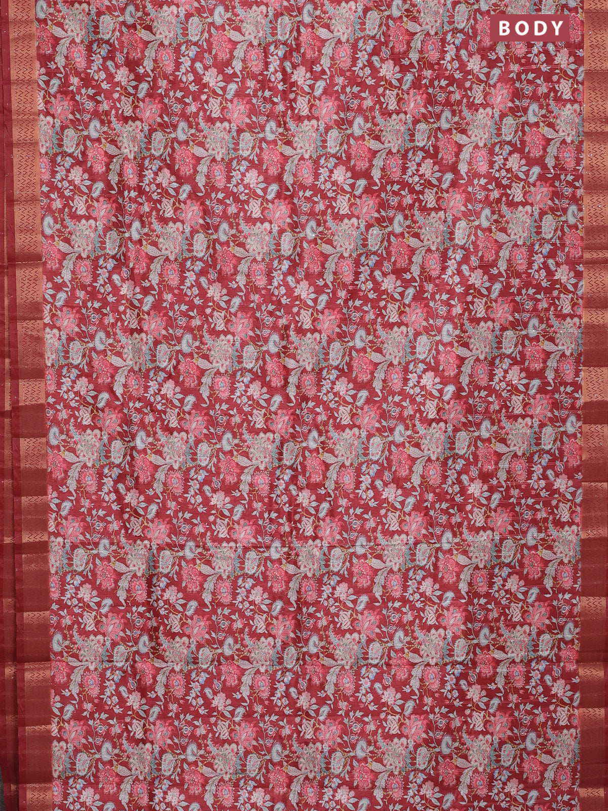 Semi tussar saree maroon with allover kalamkari prints & sequin work and zari woven border