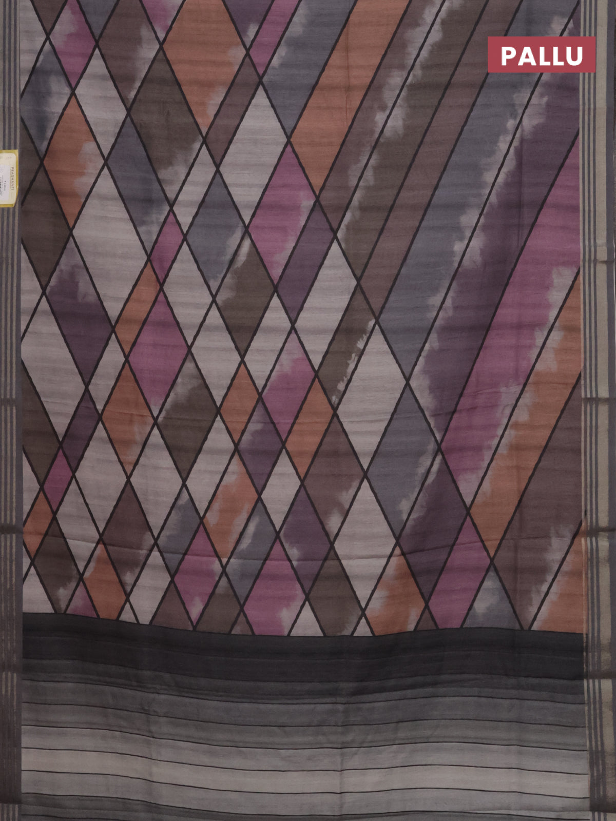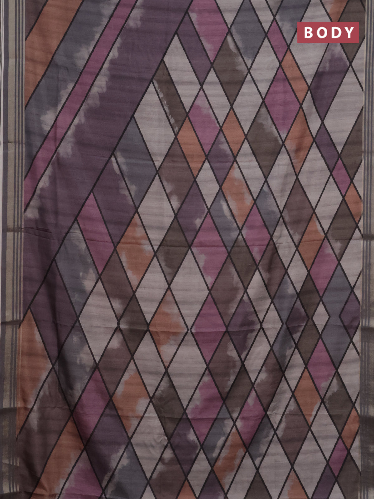 Semi tussar saree multicolour and grey with allover geometric prints and zari woven border