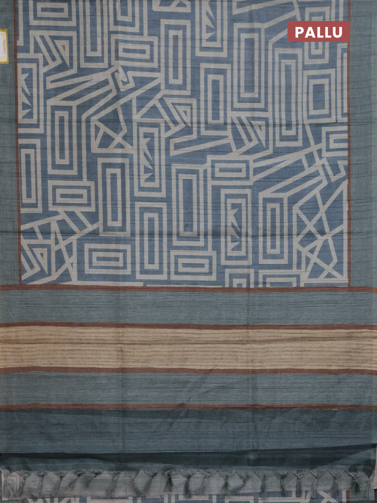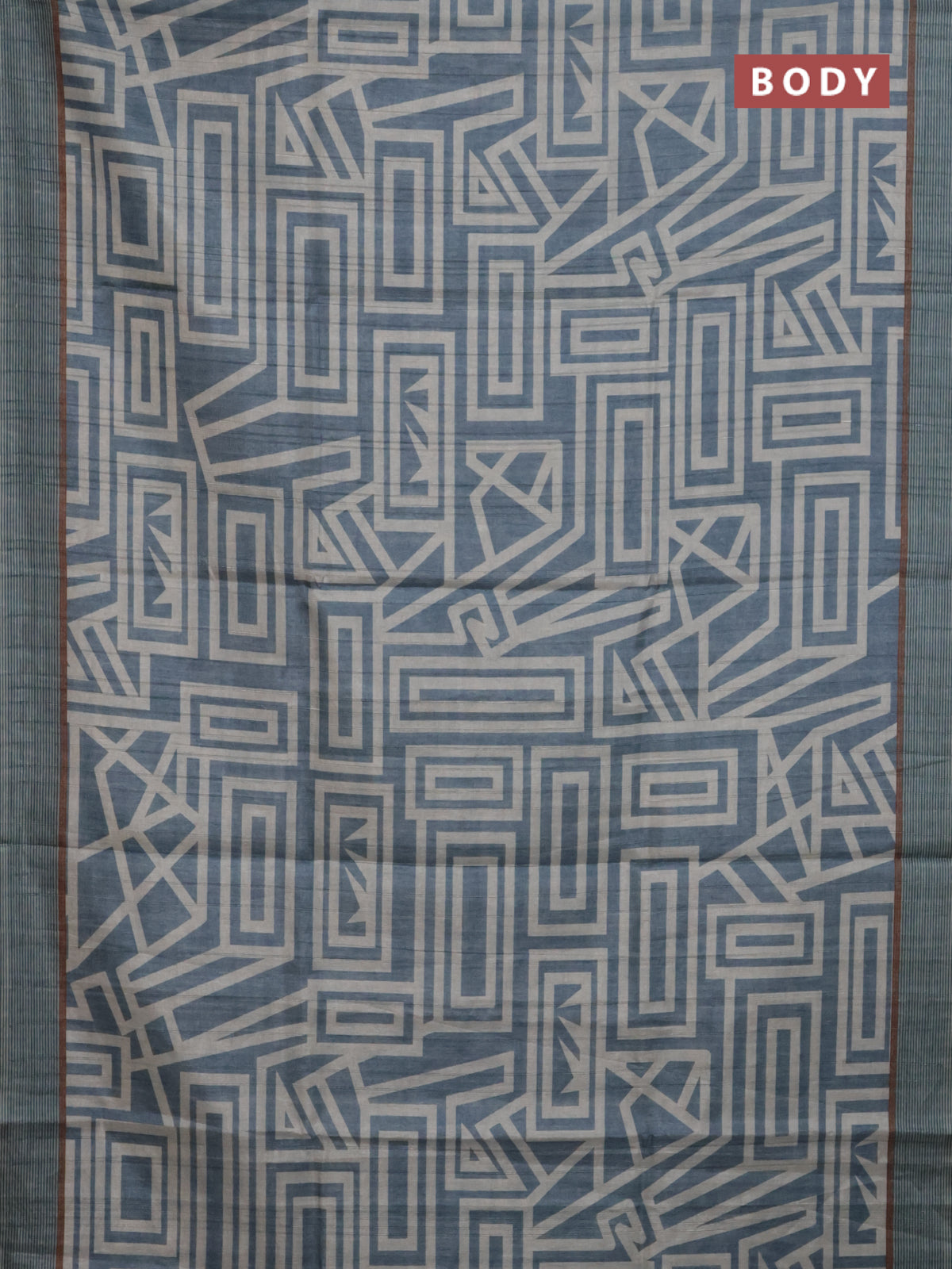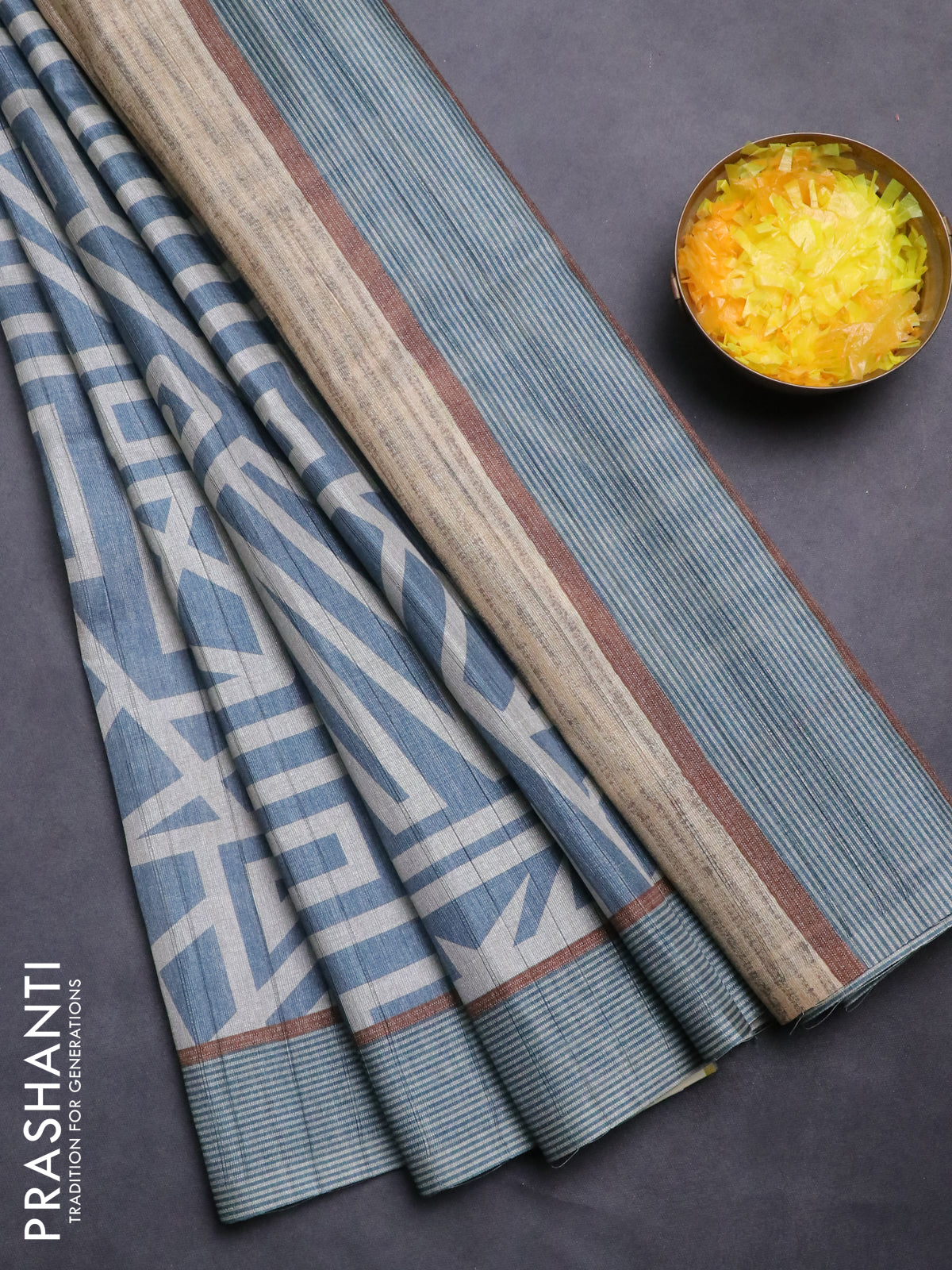 Semi tussar saree pastel blue and beige with geometric prints and simple border