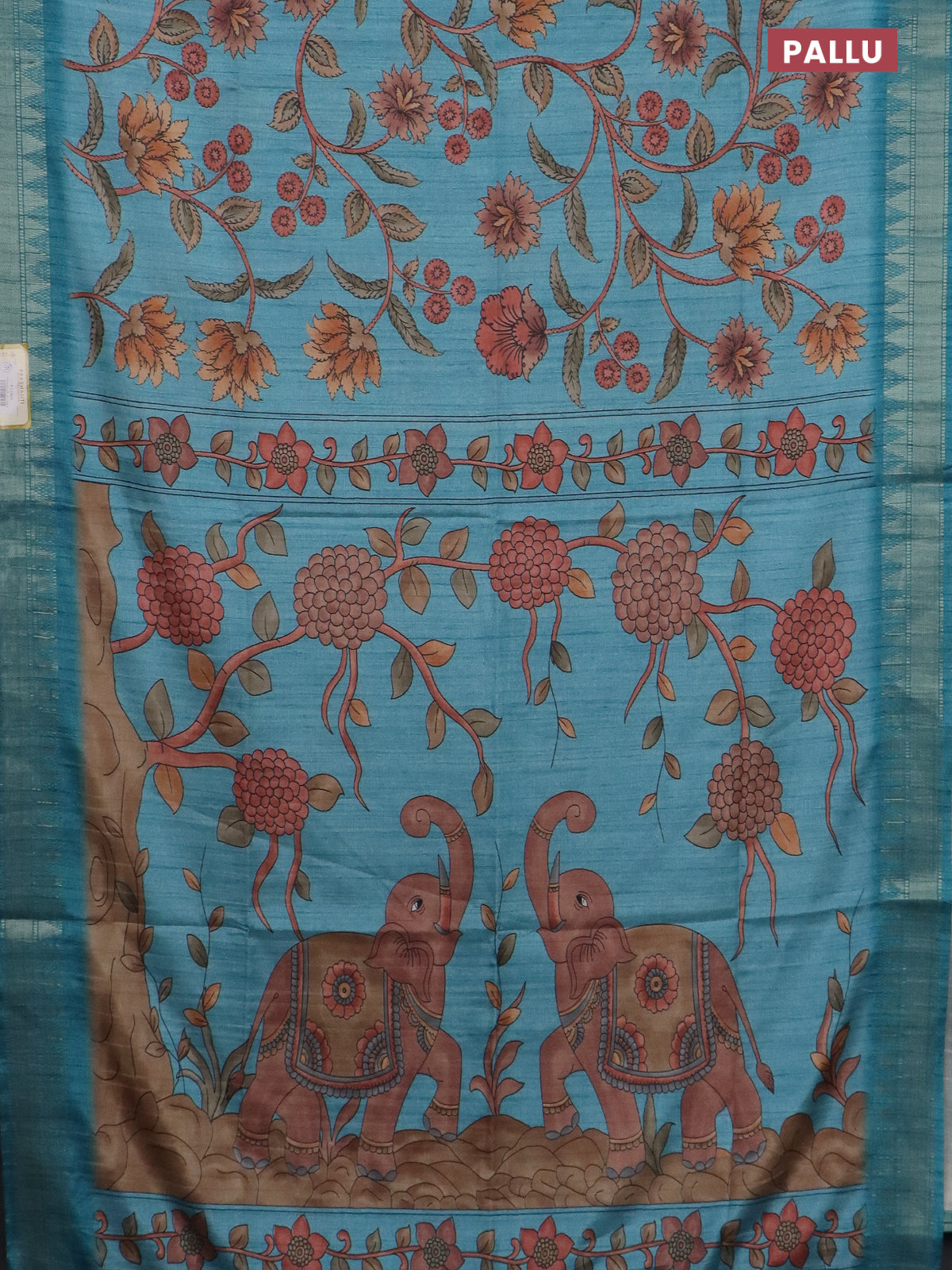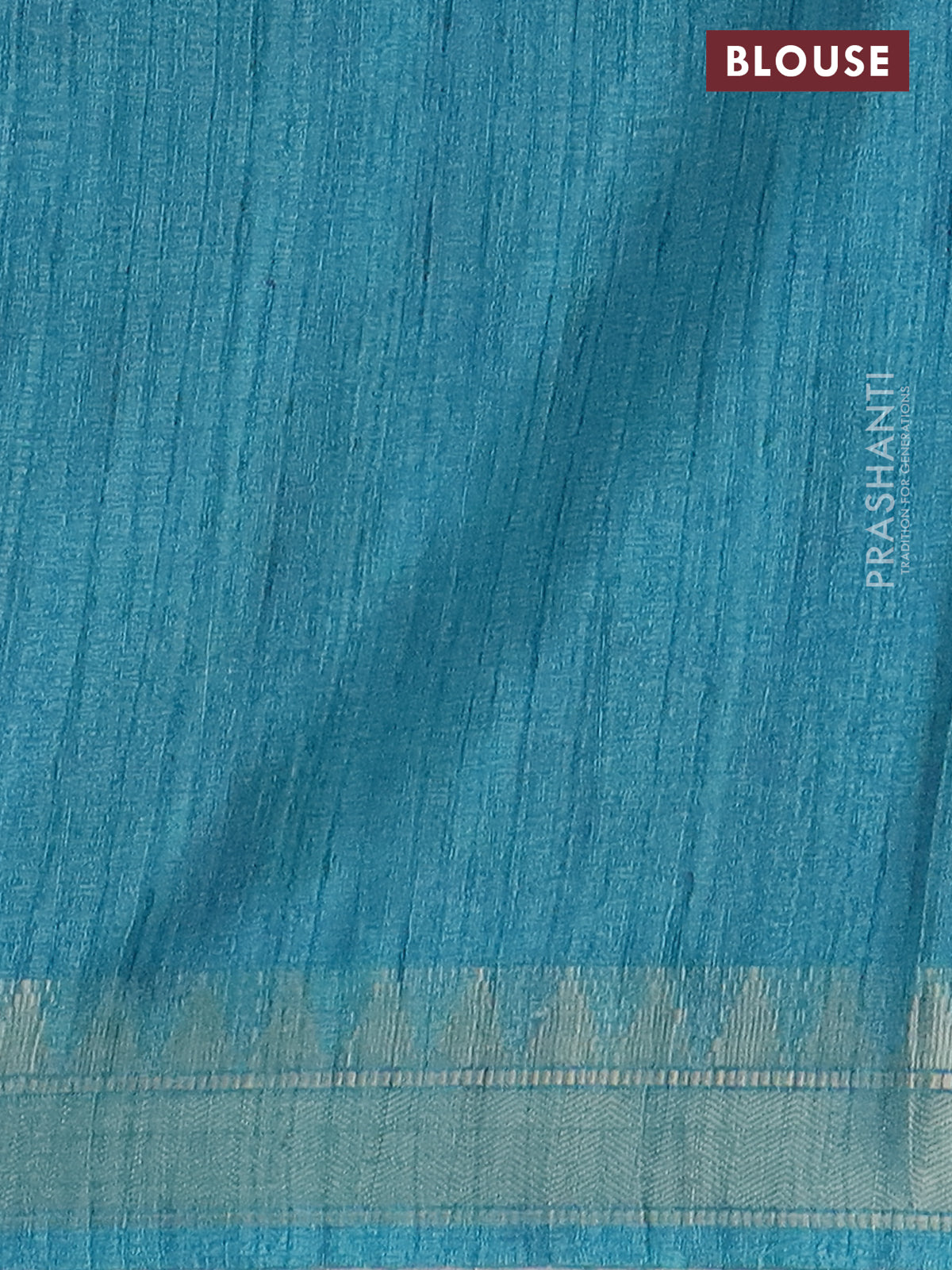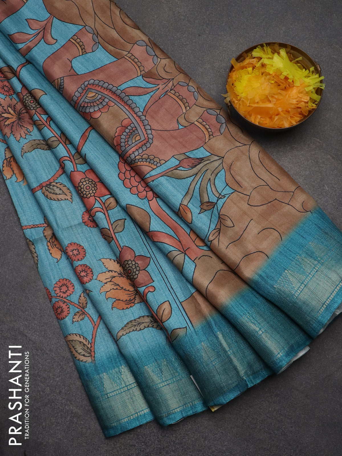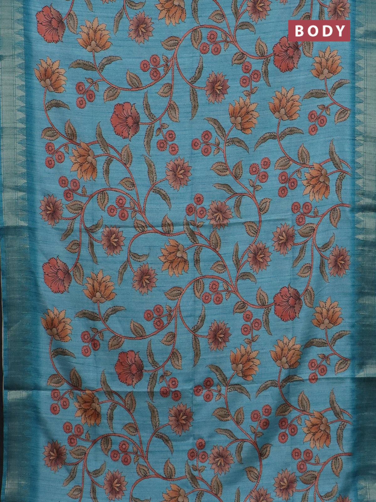 Semi tussar saree pastel blue with allover floral prints and zari woven border