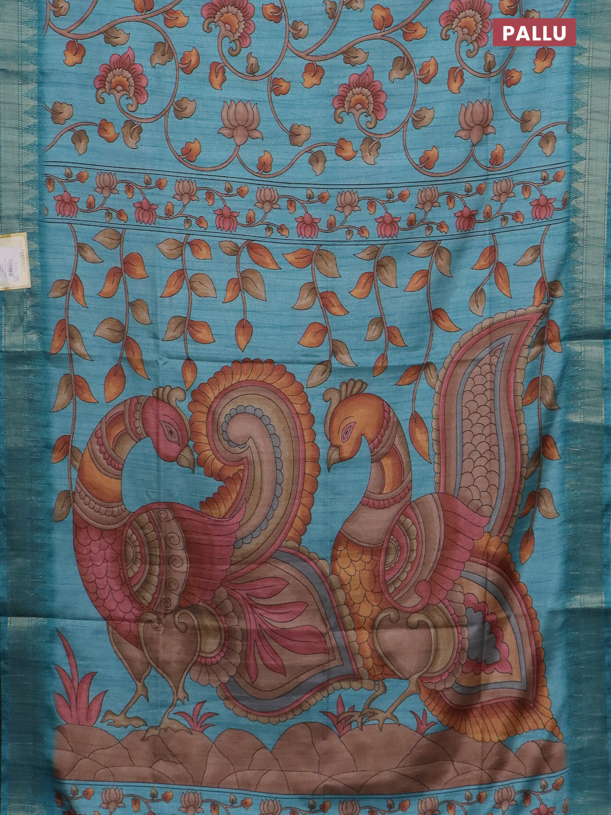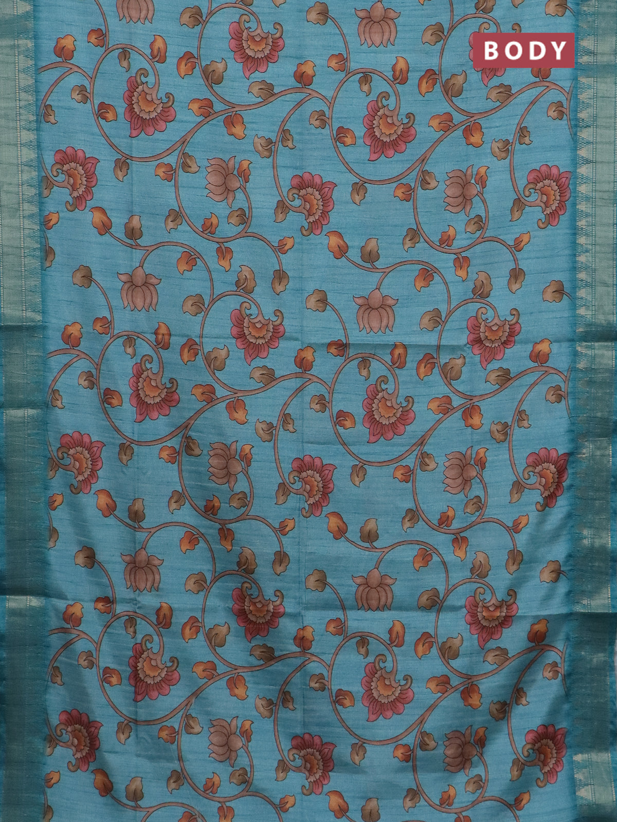 Semi tussar saree pastel blue with allover floral prints and zari woven border