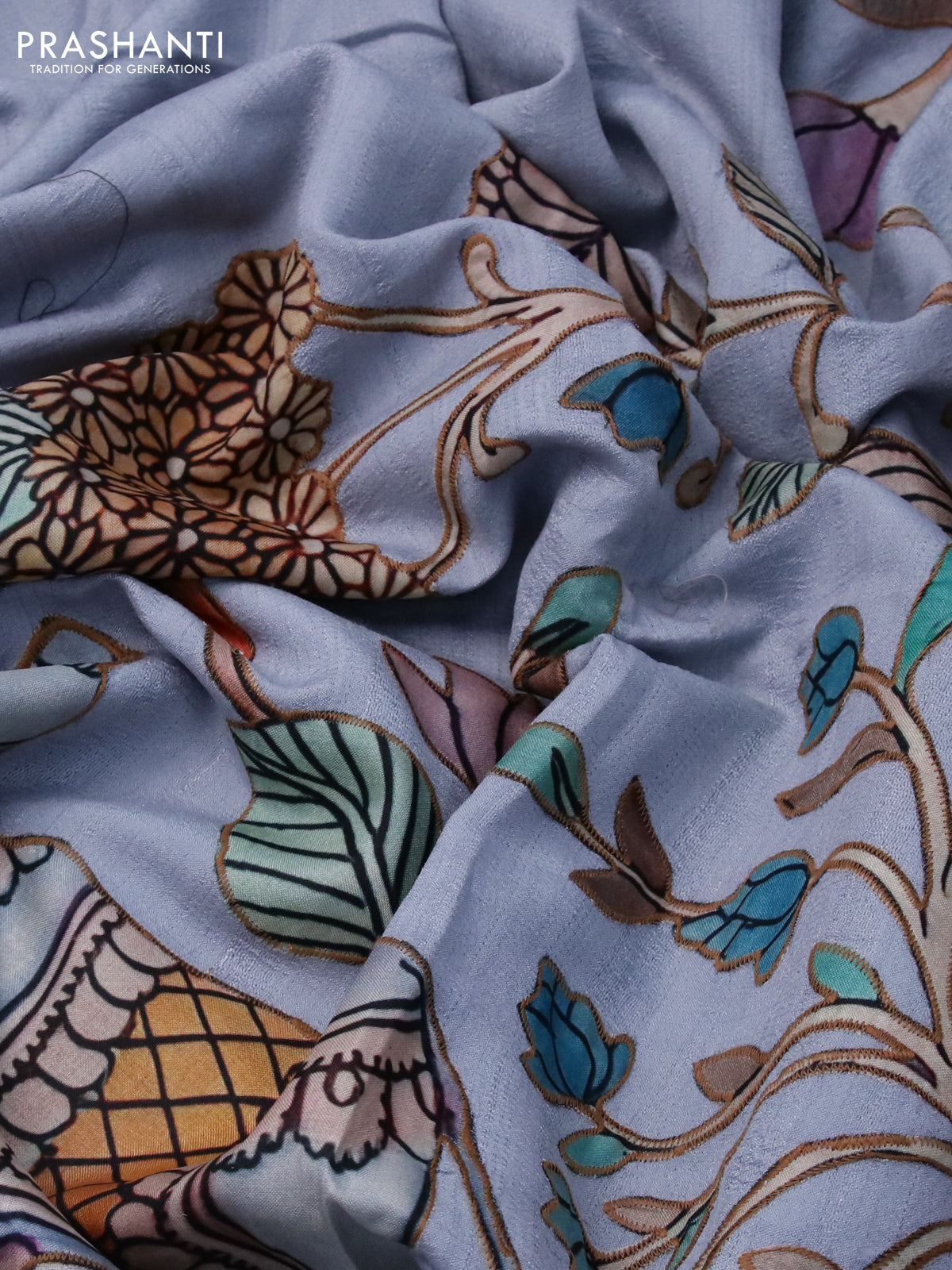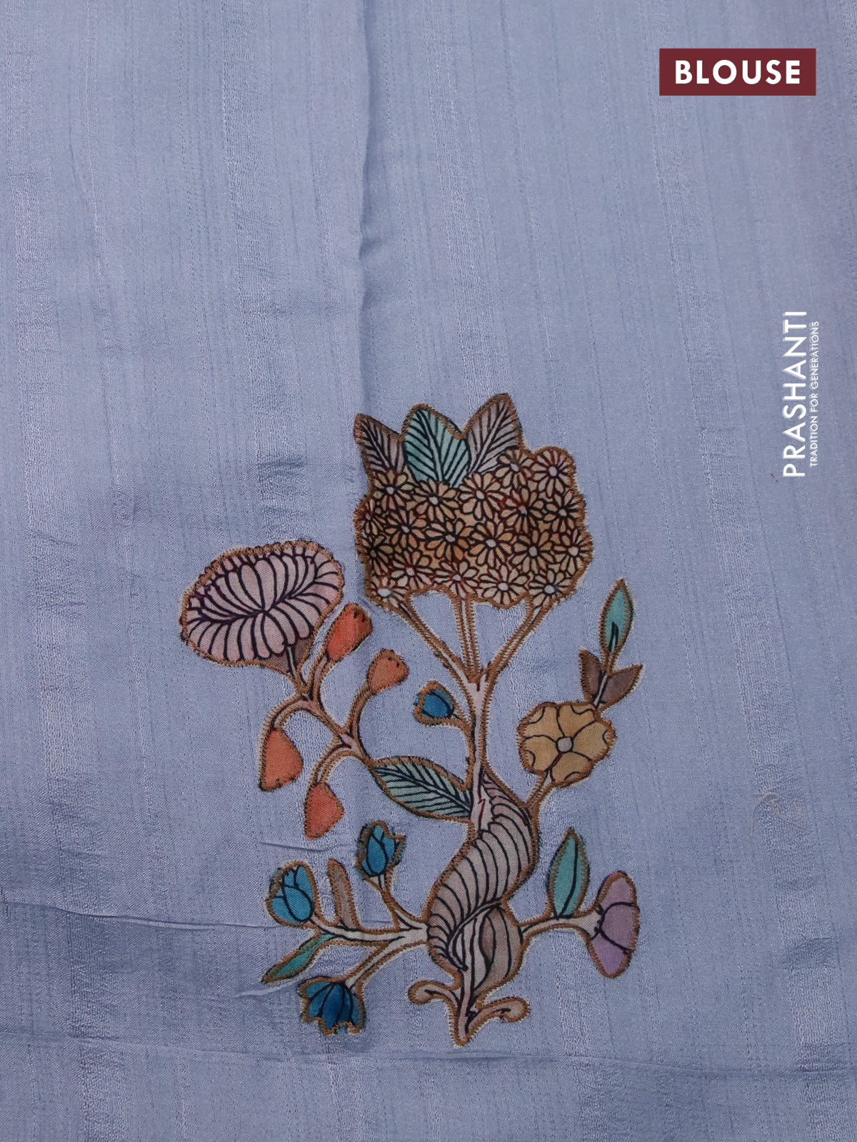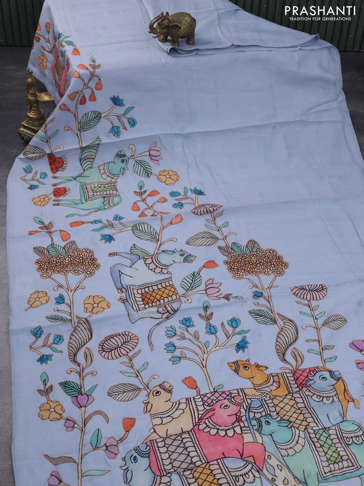 Semi tussar saree pastel blue with allover kalamkari applique work in borderless style