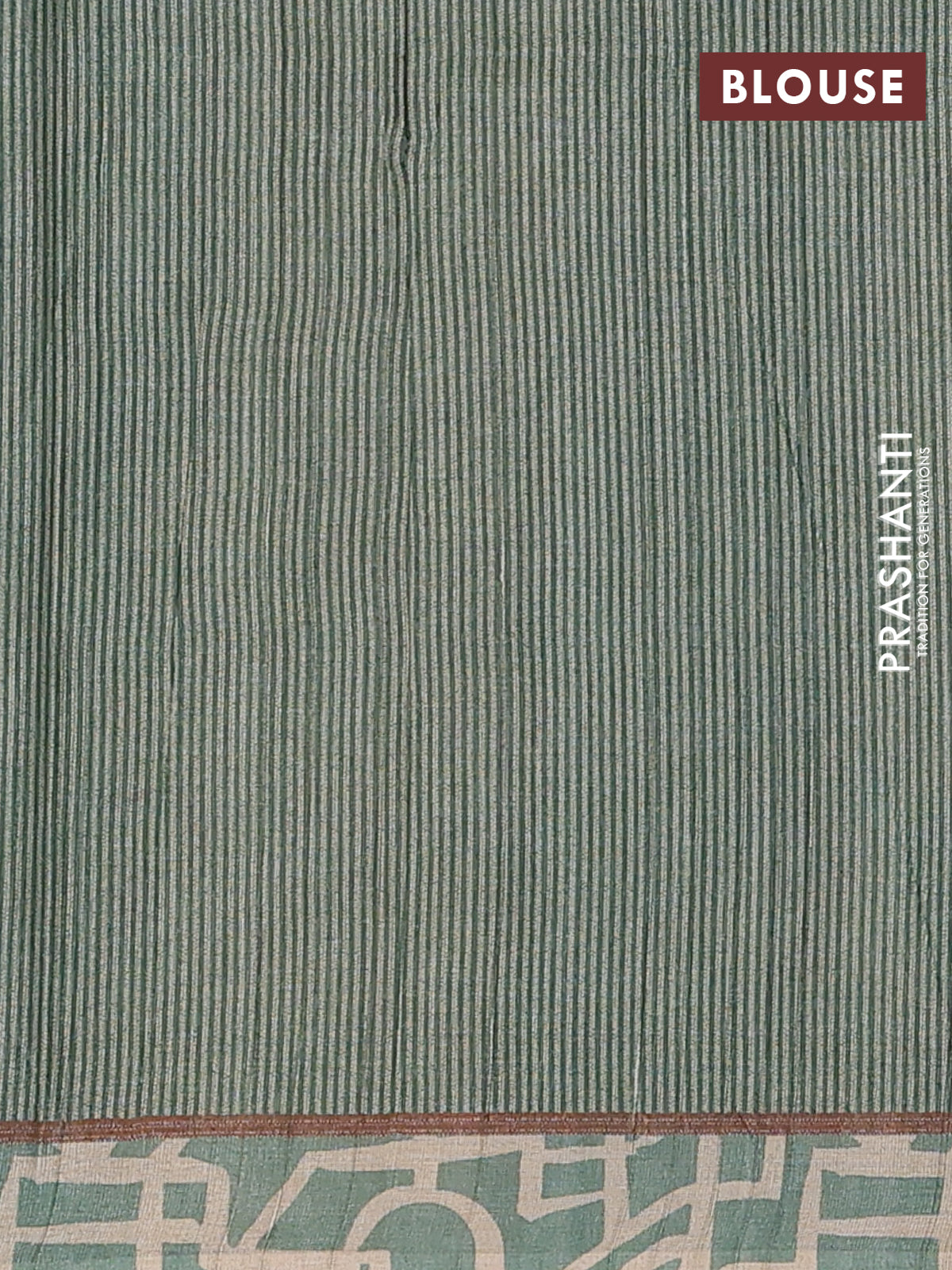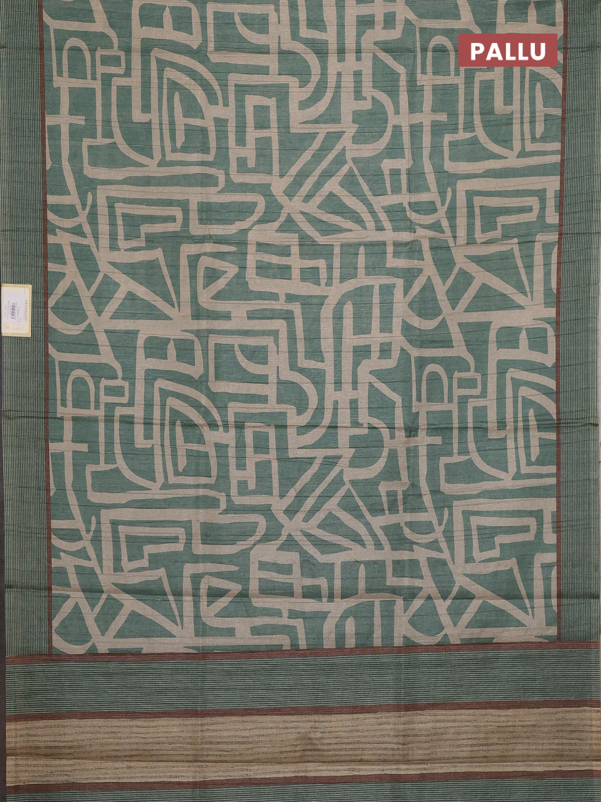 Semi tussar saree pastel green and beige with geometric prints and simple border