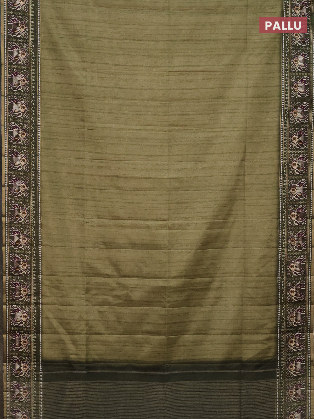 Semi tussar saree pastel green and sap green with plain body and patola printed border