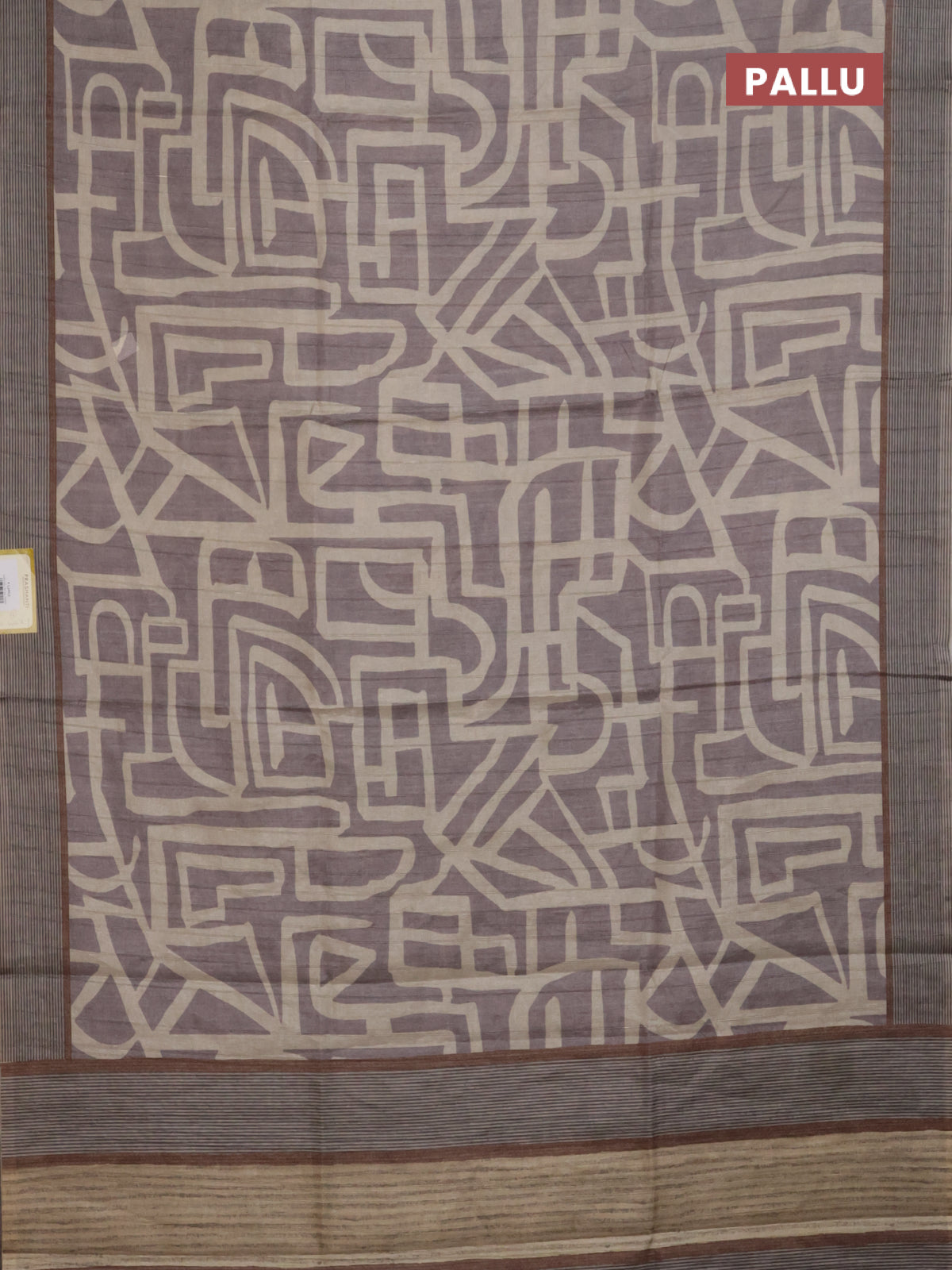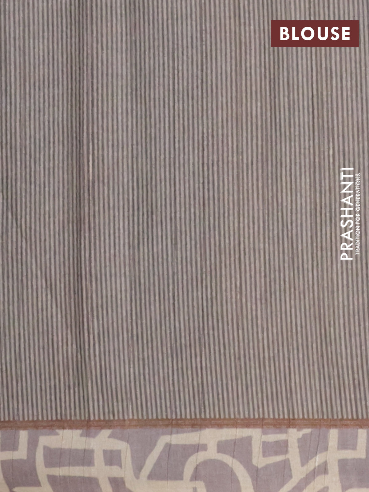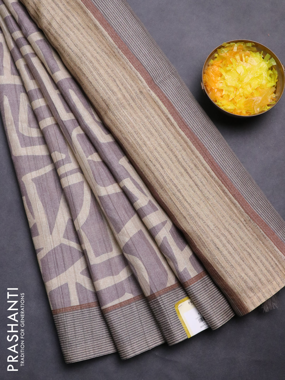 Semi tussar saree pastel lavender and beige with geometric prints and simple border
