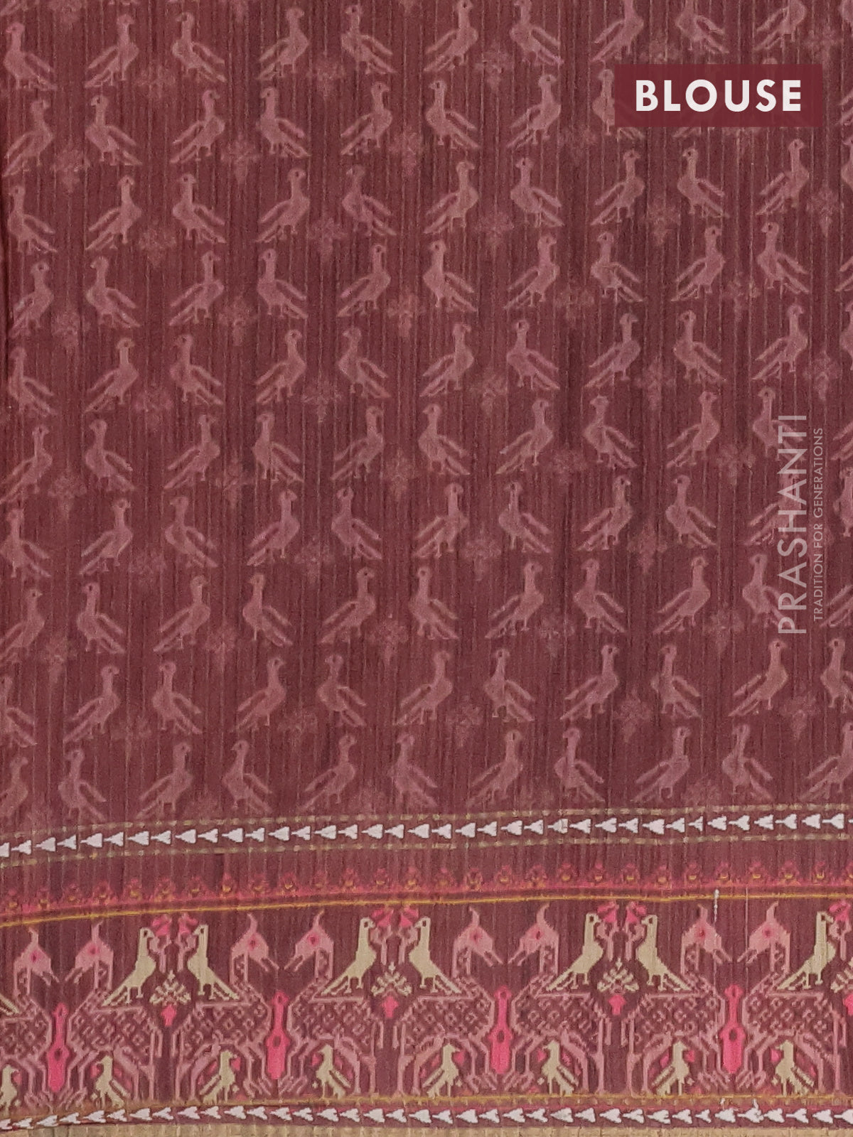 Semi tussar saree pastel peach and brown with plain body and patola printed border