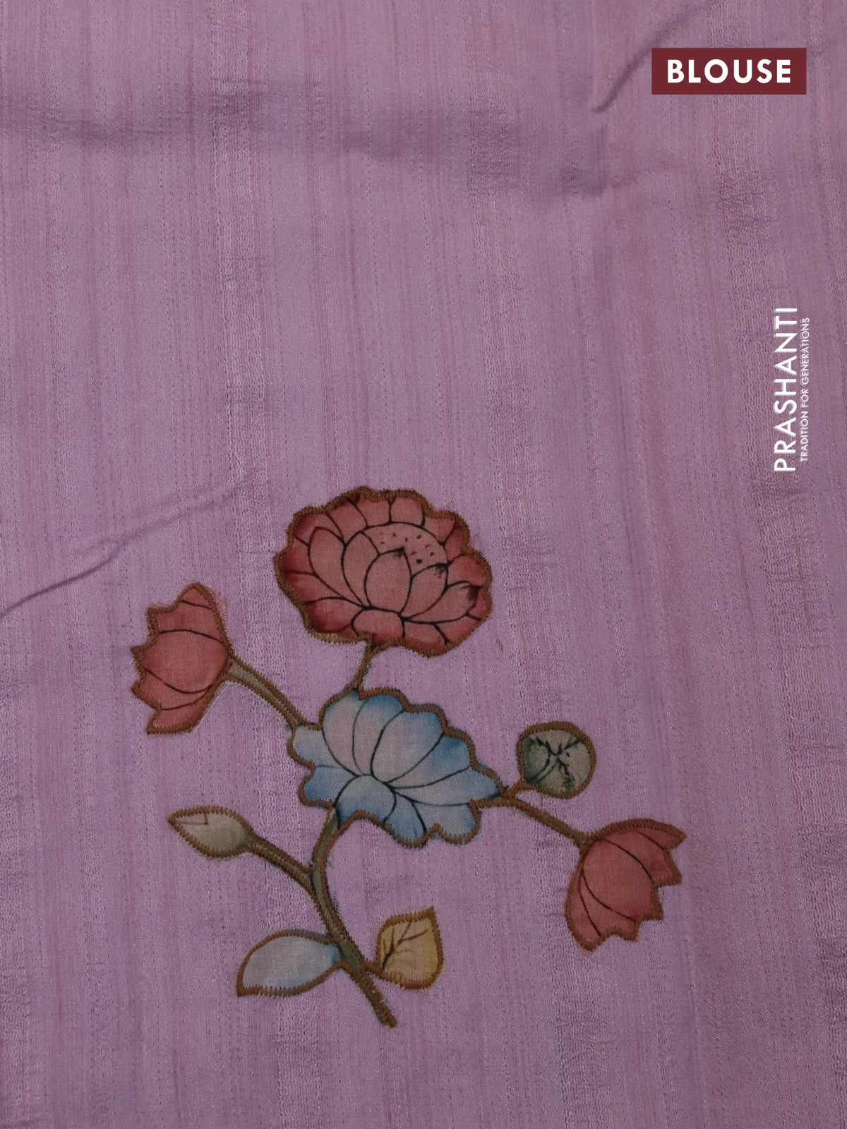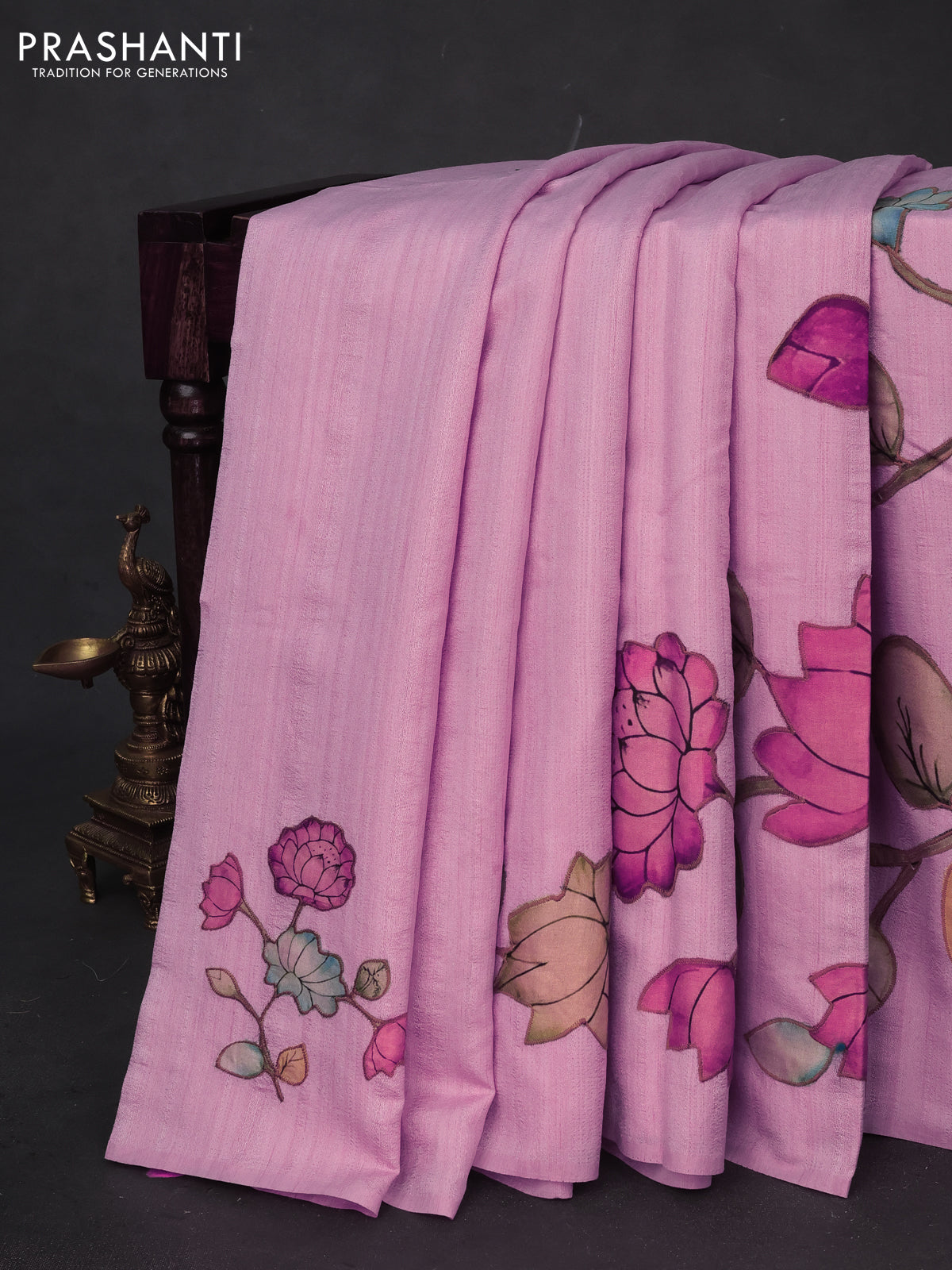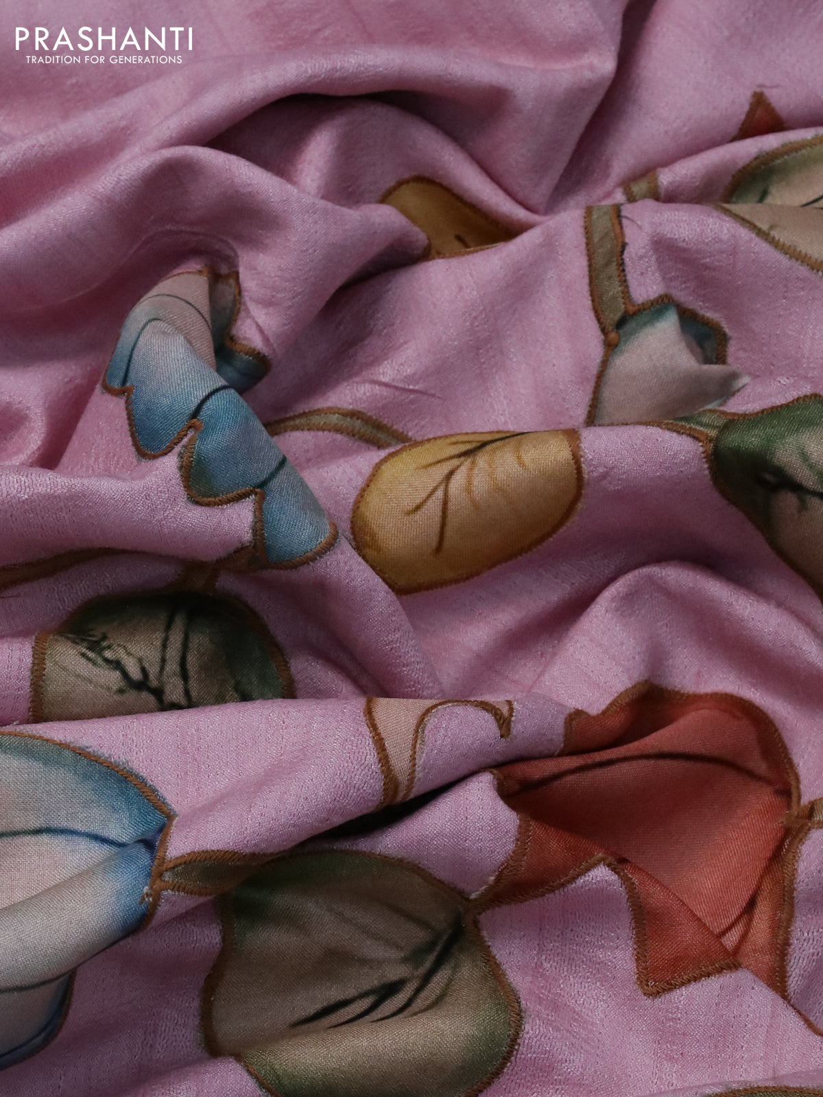 Semi tussar saree pastel pink with allover kalamkari applique work in borderless style