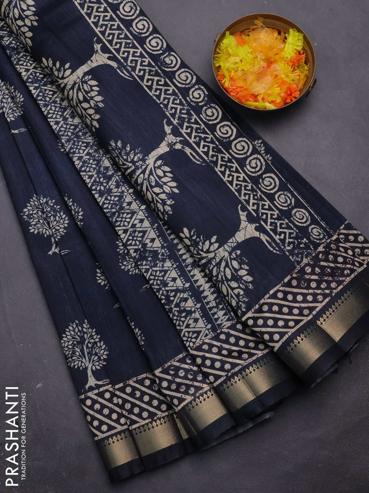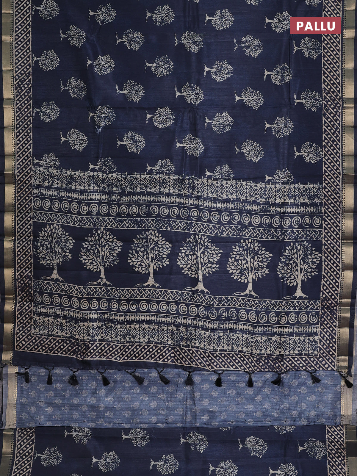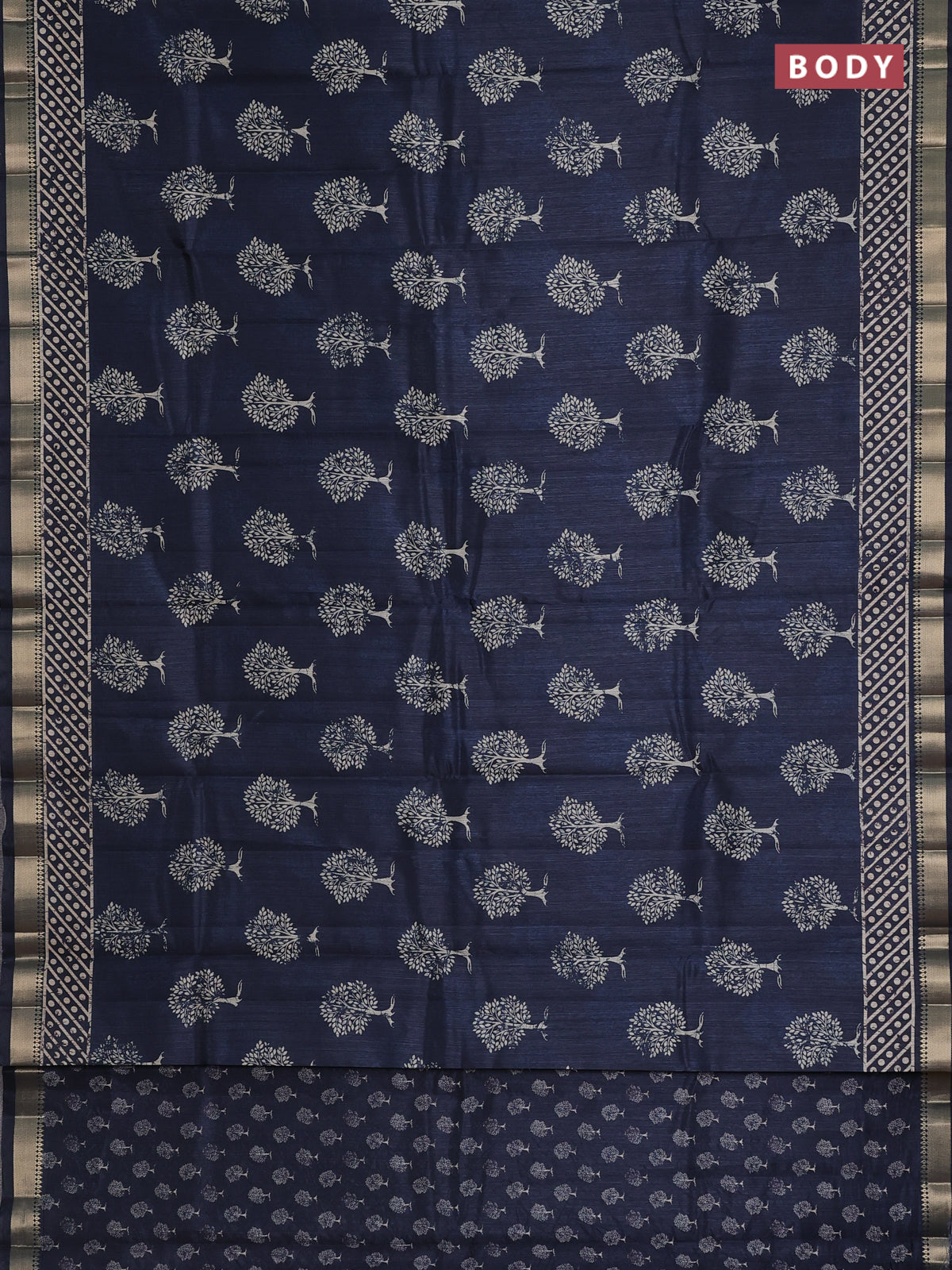 Semi tussar saree peacock blue with tree butta prints and zari woven border