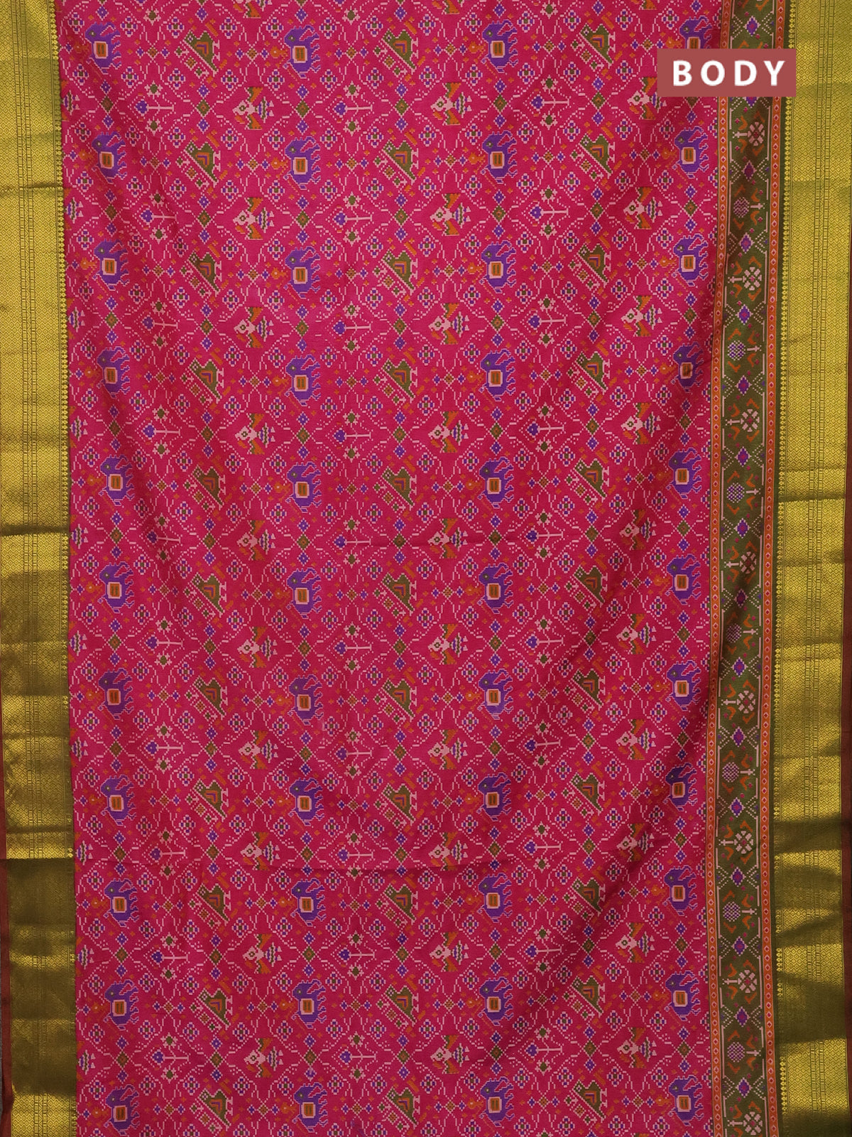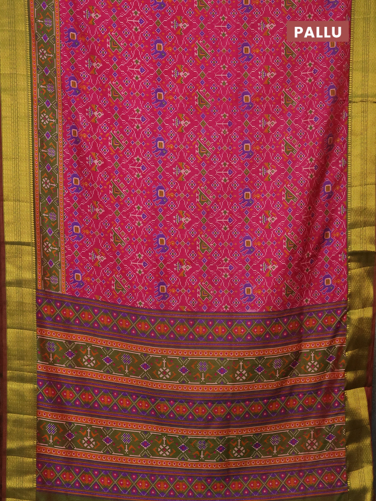 Semi tussar saree pink and dual shade of green with allover patola prints and zari woven border