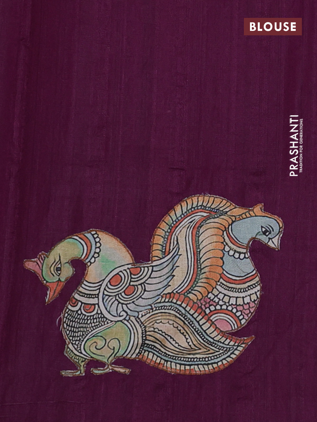 Semi tussar saree purple with kalamkari applique work in borderless style
