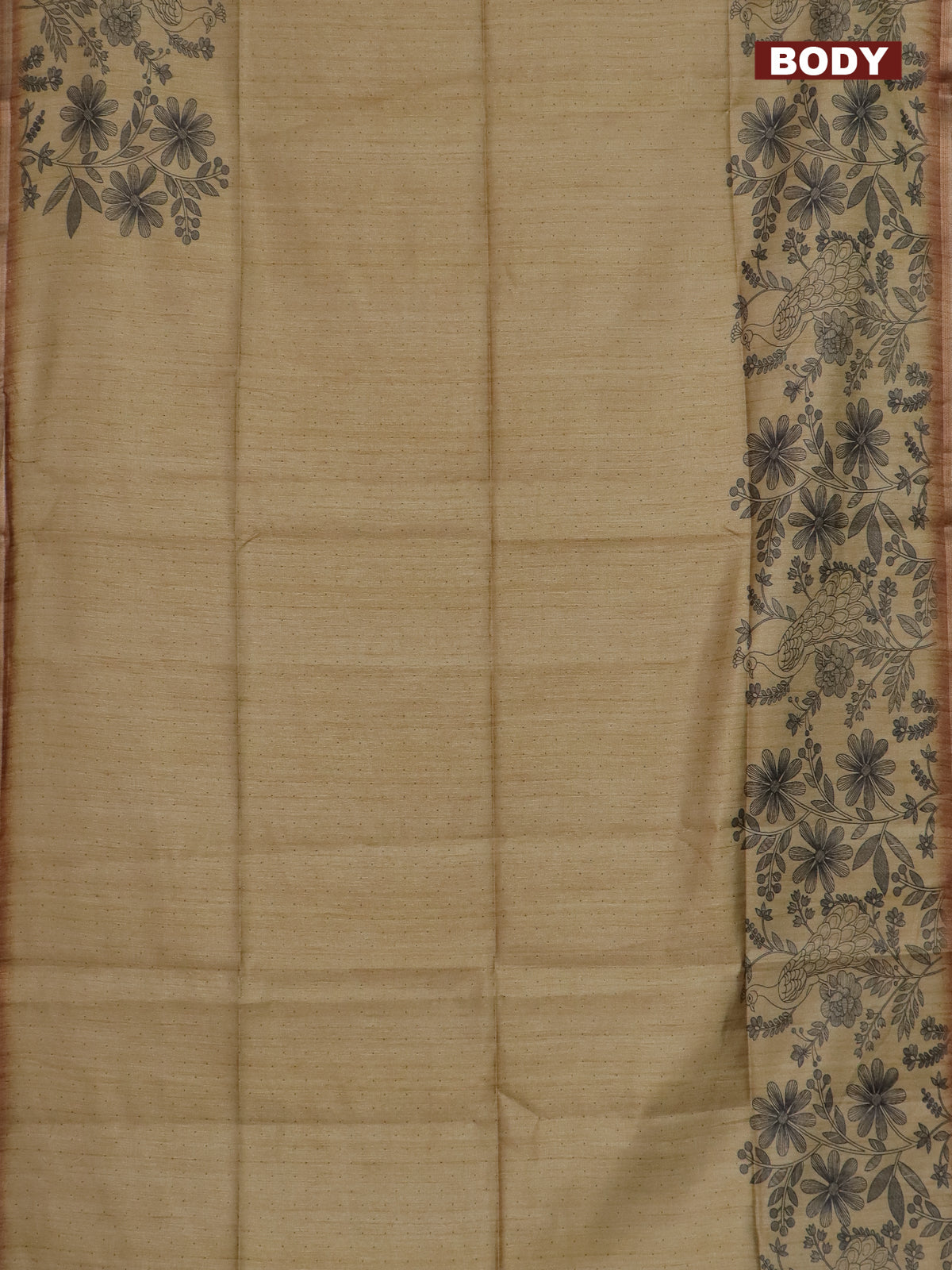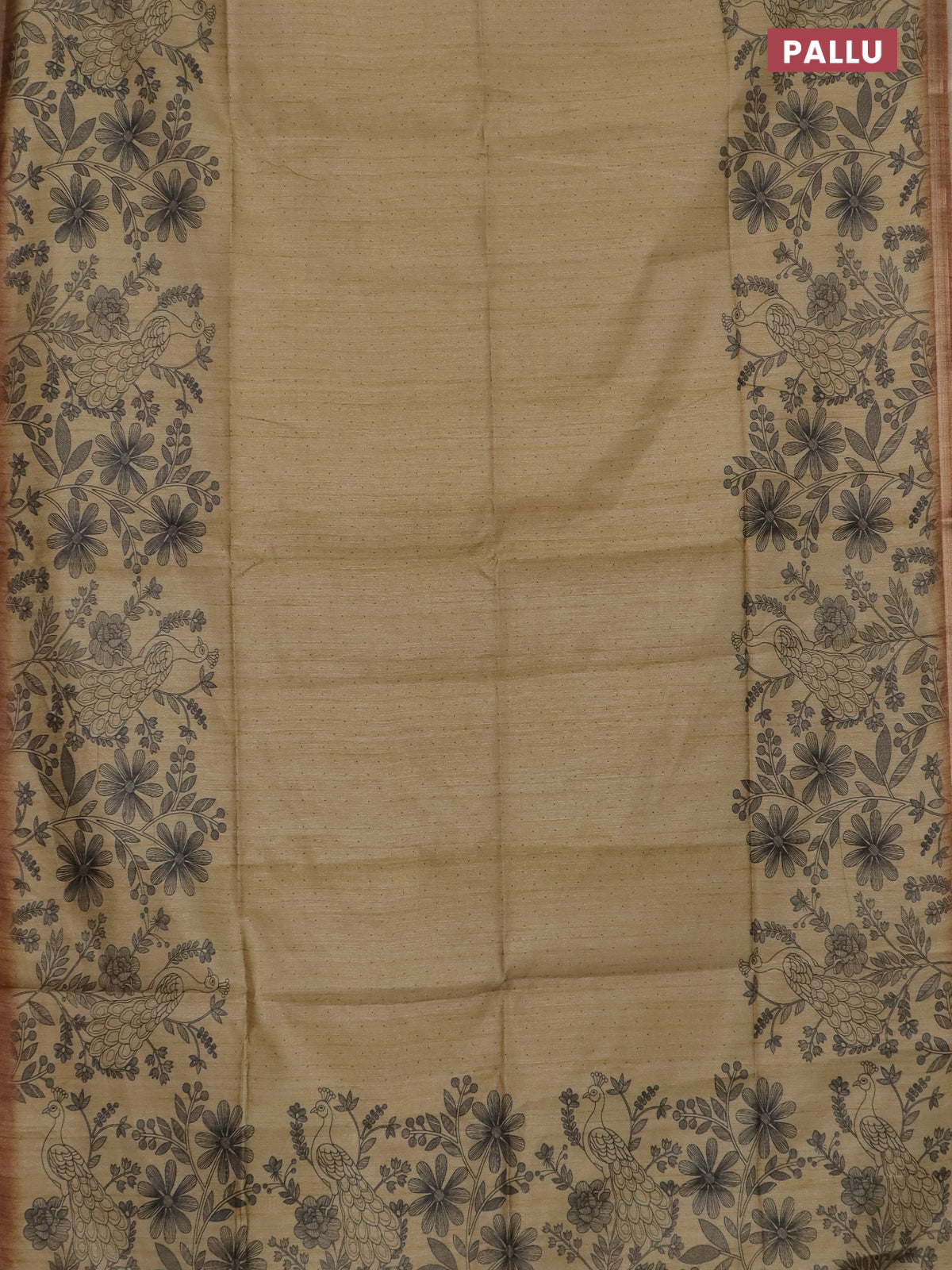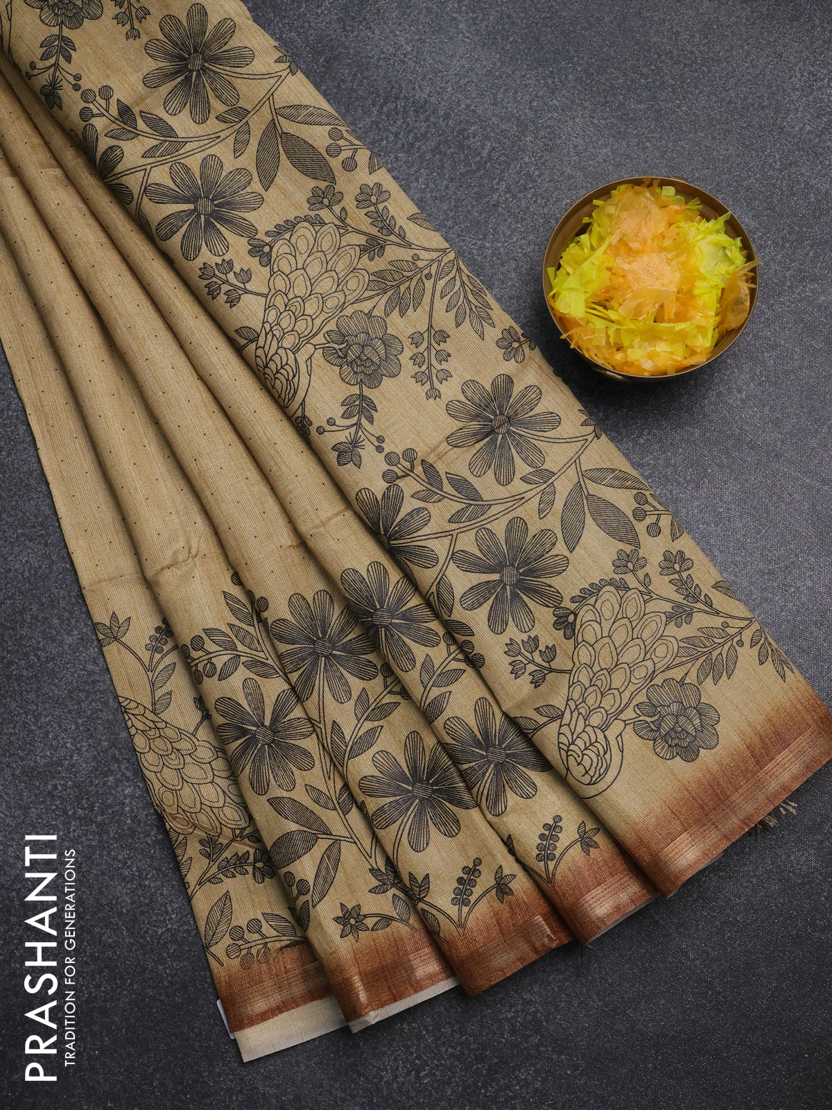 Semi tussar saree sandal with allover butta prints and long printed border