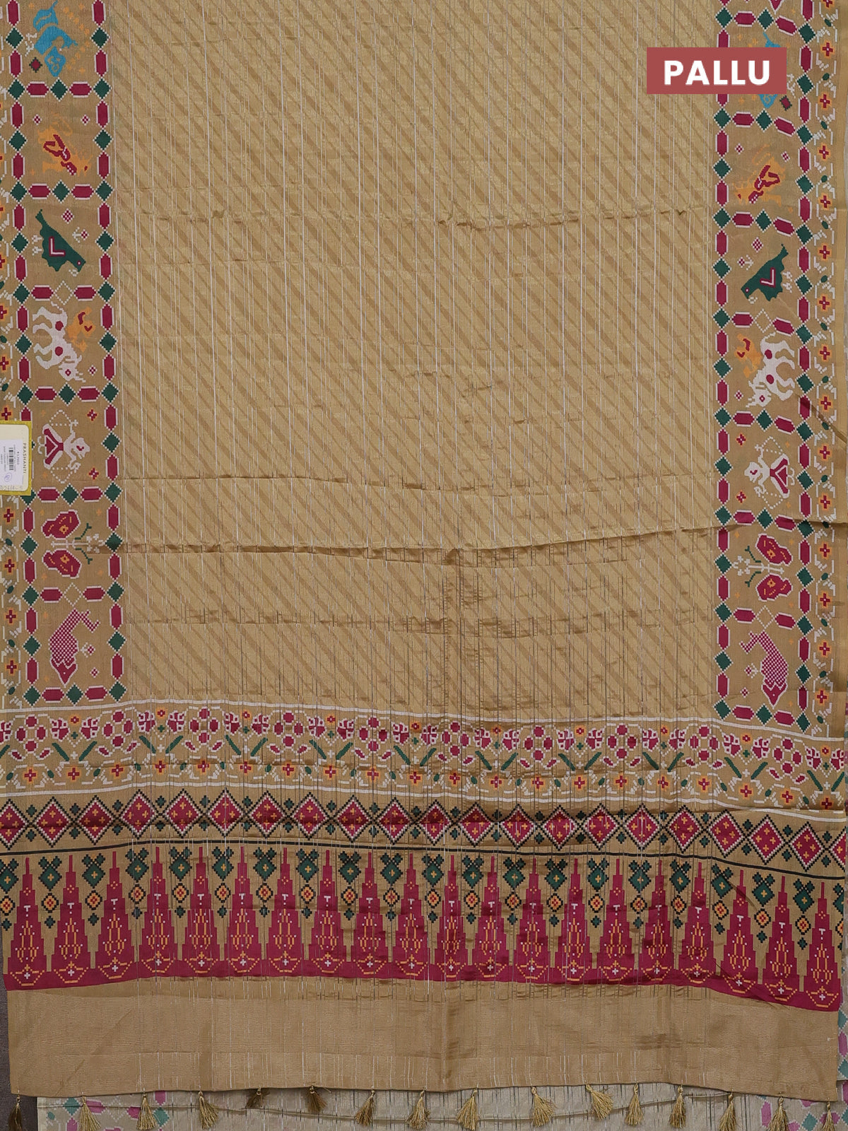 Semi tussar saree sandal with leheriya prints and patola printed border