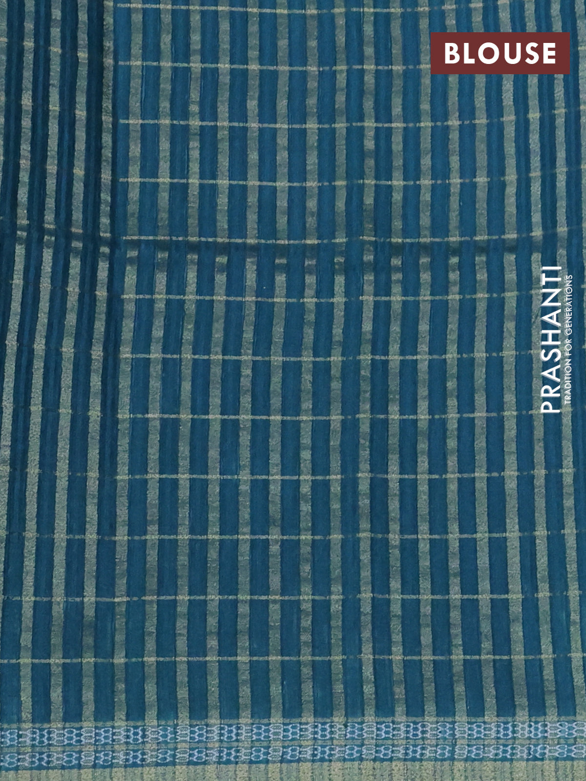 Semi tussar saree sap green and peacock green with allover zari checks & digital prints and zari woven border