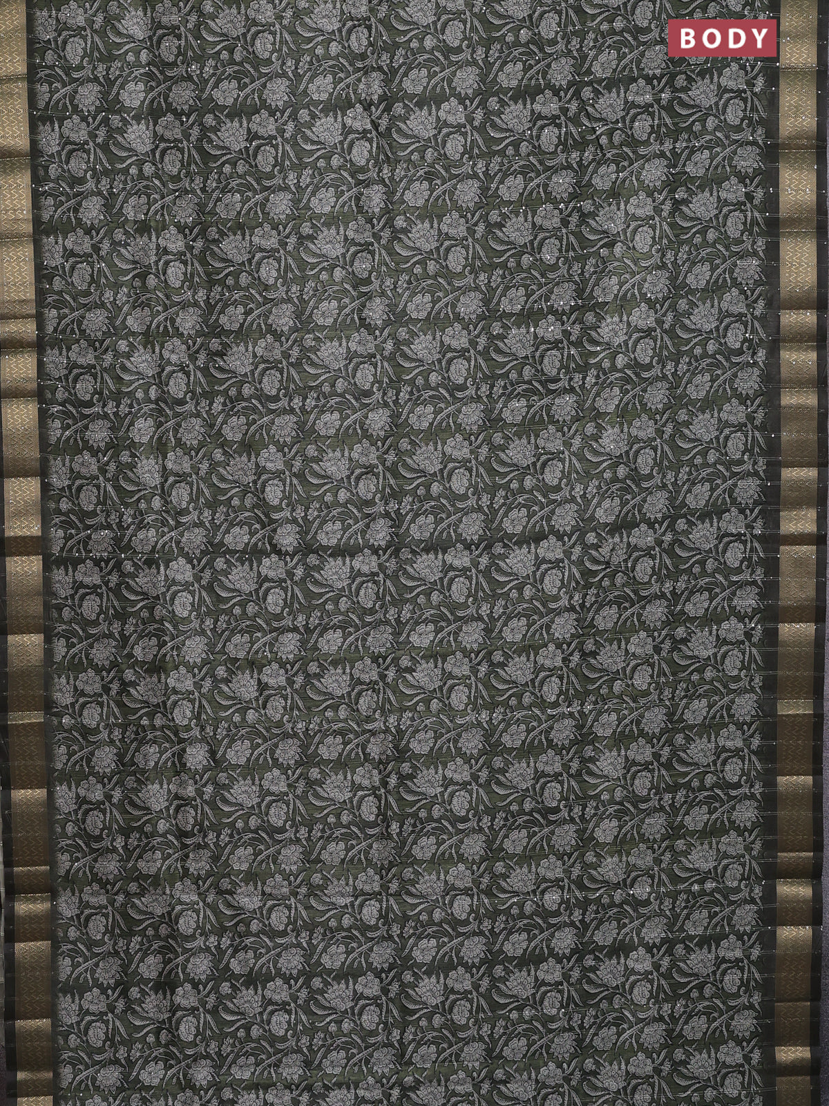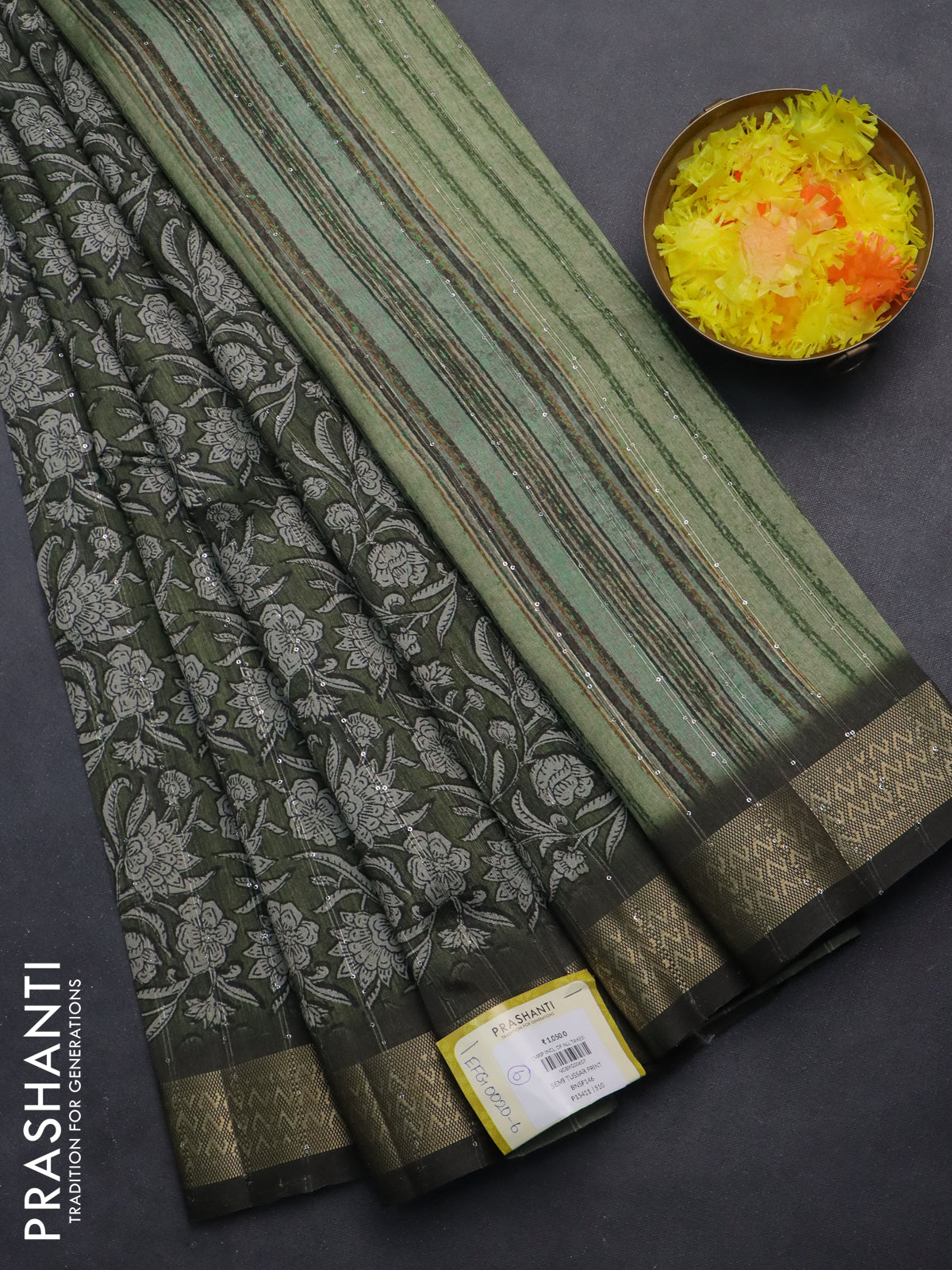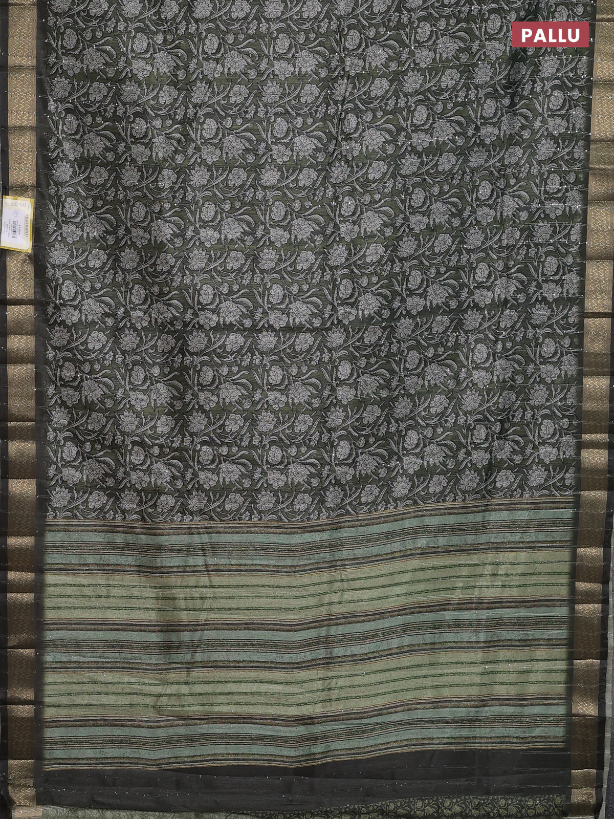 Semi tussar saree sap green with allover kalamkari prints & sequin work and zari woven border