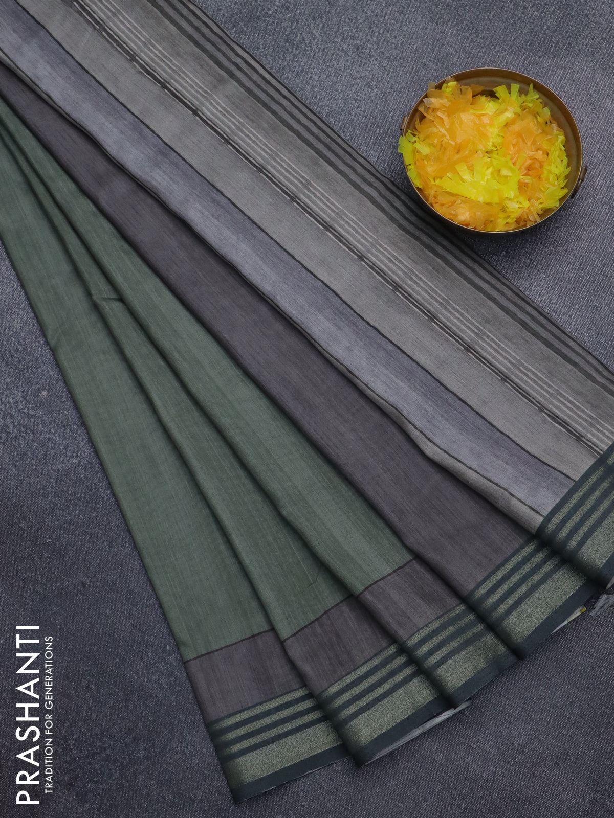 Semi tussar saree sap green with allover prints and zari woven border