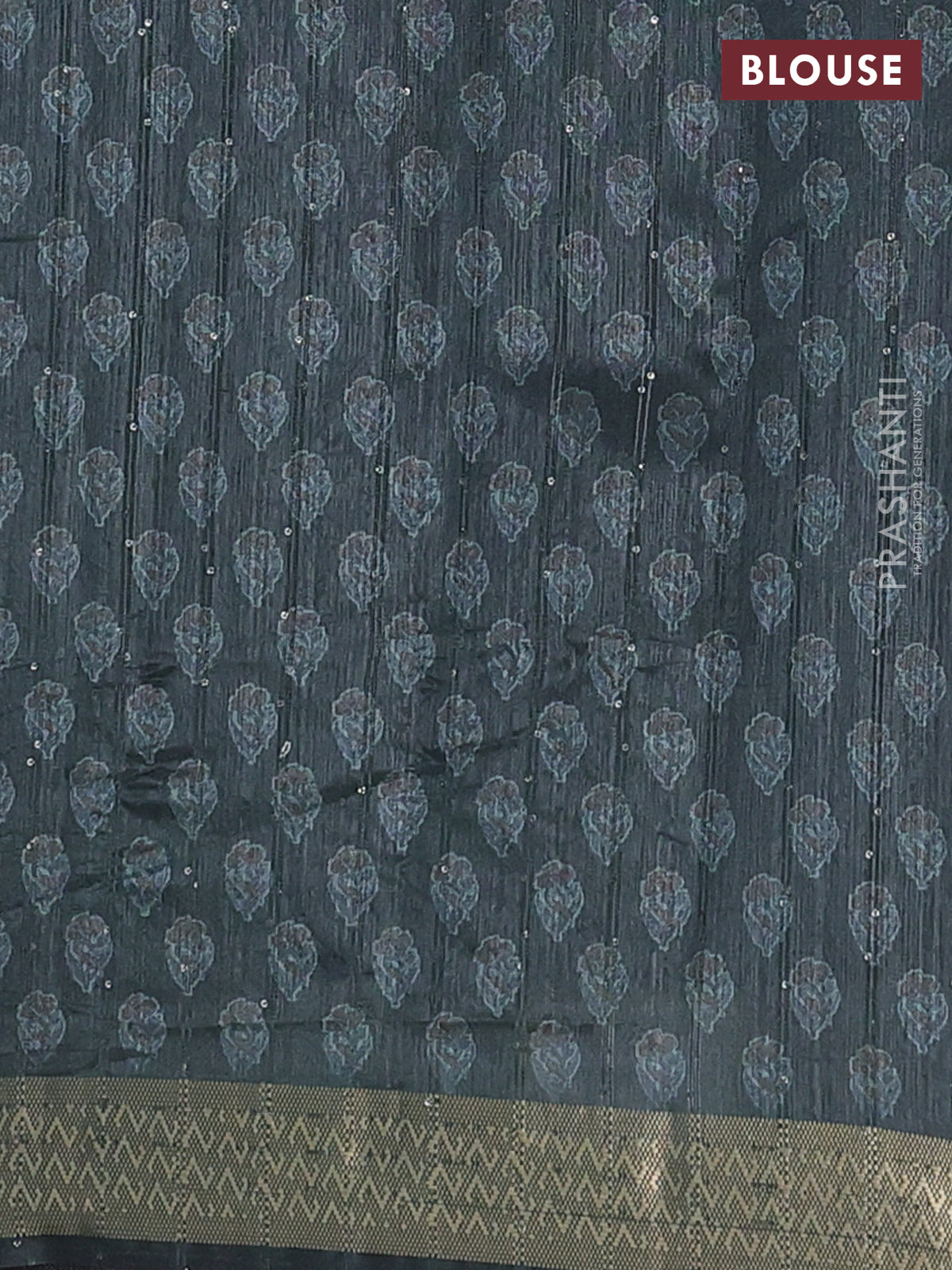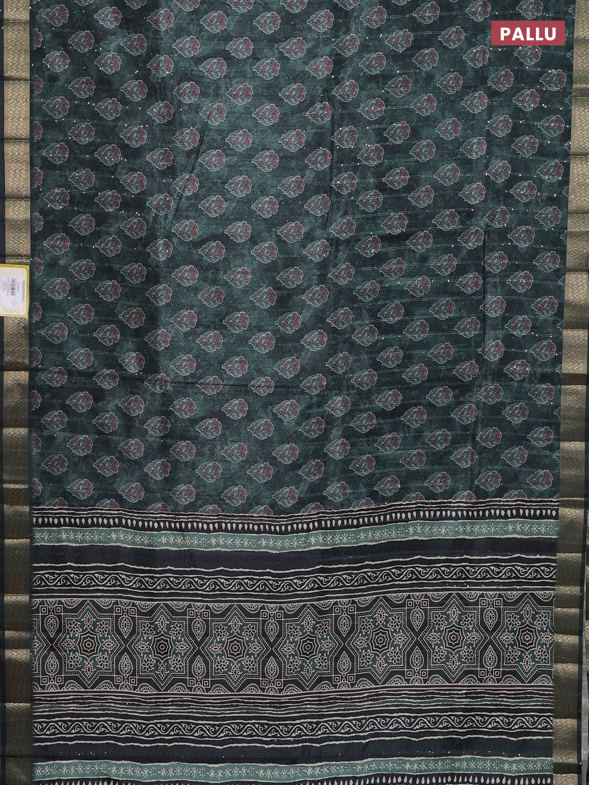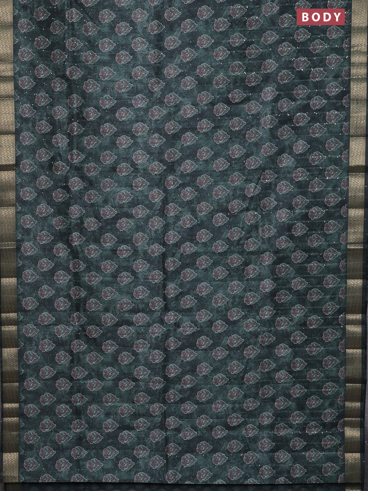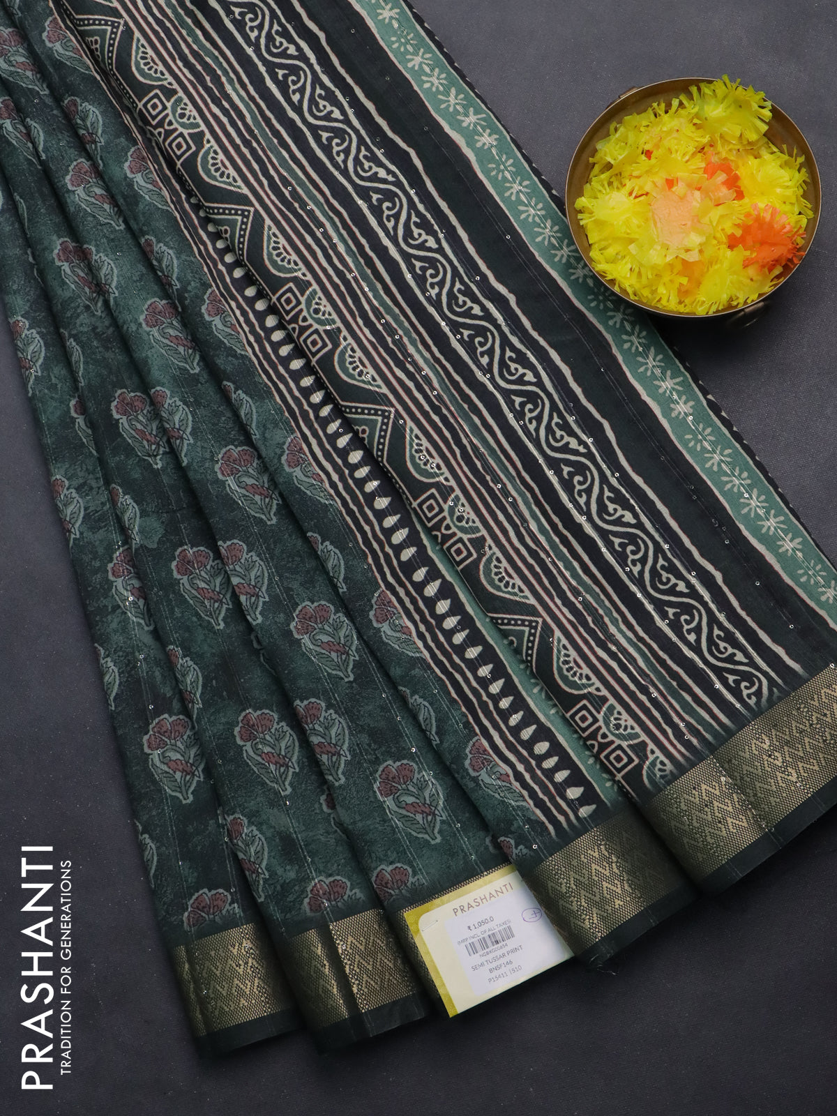 Semi tussar saree sap green with floral butta prints & sequin work and zari woven border