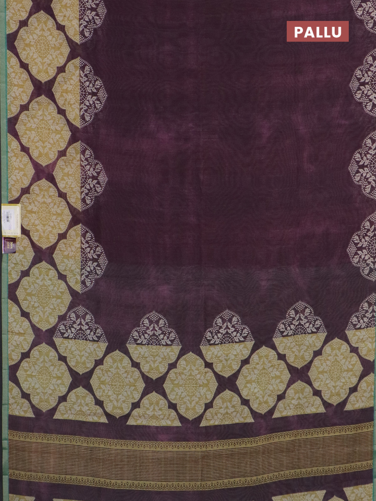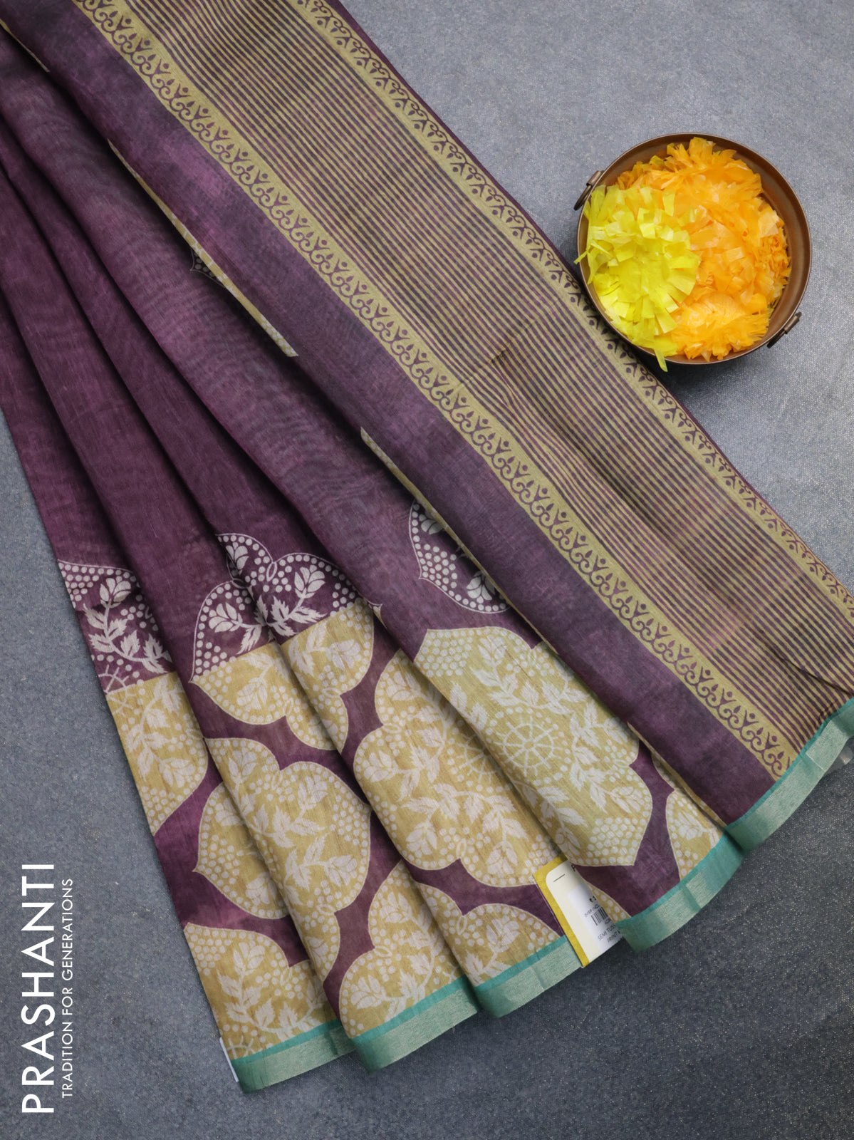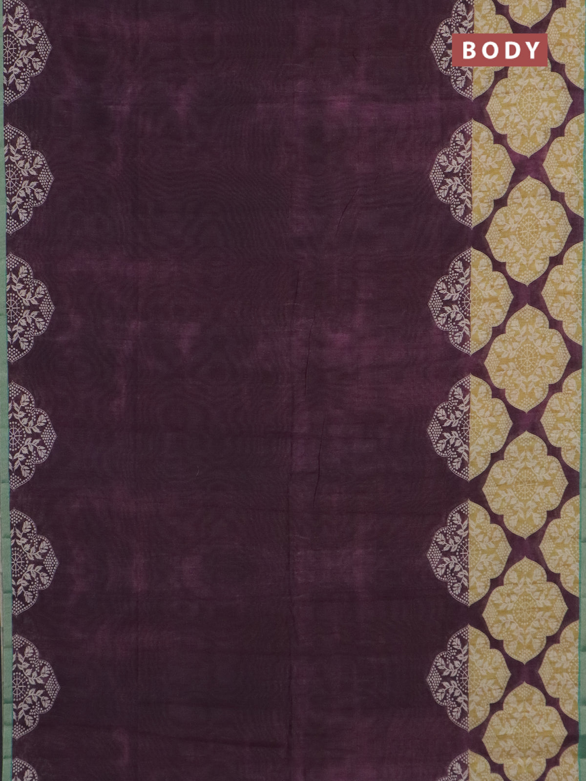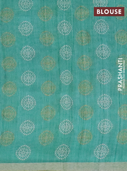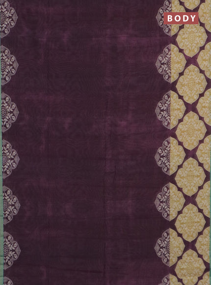 Semi tussar saree wine shade and teal green with plain body and printed zari woven border