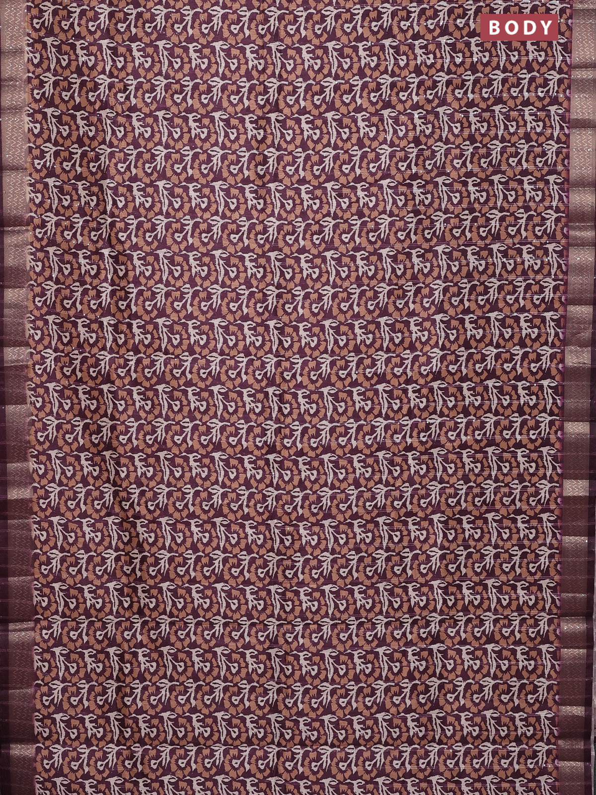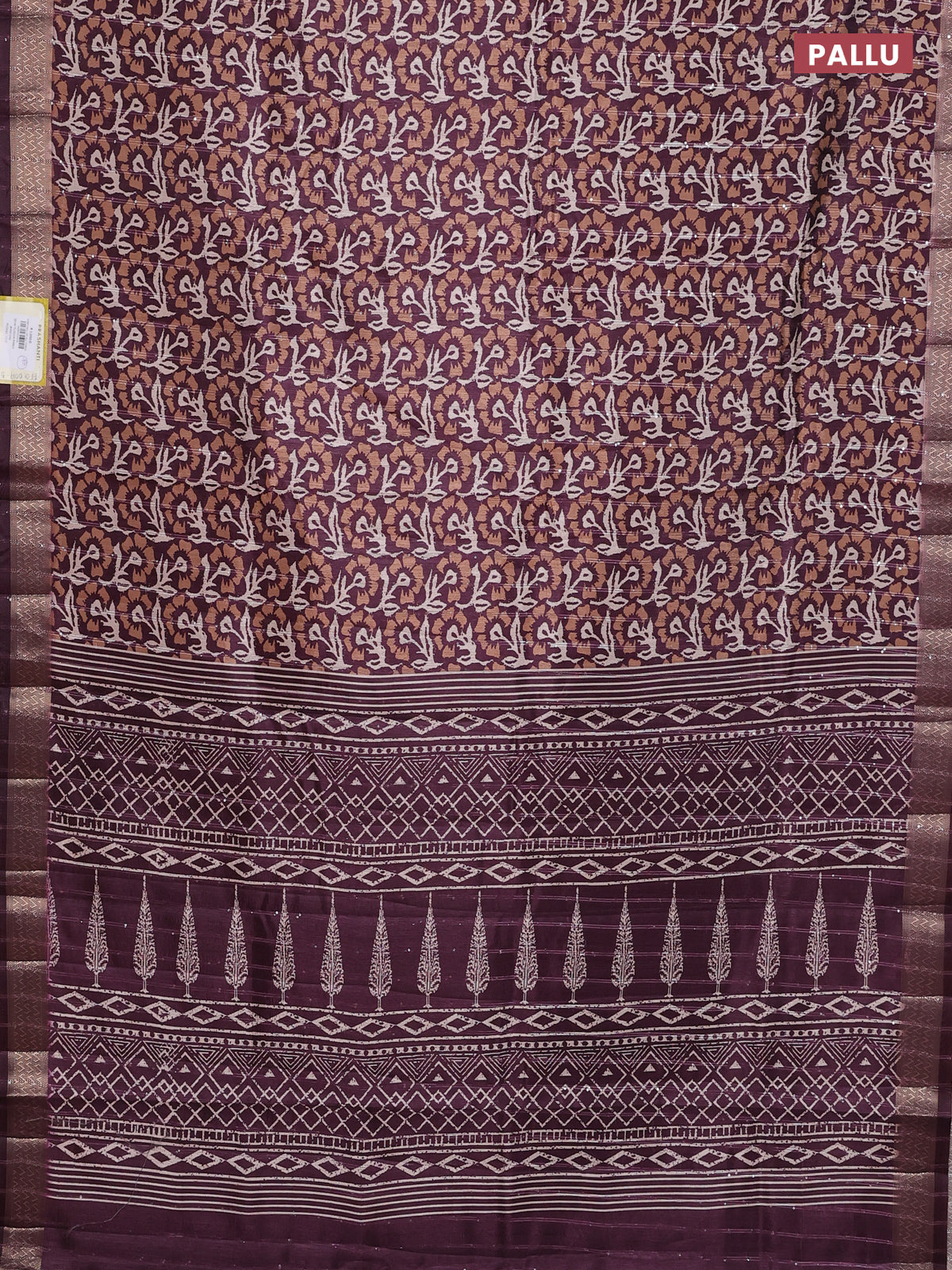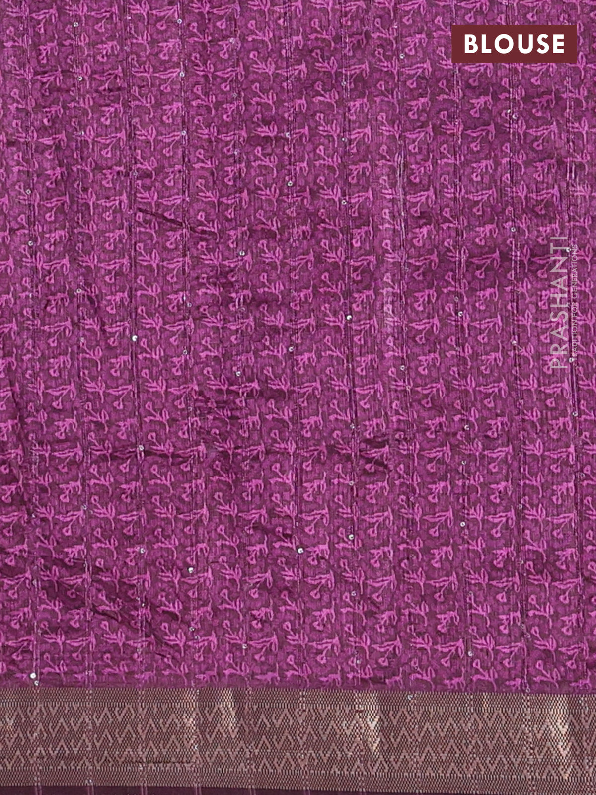 Semi tussar saree wine shade with allover floral prints & sequin work and zari woven border