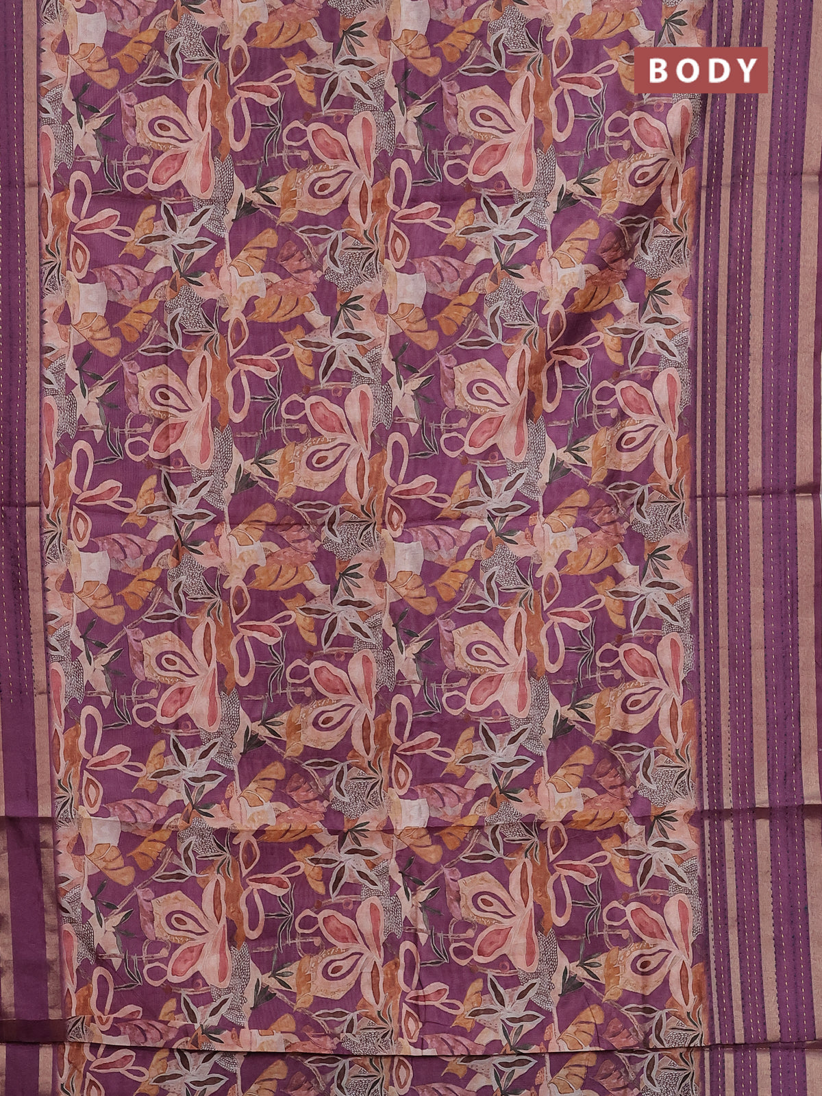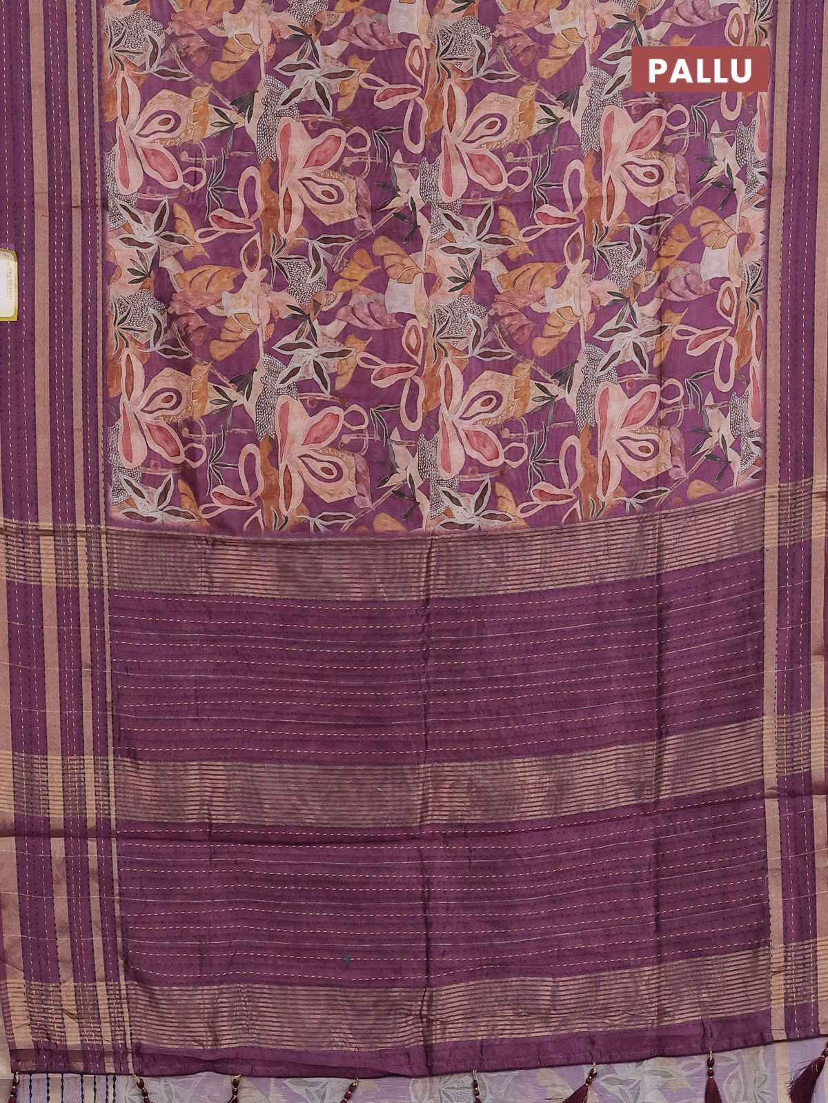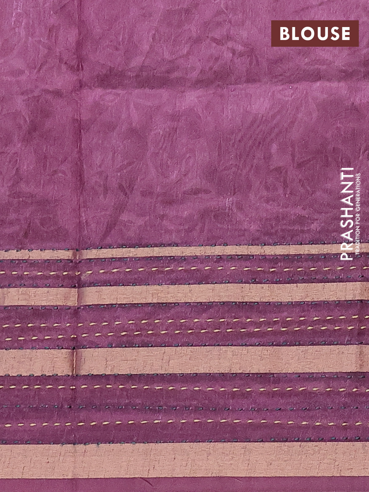 Semi tussar saree wine shade with allover prints and kantha stitch work border