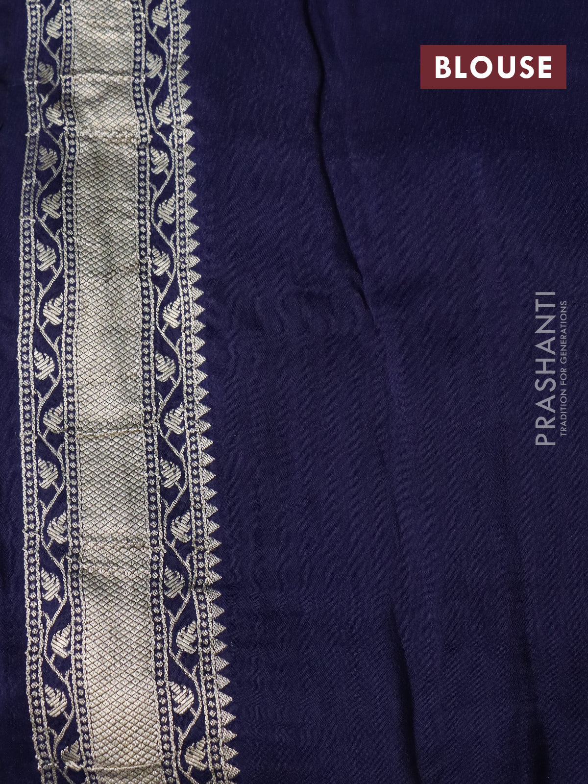 Semi tussar silk saree pastel blue and navy blue with thread & zari woven buttas and floral design buttas & beaded work border