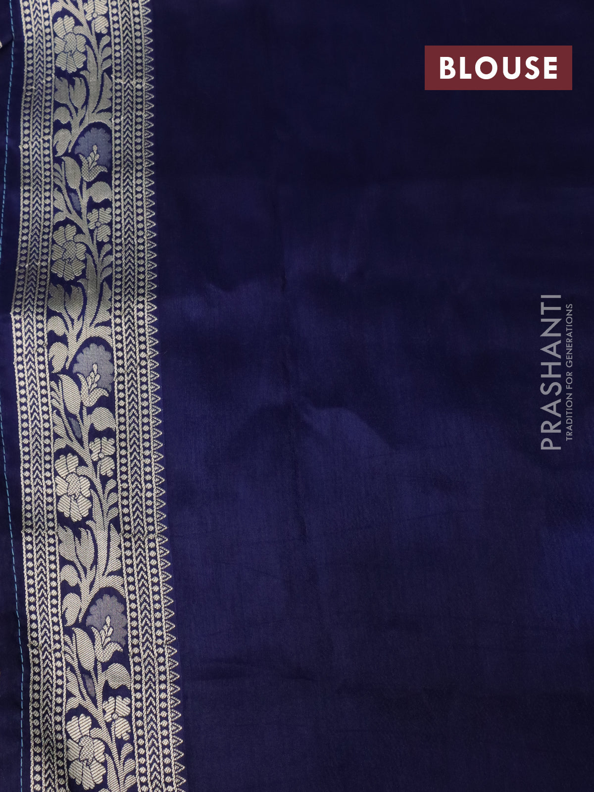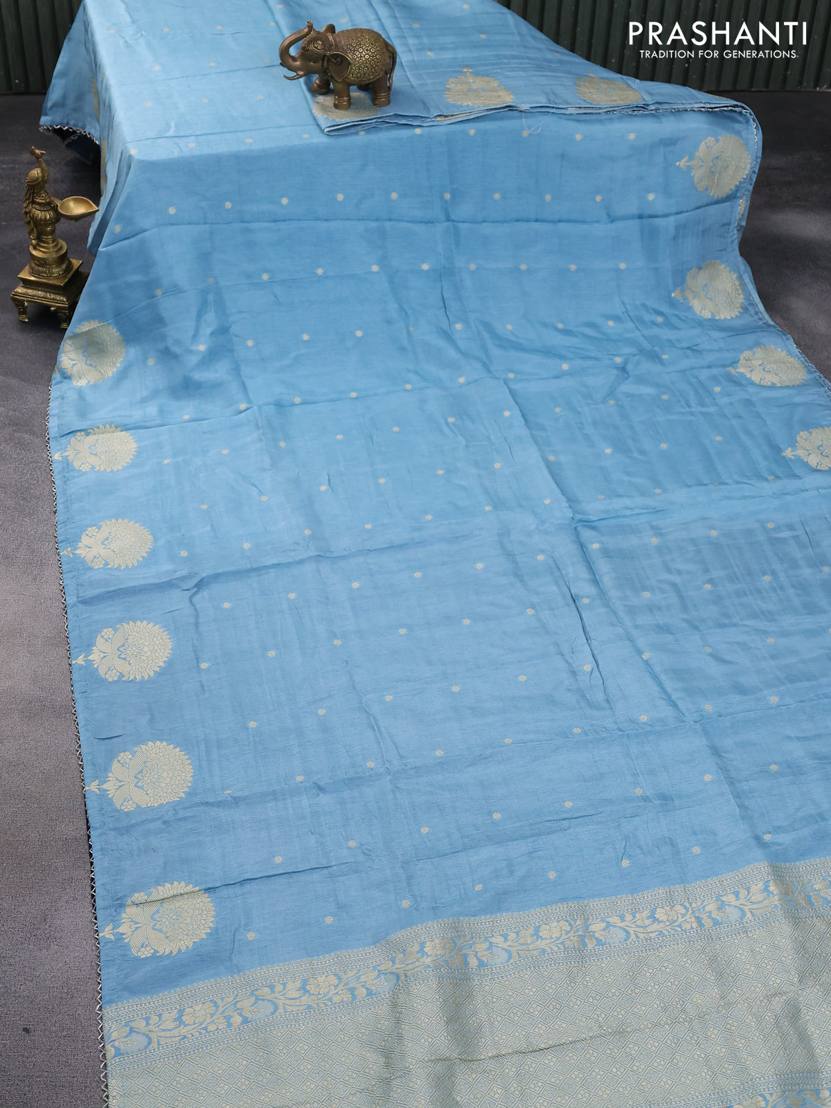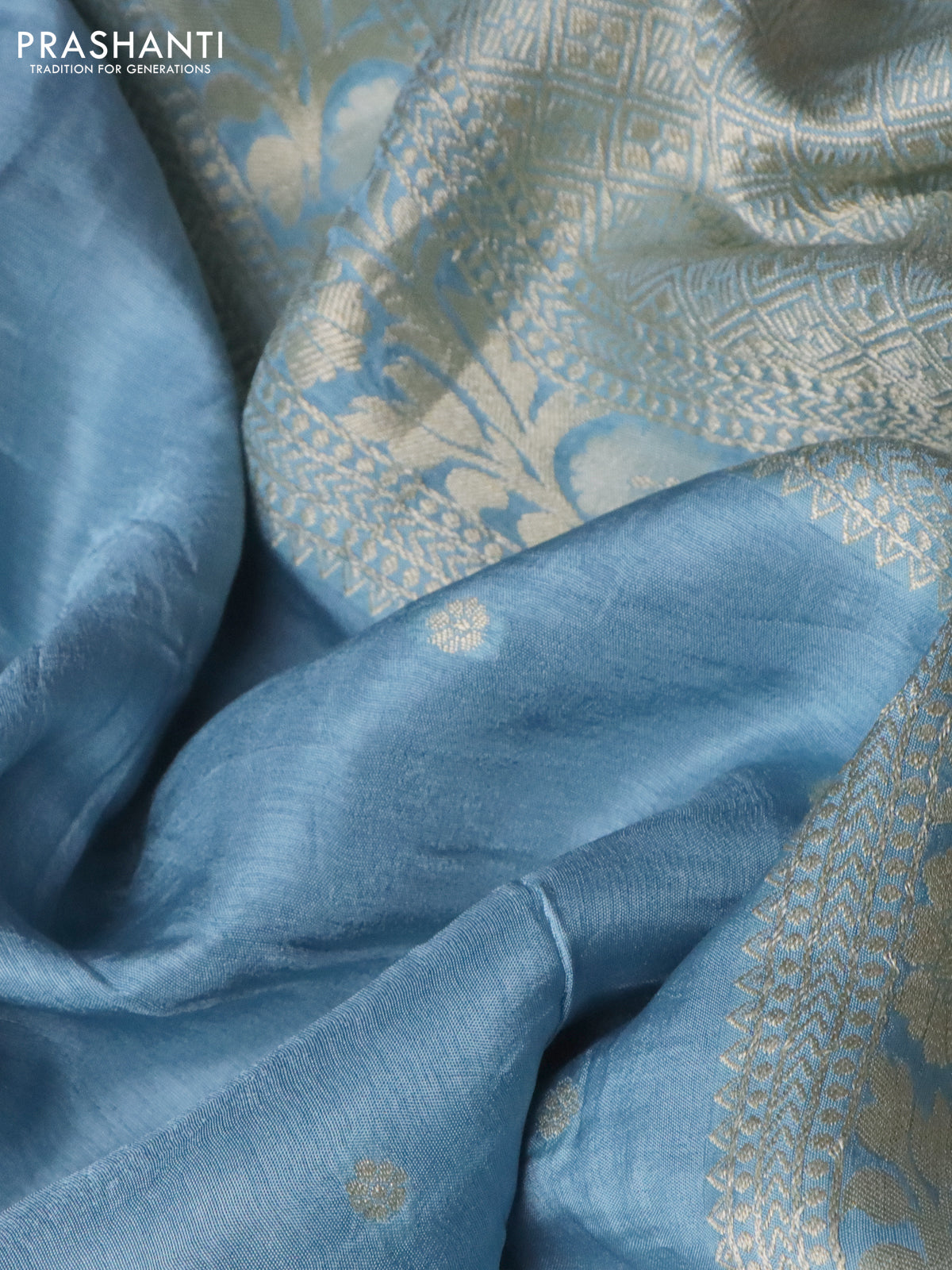Semi tussar silk saree pastel blue and navy blue with thread & zari woven buttas and woven buttas & beaded work border