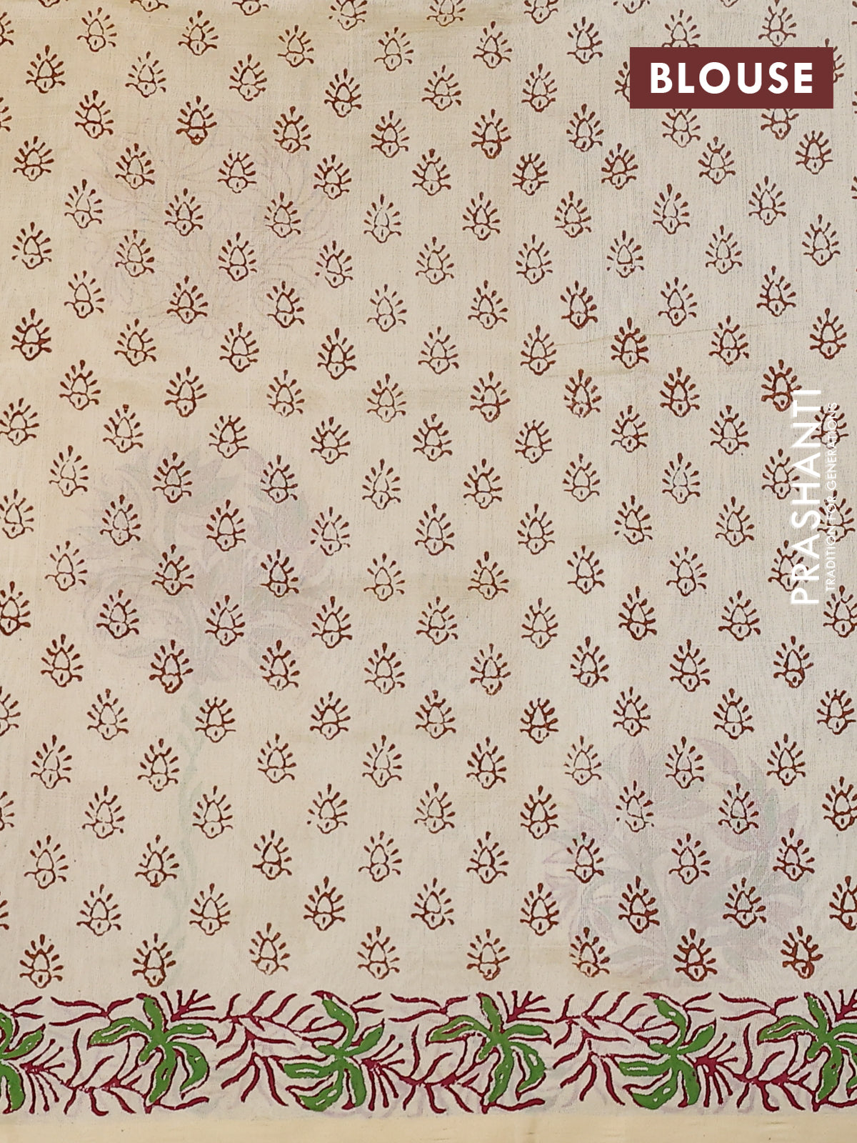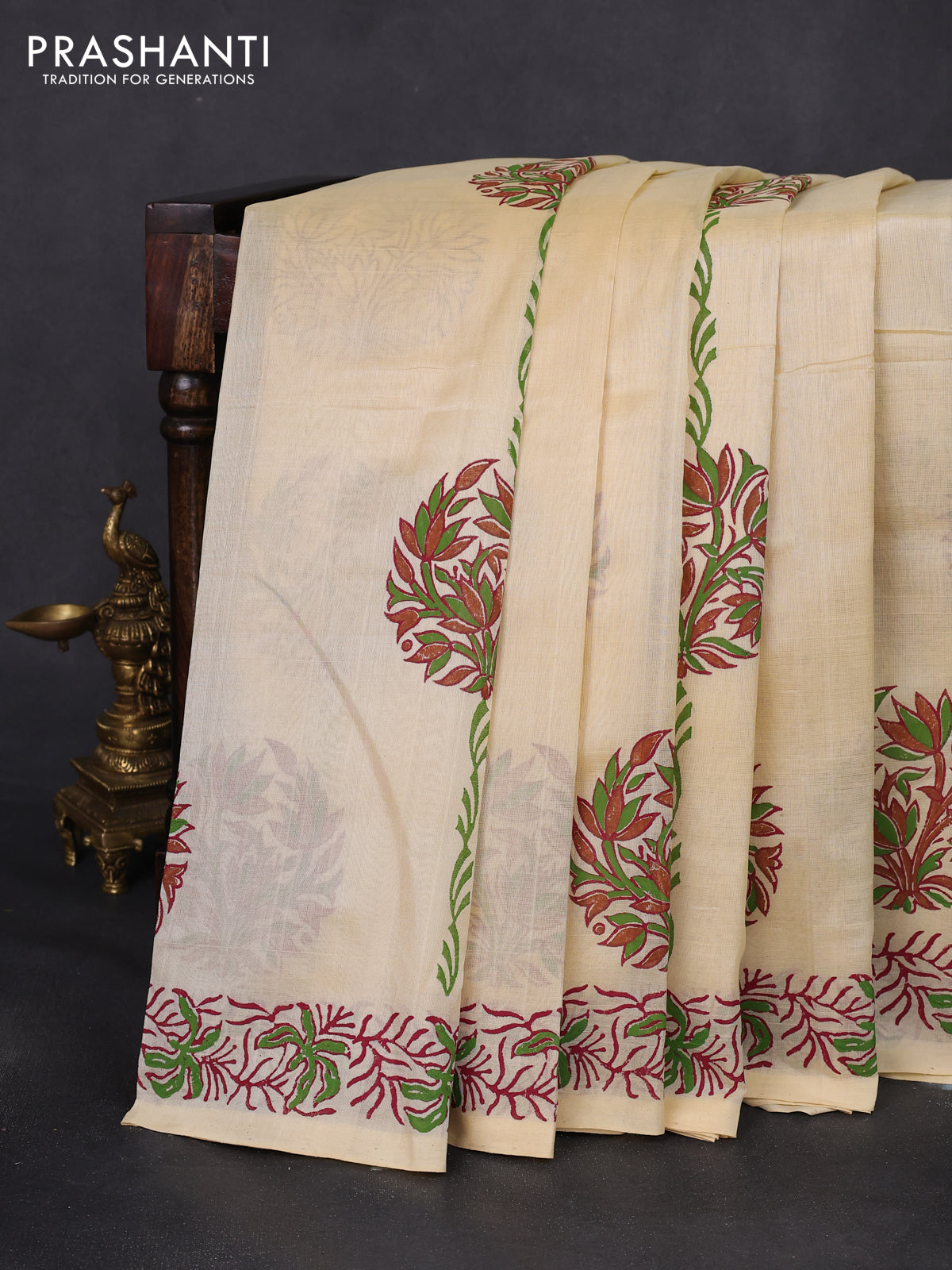 Prashanti’s silk cotton sarees feature handcrafted block prints paired with the gentle sheen of silk cotton fabric. A versatile choice that feels as good as it looks. - product type description